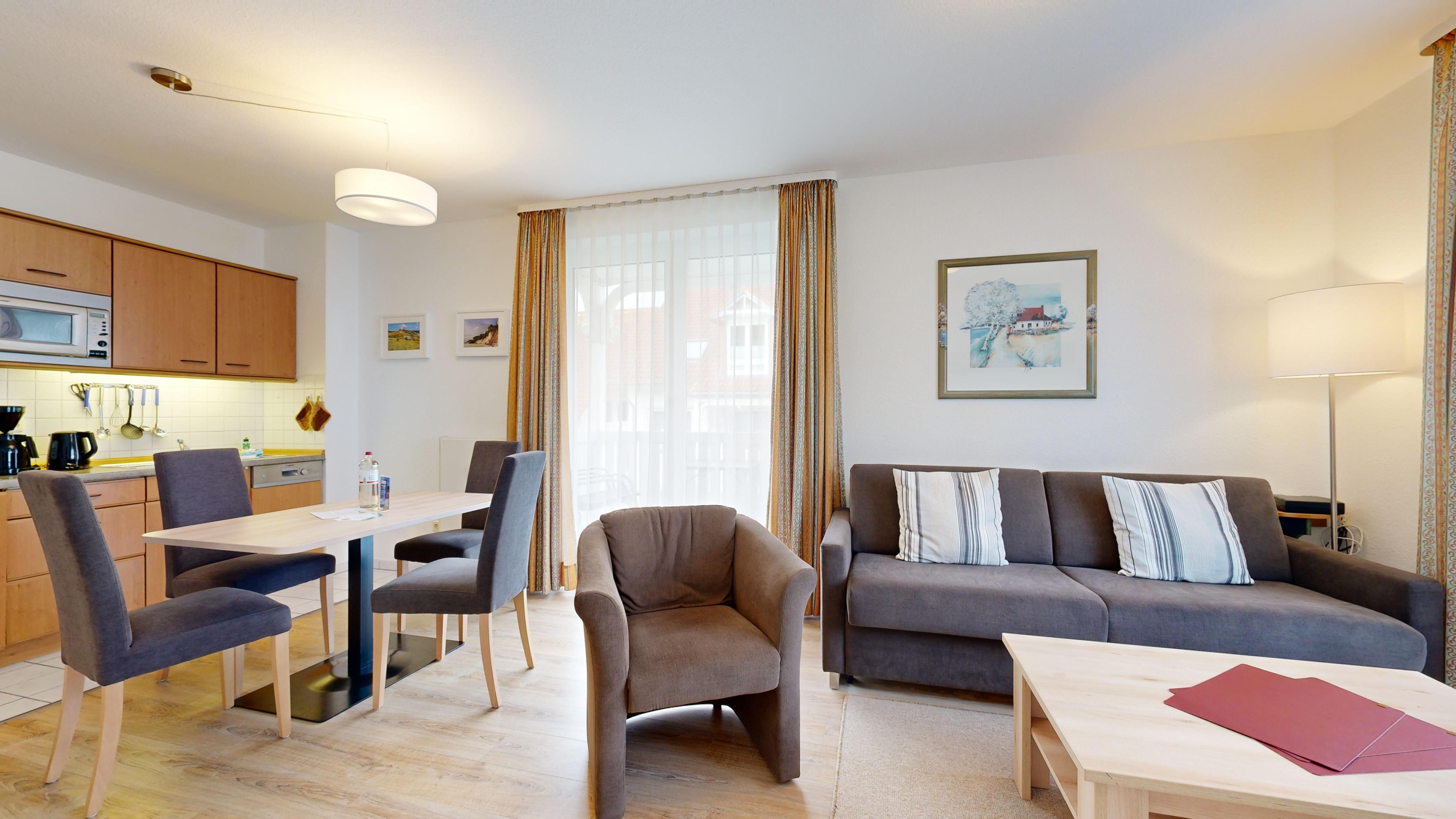 Ausstattung der Komfort-Ferienwohnung im 1. OG, Typ B (2 Zimmer / 45 m²):