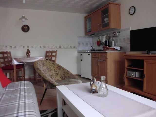 Alleinstehendes Ferienhaus auf dem Grundstück des Vermieters. Im Garten vor dem Ferienhaus ist eine Sitz- und Grillgelegenheit vorhanden. Das Ferienhaus besteht aus einem Wohnraum mit Kochnische, einem Schlafraum und Bad mit Dusche/WC. Ein PKW-Stellplatz ist vorhanden. Einkaufsmöglichkeiten sind fußläufig gut erreichbar.