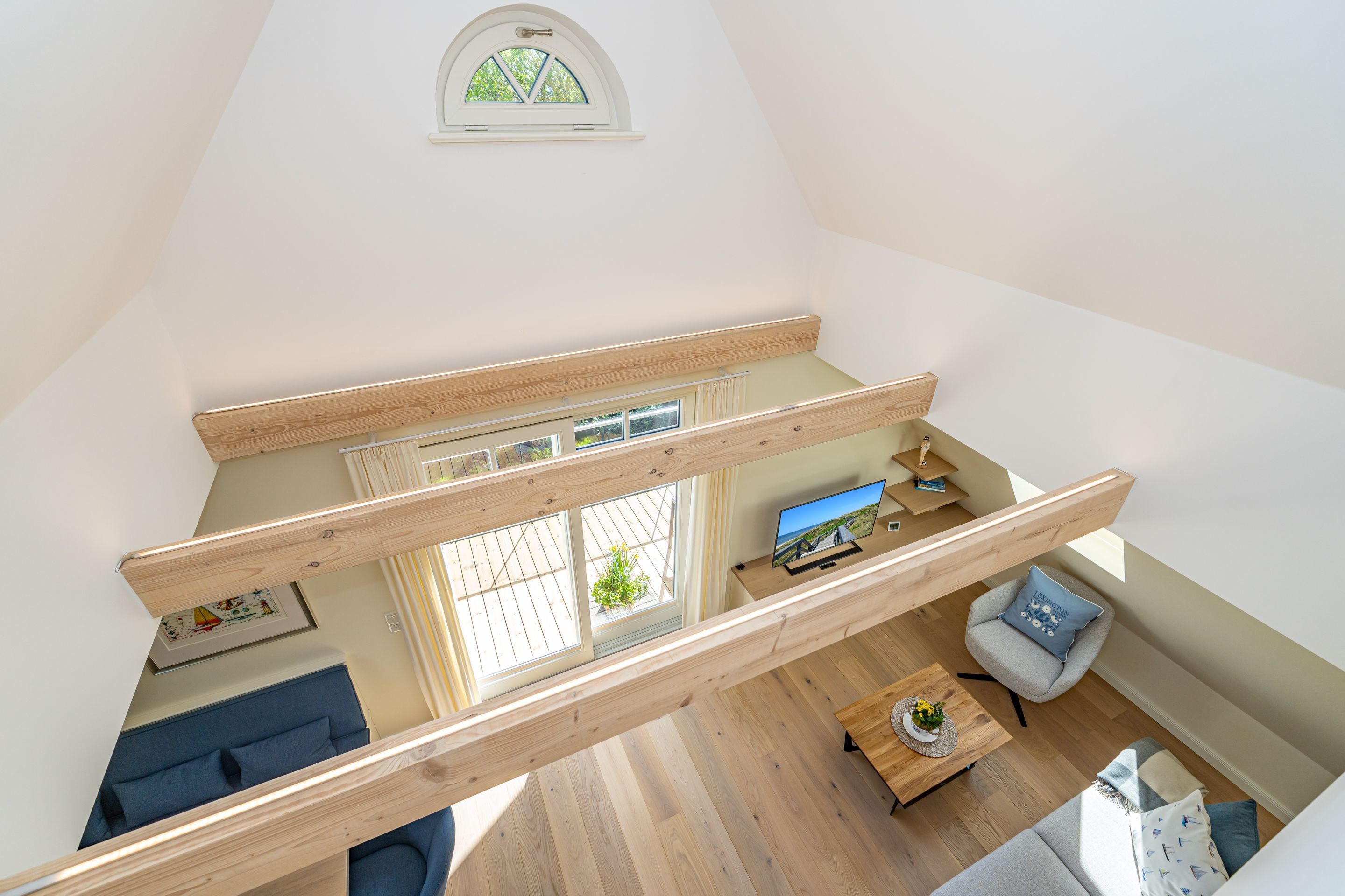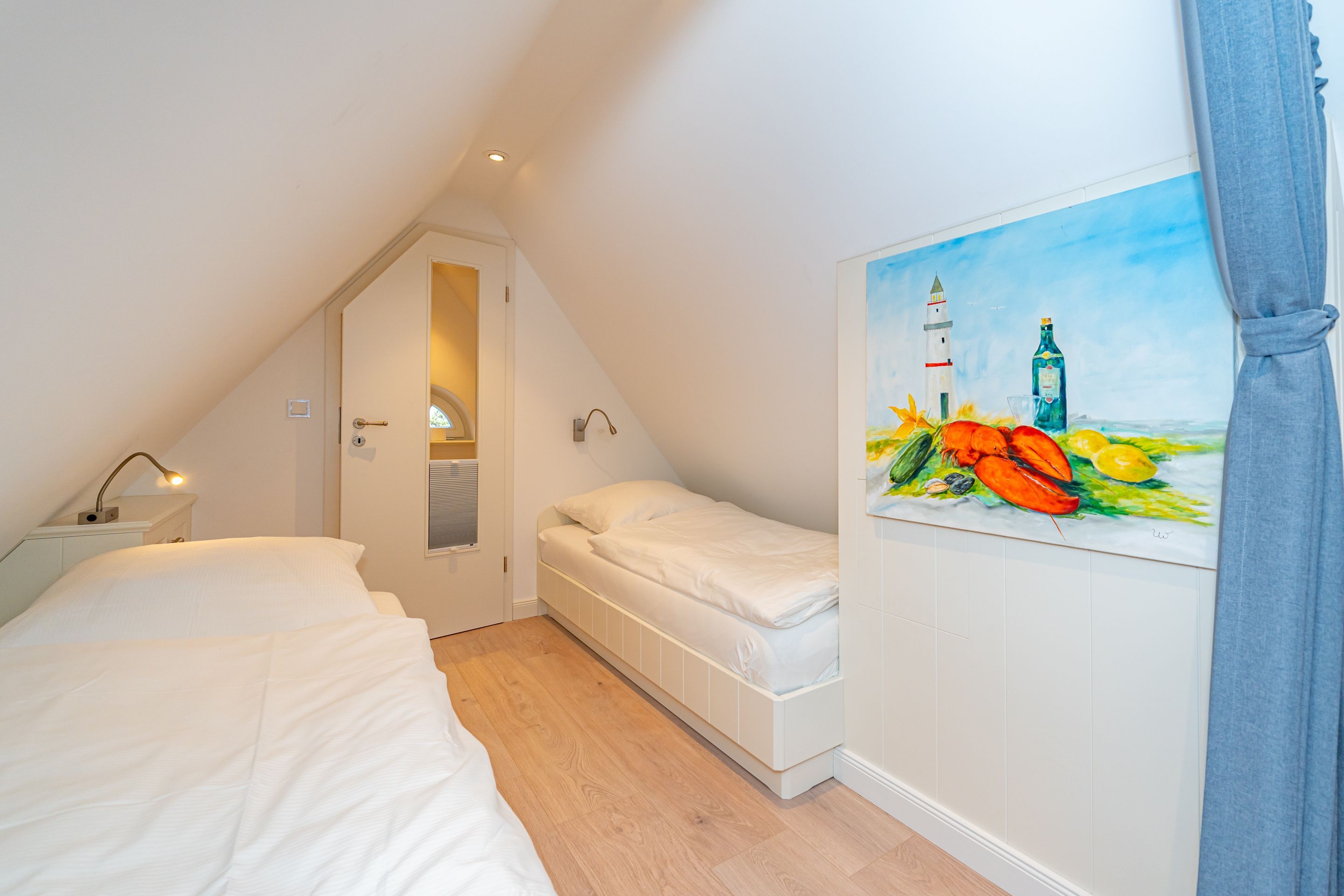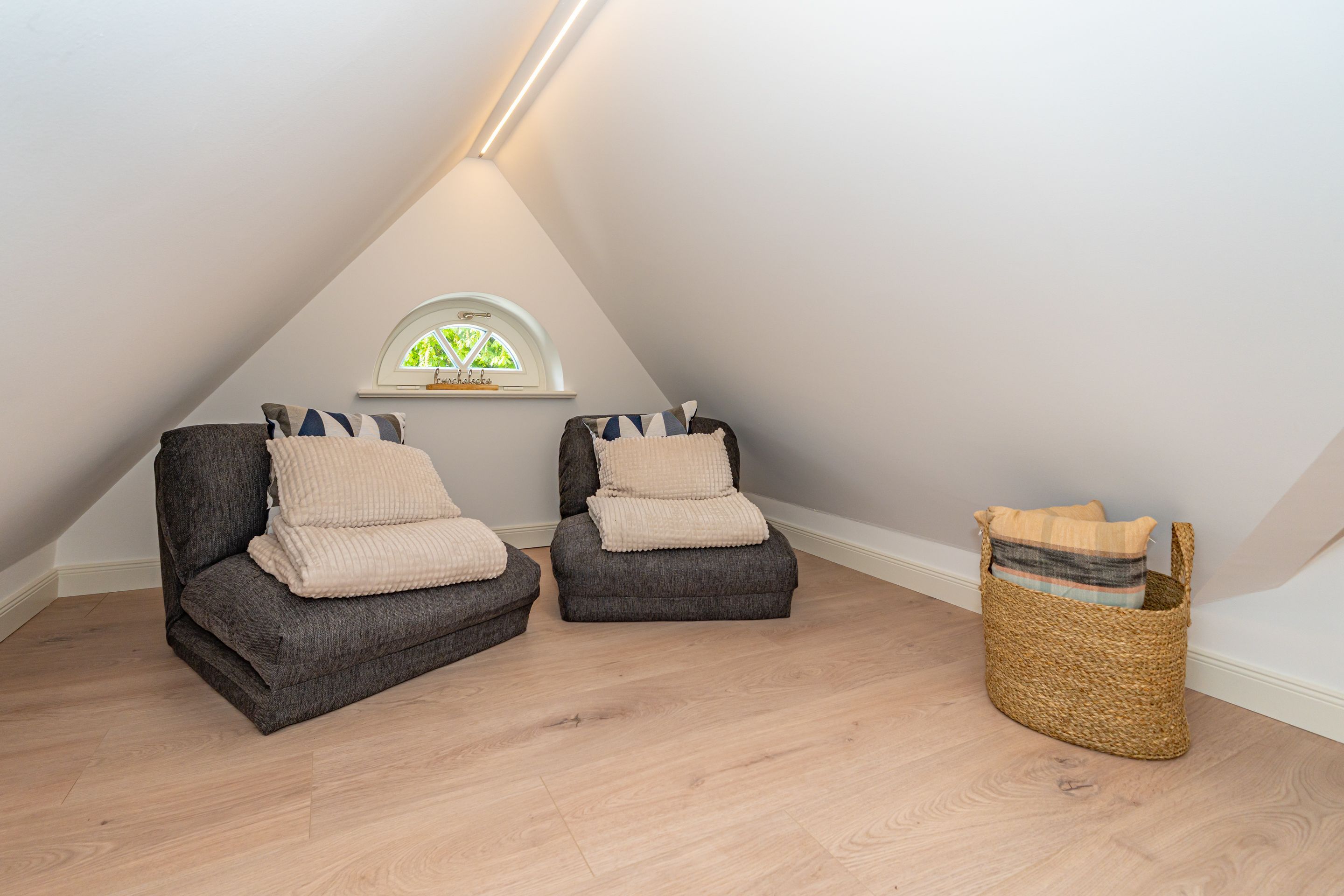 • Galerie mit zwei Einzelbetten (200x 90 cm), Kuschelecke, Arbeitsplatz, kleines Bad mit WC und Waschbecken und Außenfenster