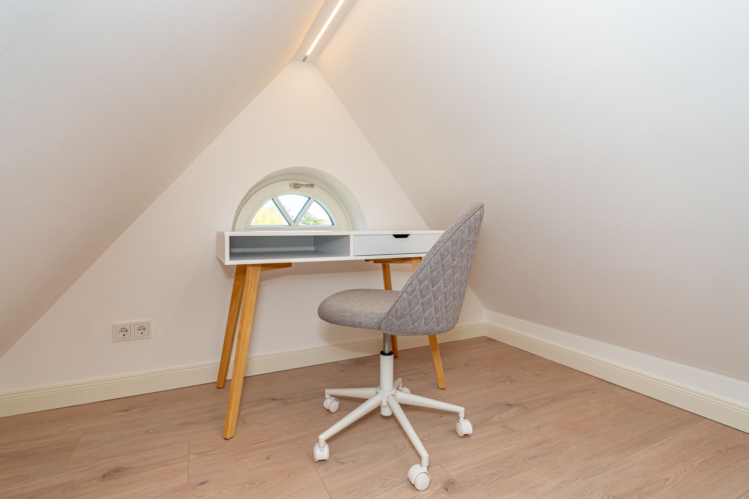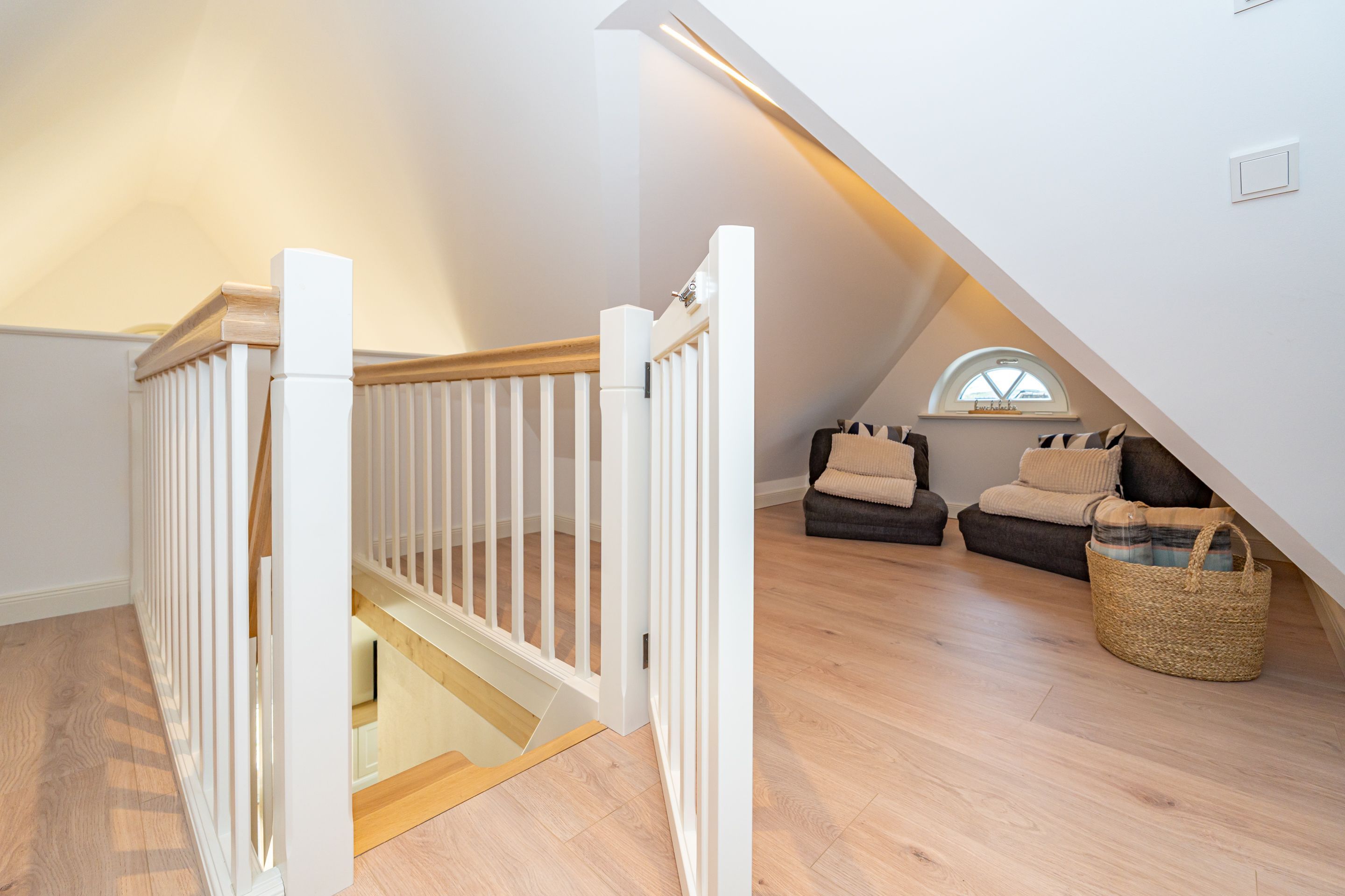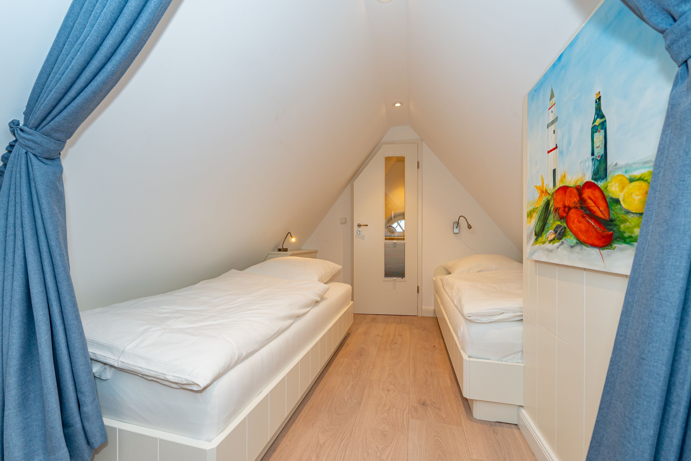 • Galerie mit zwei Einzelbetten (200x 90 cm), Kuschelecke, Arbeitsplatz, kleines Bad mit WC und Waschbecken und Außenfenster