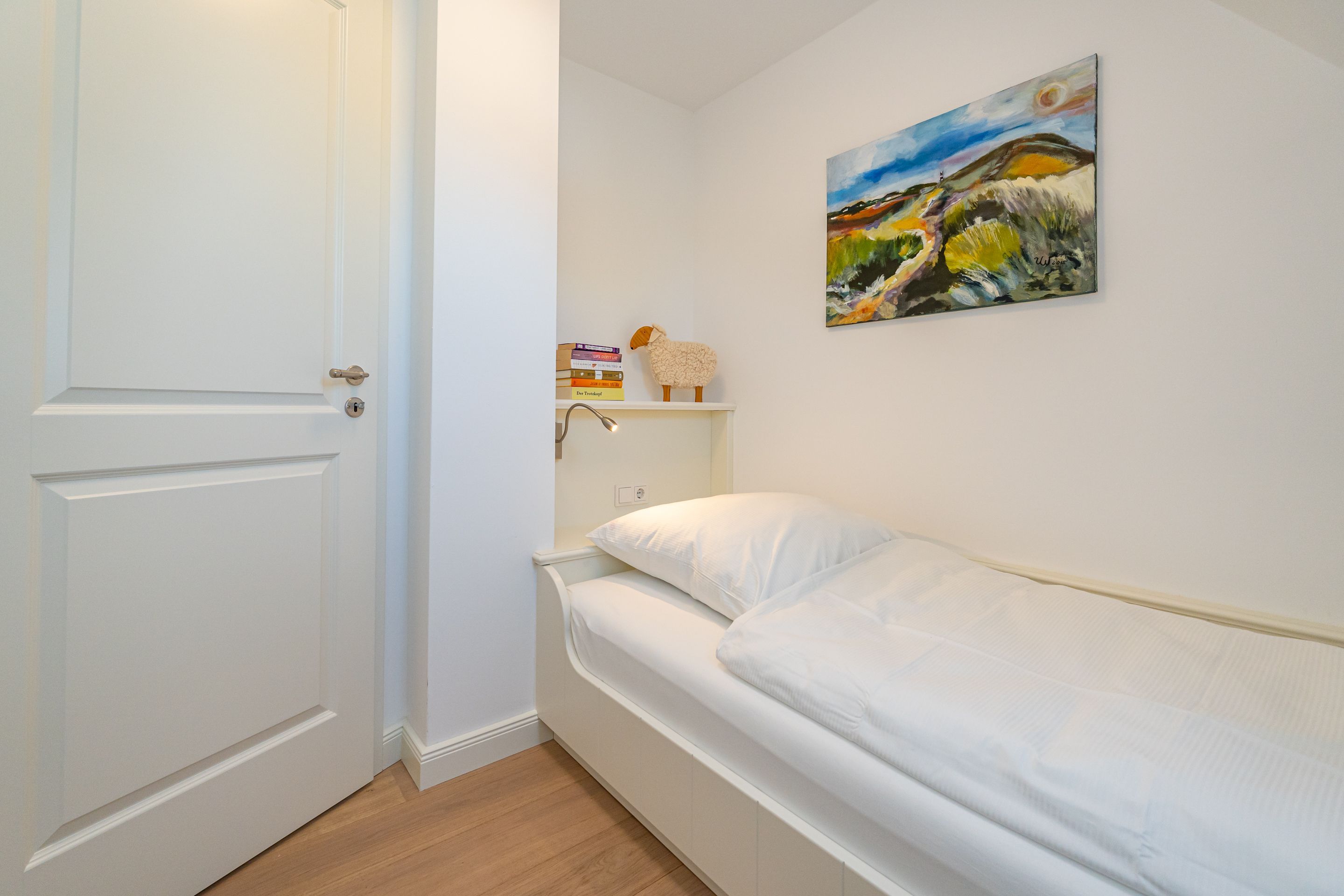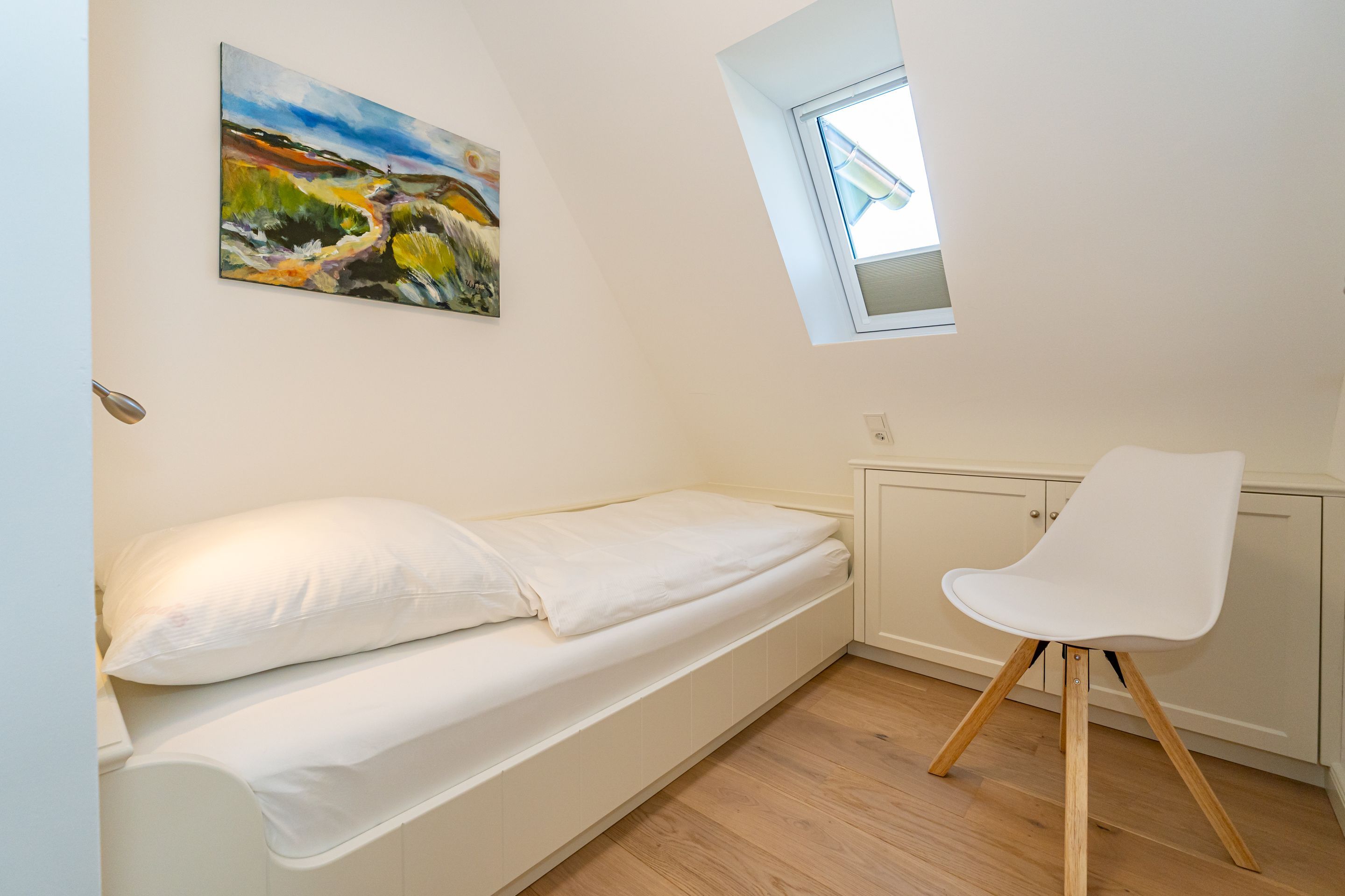 • 1 Kleines zusätzliches Schlafzimmer mit Einzelbett (200 x 90 cm), geräumige Einbauschränke