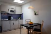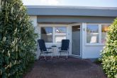 Der Bungalow verfügt über ein Schlafzimmer mit einem Doppelbett (180 x 190 cm). Die offene Küchenzeile ist mit einem Geschirrspüler ausgestattet. Im Wohnbereich können Sie auf der Couch entspannen. Die Einrichtung ist funktional, und es gibt eine Sitzecke für 2 Personen, perfekt für gemeinsame Mahlzeiten oder entspannte Abende. Im Außenbereich gibt es eine kleine Terrasse, wo Sie entspannen können.