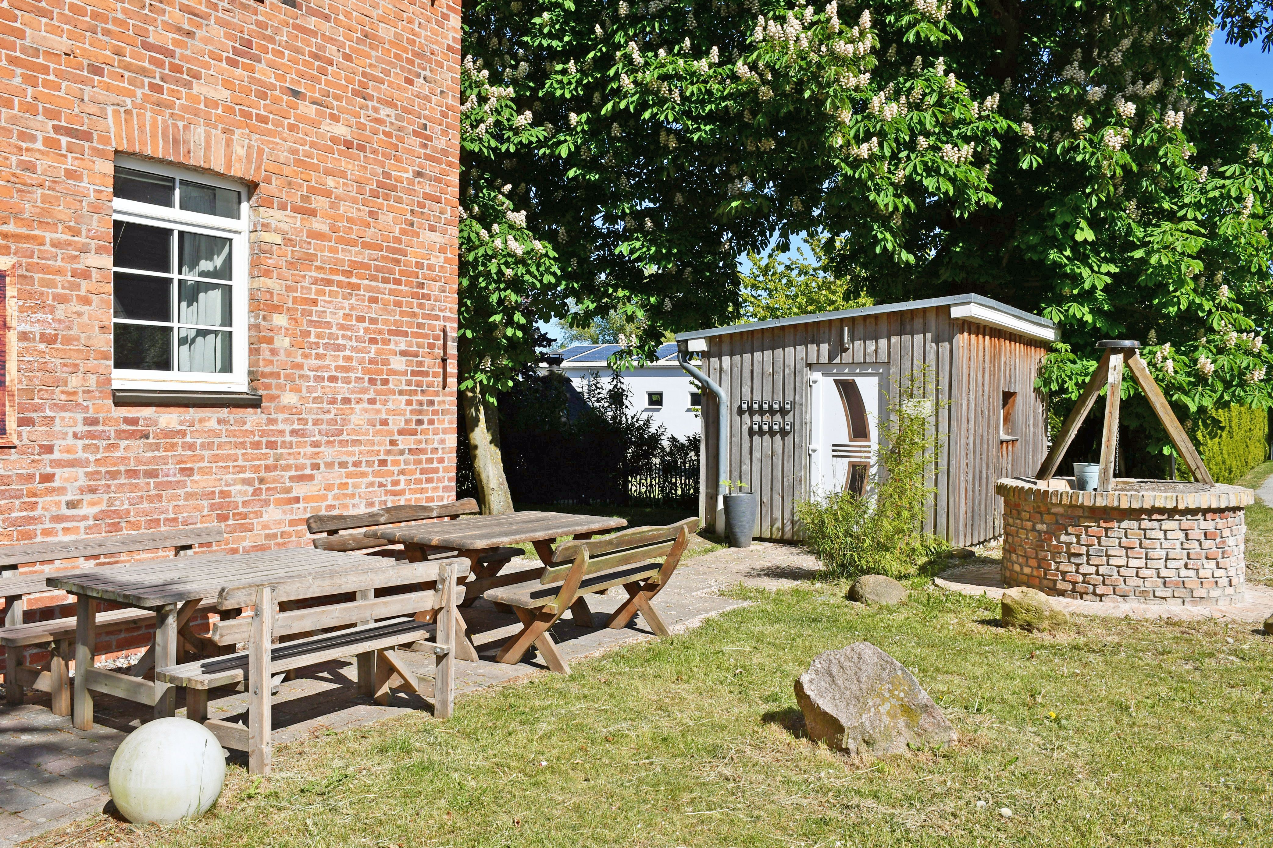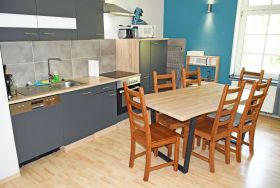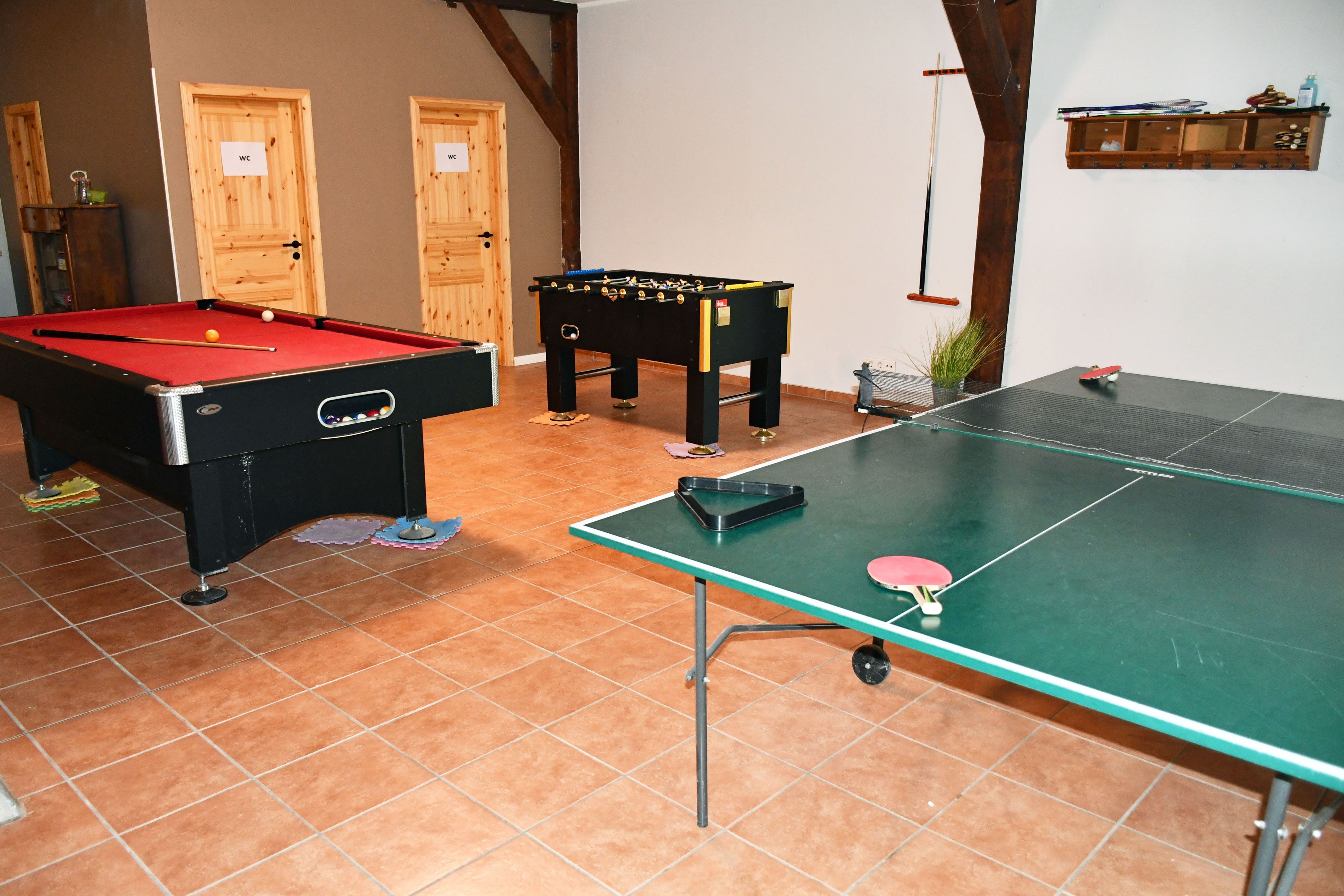 Der riesige Garten mit Klettergerüst und Grillplatz darf selbstverständlich auch mitgenutzt werden. Der große Aufenthaltsraum mit Billard, Tischtennis, Kicker und Kinderecke lädt zum Spielen und Verweilen ein. An der Unterkunft liegen genügend PKW-Stellplätze.
