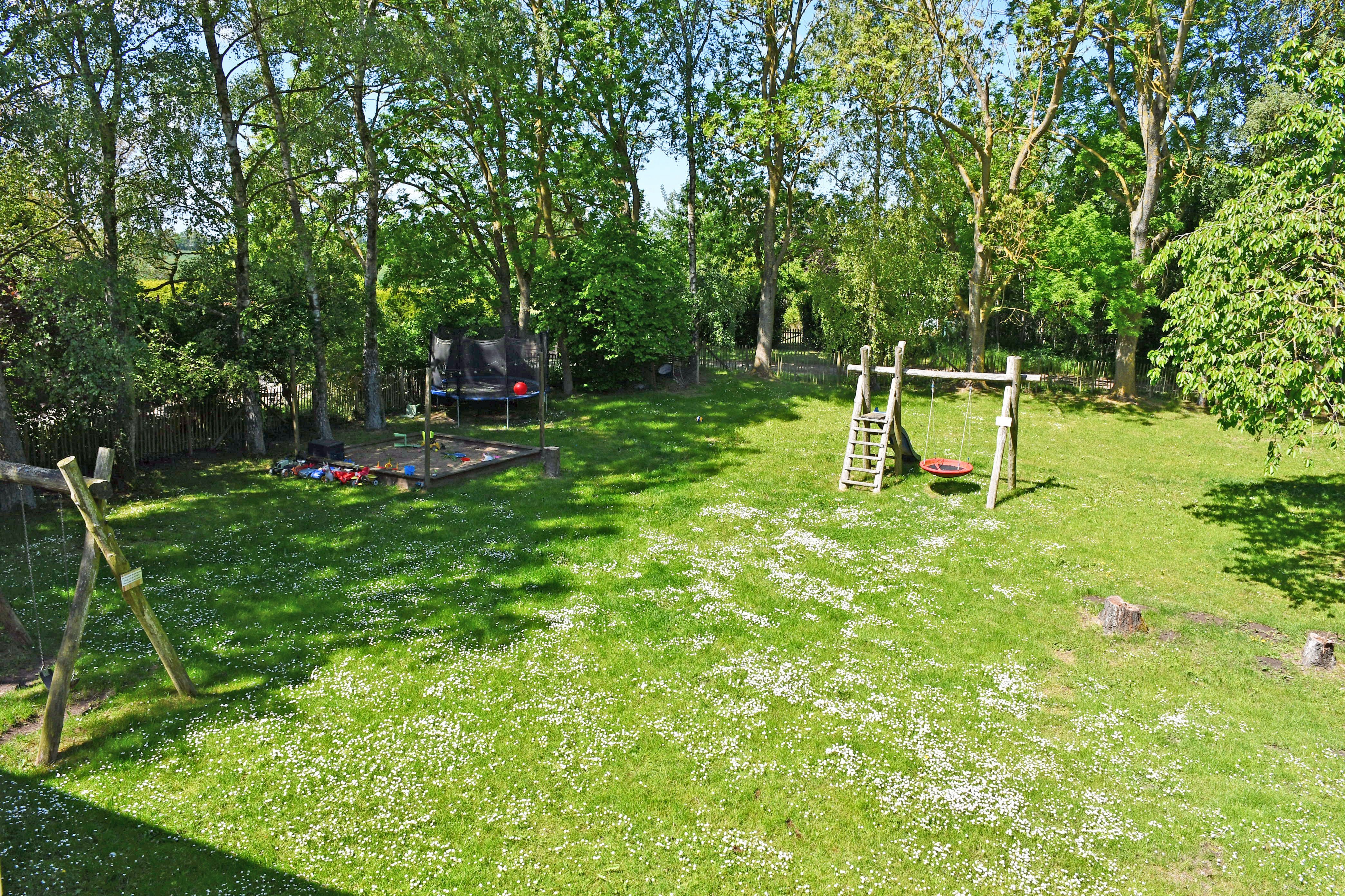 Das Gelände rund um das Ferienhaus bietet sehr viel Platz zum Spielen, Sonnen und Erholen. Für Kinder gibt es zahlreiche Spielgelegenheiten.