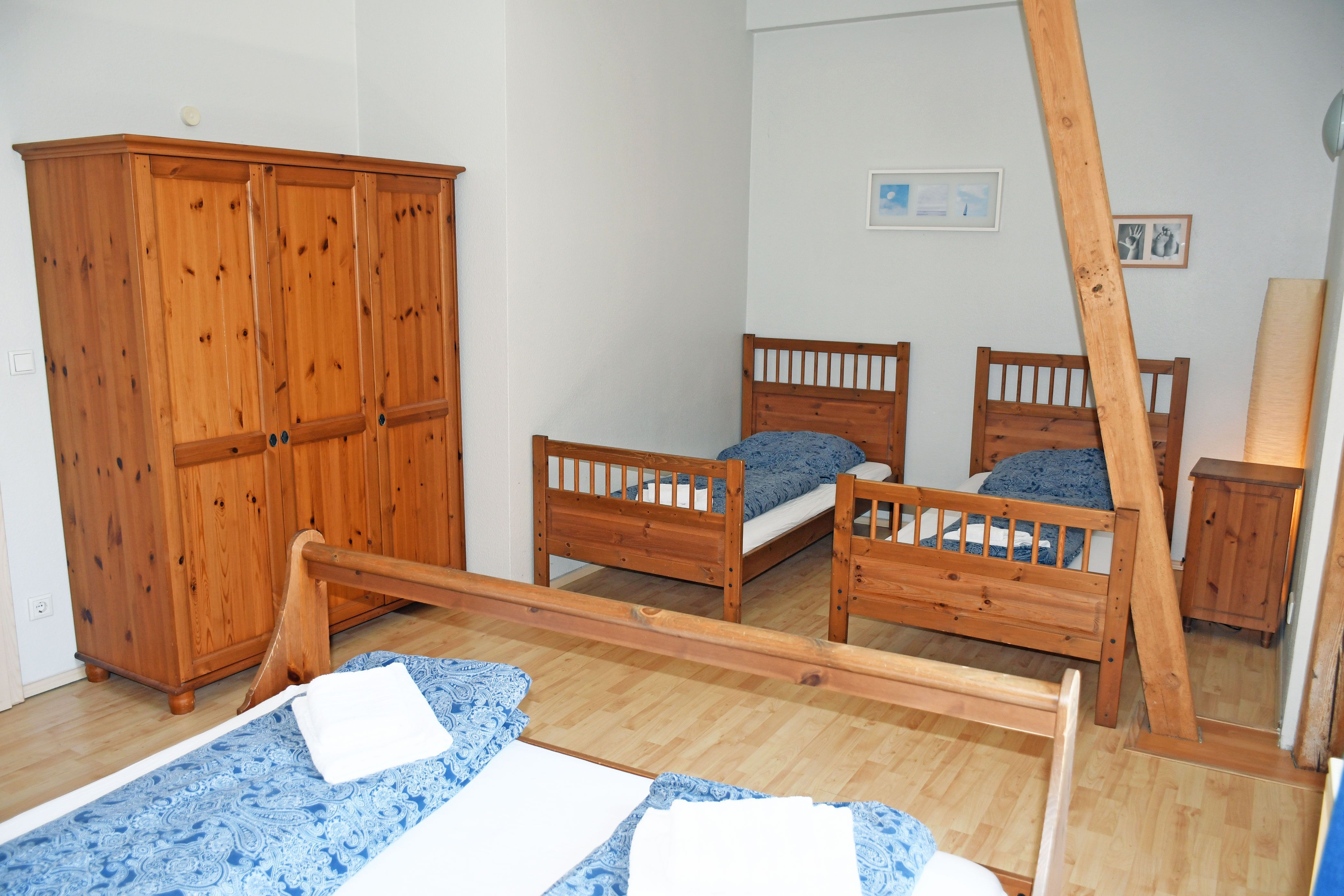 Die Wohnung verfügt im ersten Schlafzimmer über ein Doppelbett und 2 Einzelbetten, im zweiten Schlafzimmer über ein Doppelbett und im dritten Schlafzimmer über 2 Einzelbetten. 2 weitere Gäste können eine Aufbettung auf dem Schlafsofa im Wohnzimmer nutzen. Die Unterkunft ist schallisoliert und bietet Ihnen Ruhe und Komfort.