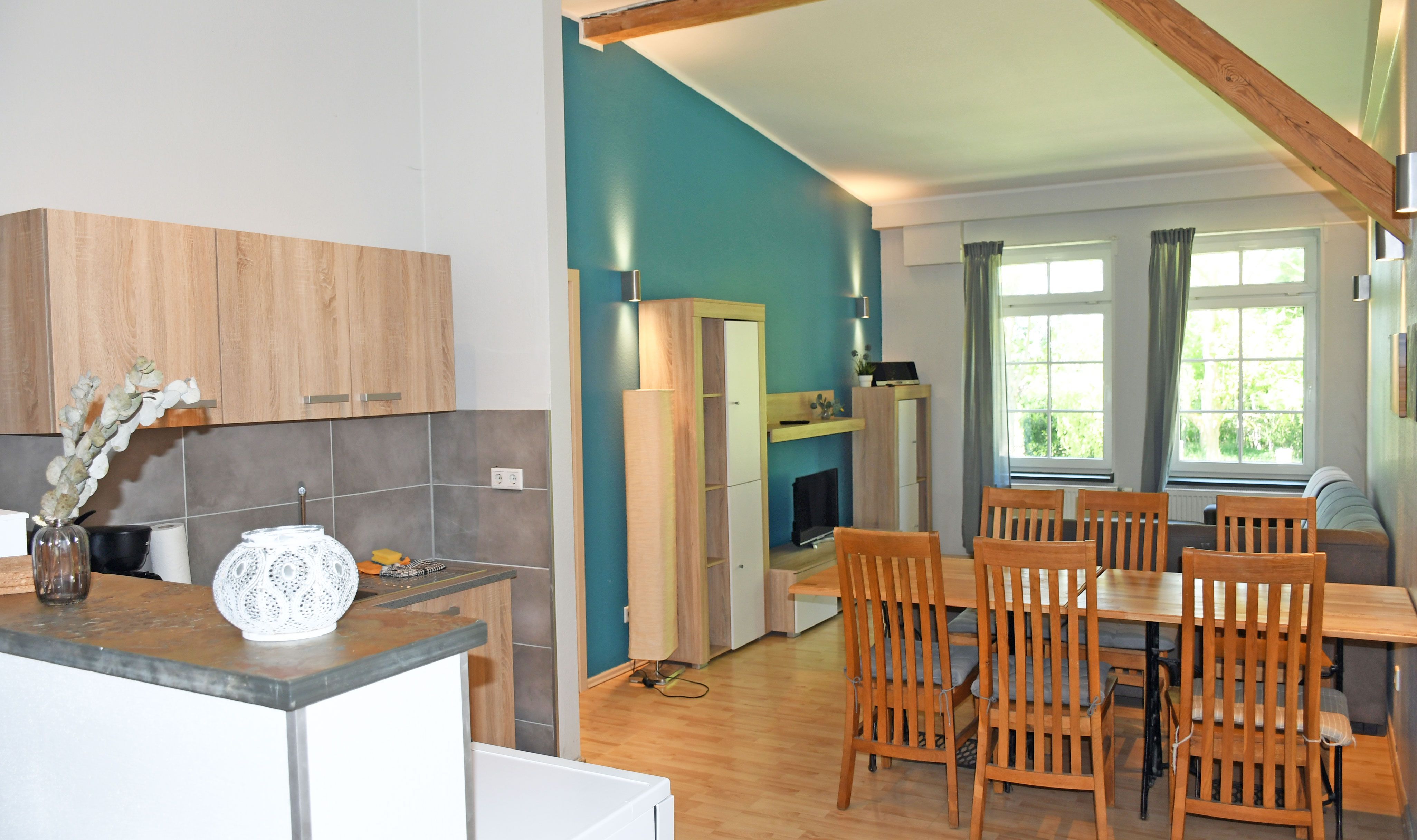 Die große Ferienwohnung Sellin liegt in der 1. Etage. Sie verfügt über 3 separate Schlafzimmer, einen großen Kochbereich, 1 Badezimmer und ein großes Wohnzimmer. Hervorhebens Wert ist der herrliche Ausblick in die große parkähnliche Anlage mit viel Platz zum Entspannen und spielen.