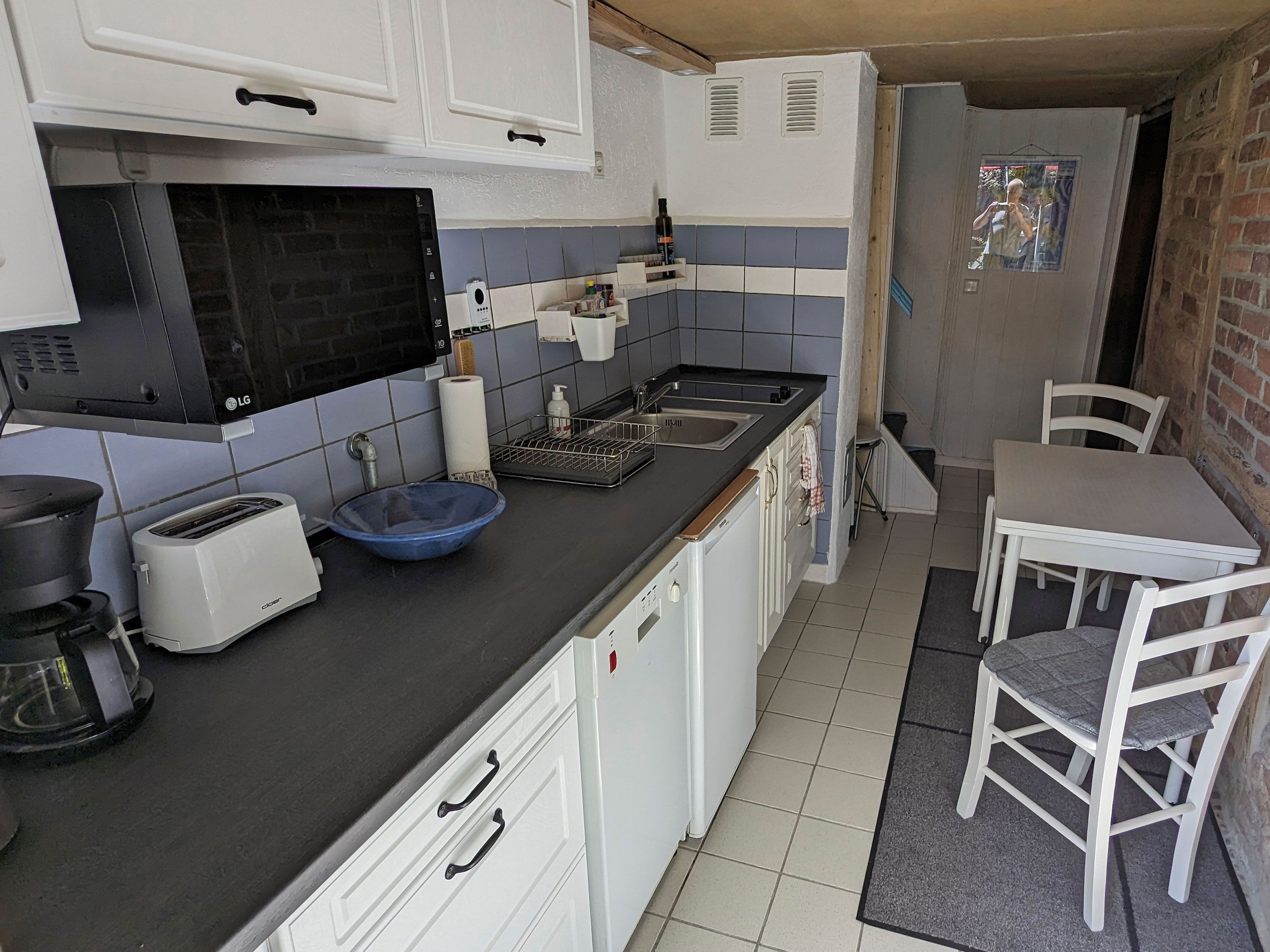• Im Eingangsbereich befindet sich die Küchenzeile mit Esstisch für 2 Personen. Die Küche ist mit Kühlschrank, 2 Platten-Cerankochherd, Spülmaschine, Mikrowelle, Kaffeemaschine, Toaster Wasserkocher und diversen anderen Küchenutensilien ausgestattet.