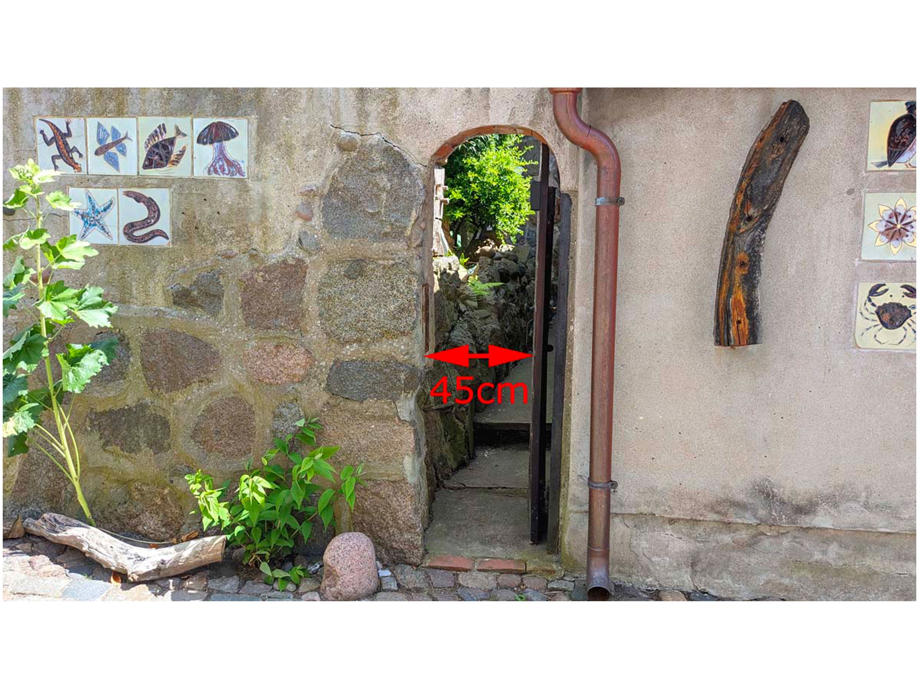 • Sie erreichen das Ferienhaus durch ein schmales Tor durch den Garten. Vorsicht, das Tor hat nur eine Breite von 45 cm.