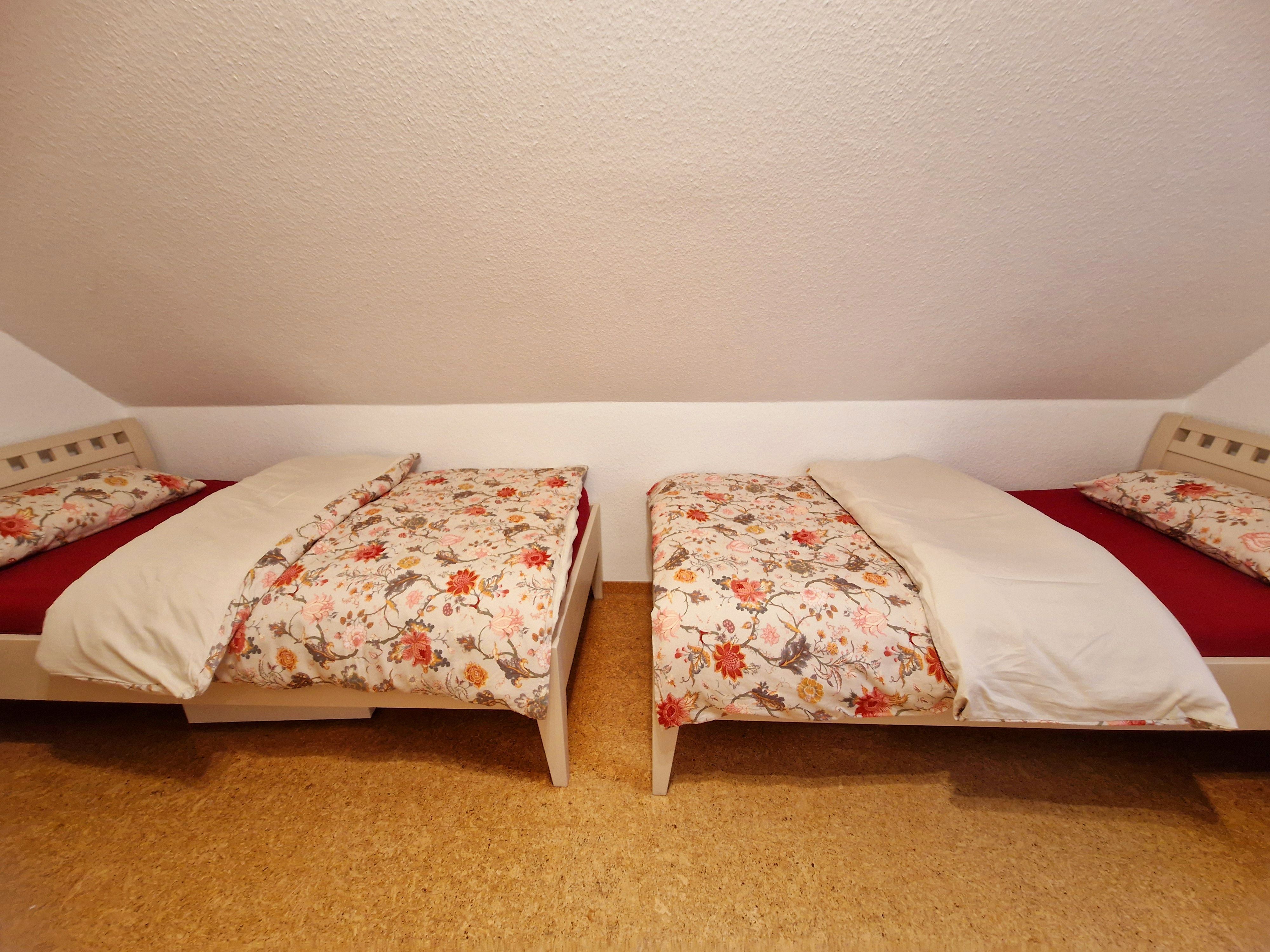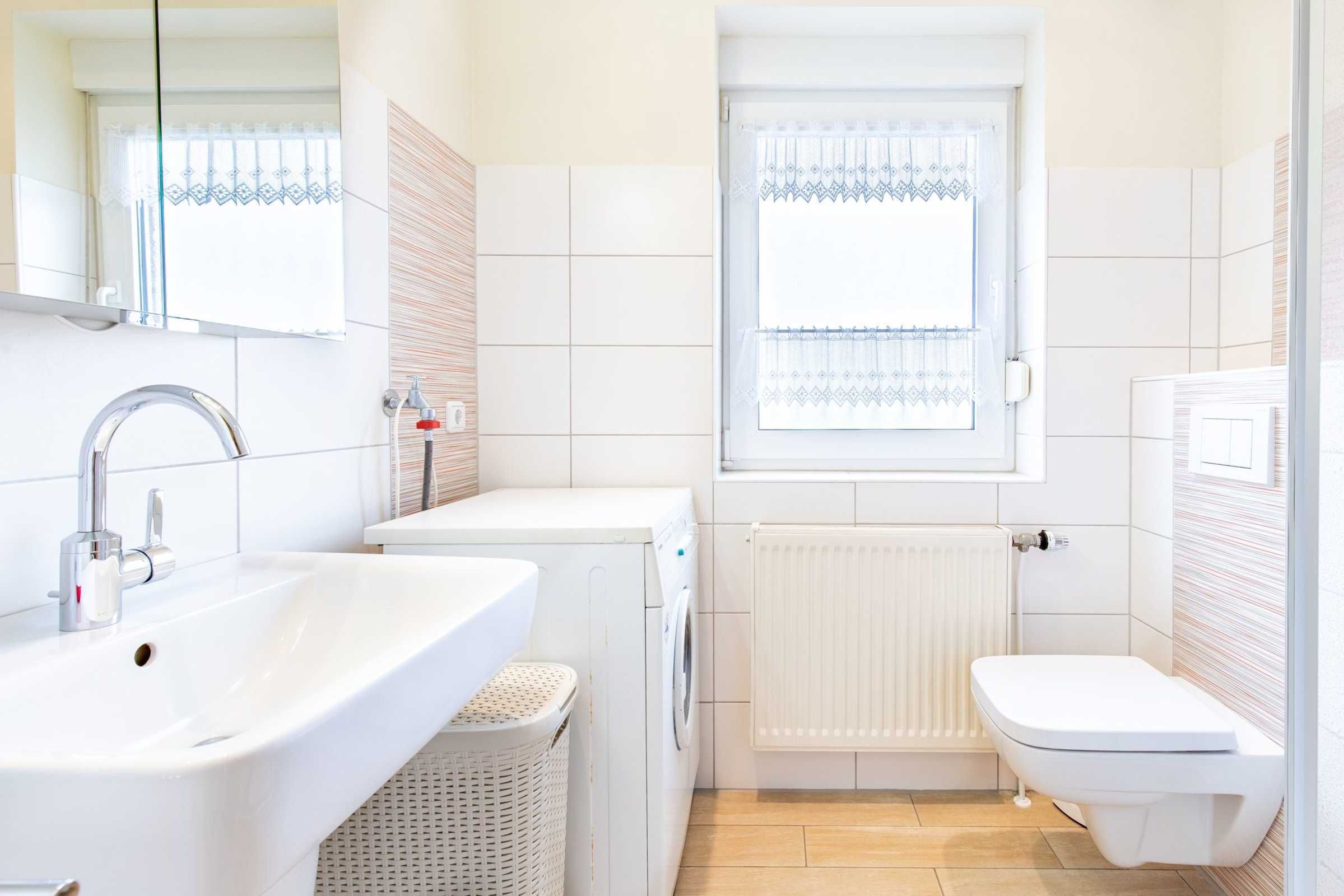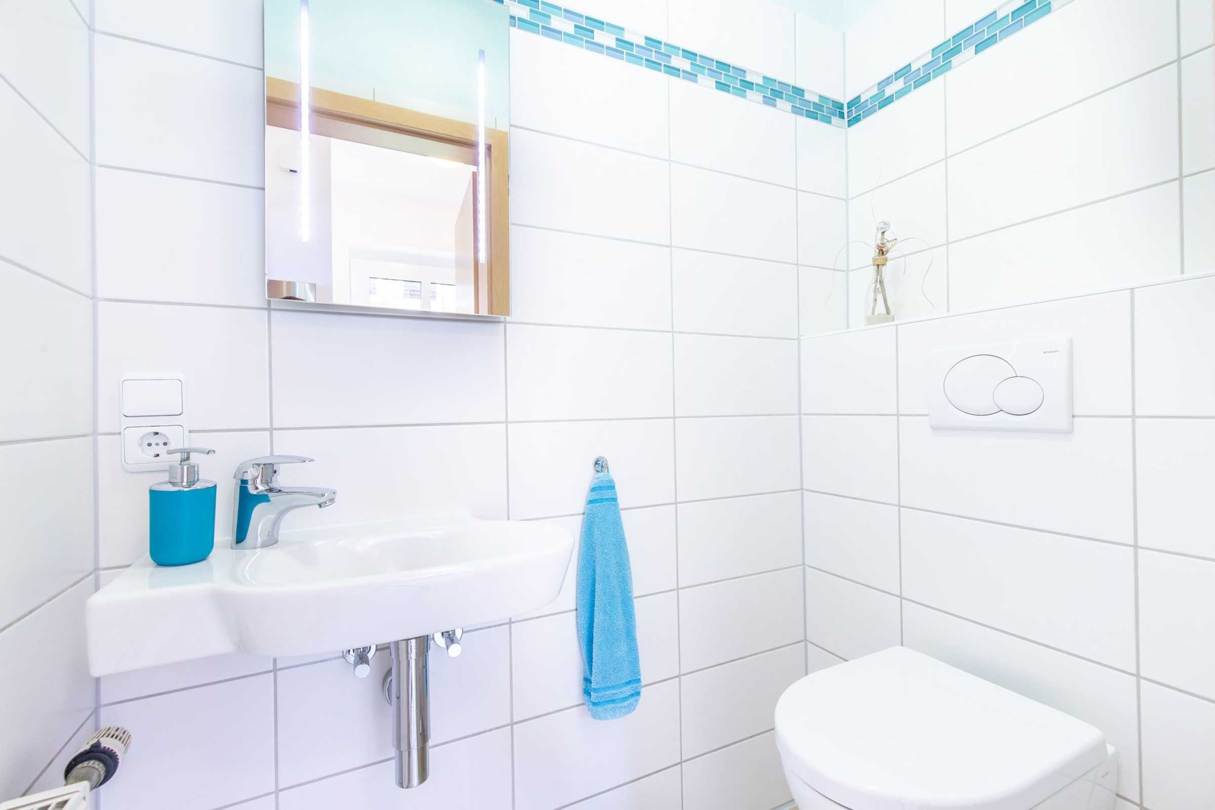 Im Erdgeschoss empfängt sie ein Wohn- und Esszimmer mit integrierter Küche. Von hier aus haben sie den direkten Zugang zur Terrasse. Auch ein kleines WC findet sich im Eingangsbereich. Eine ausreichend große Treppe führt sie in die zwei Schlafräume und ein großes Badezimmer mit Dusche, Waschmaschine und Wäschetrockner. Auch für die Kleinsten ist gesorgt. Hochstühle, Steckdosensicherungen und Treppensicherungen sind vorhanden ebenso wie Tritthocker vor den Waschbecken. Ein Bügelbrett sowie ein Bügeleisen sind vorhanden und last but not least gibt es natürlich IM GANZEN HAUS WLAN!