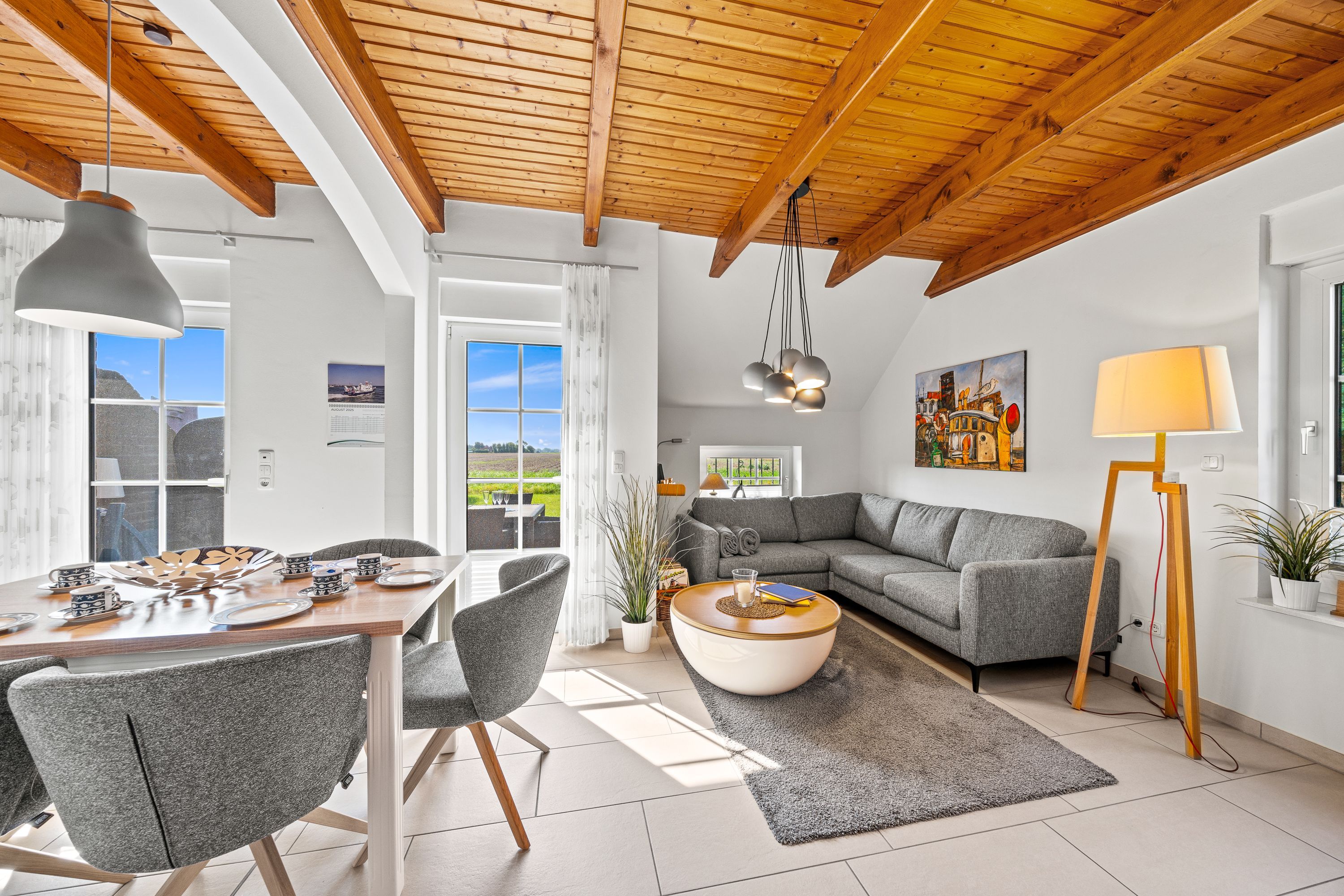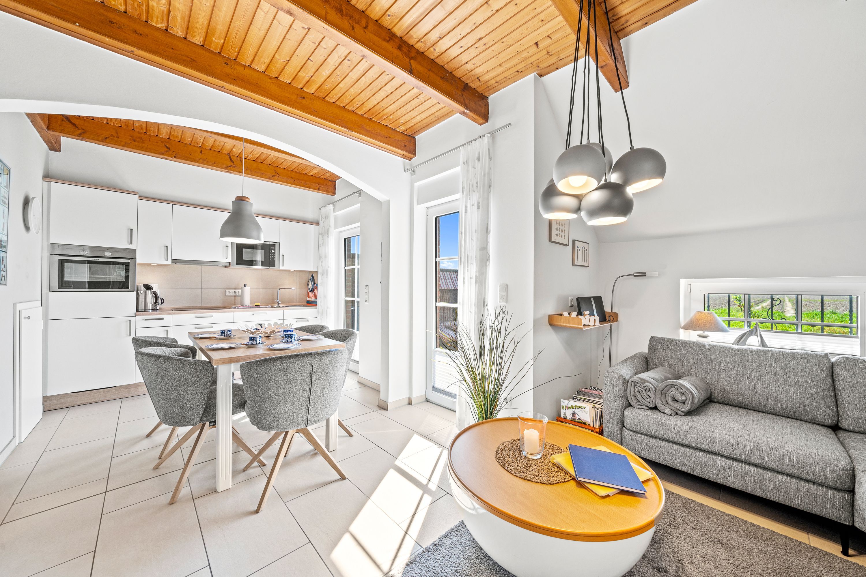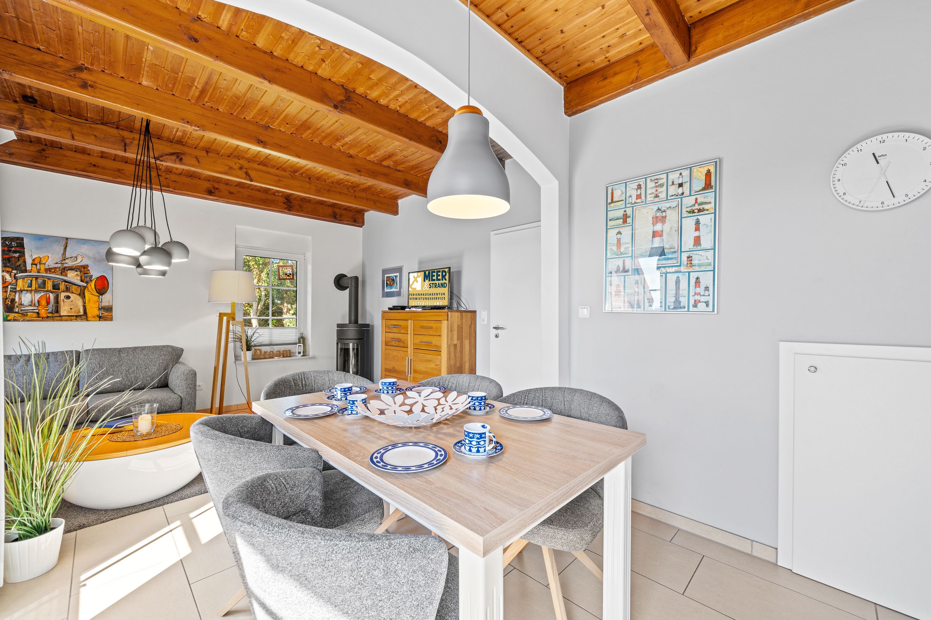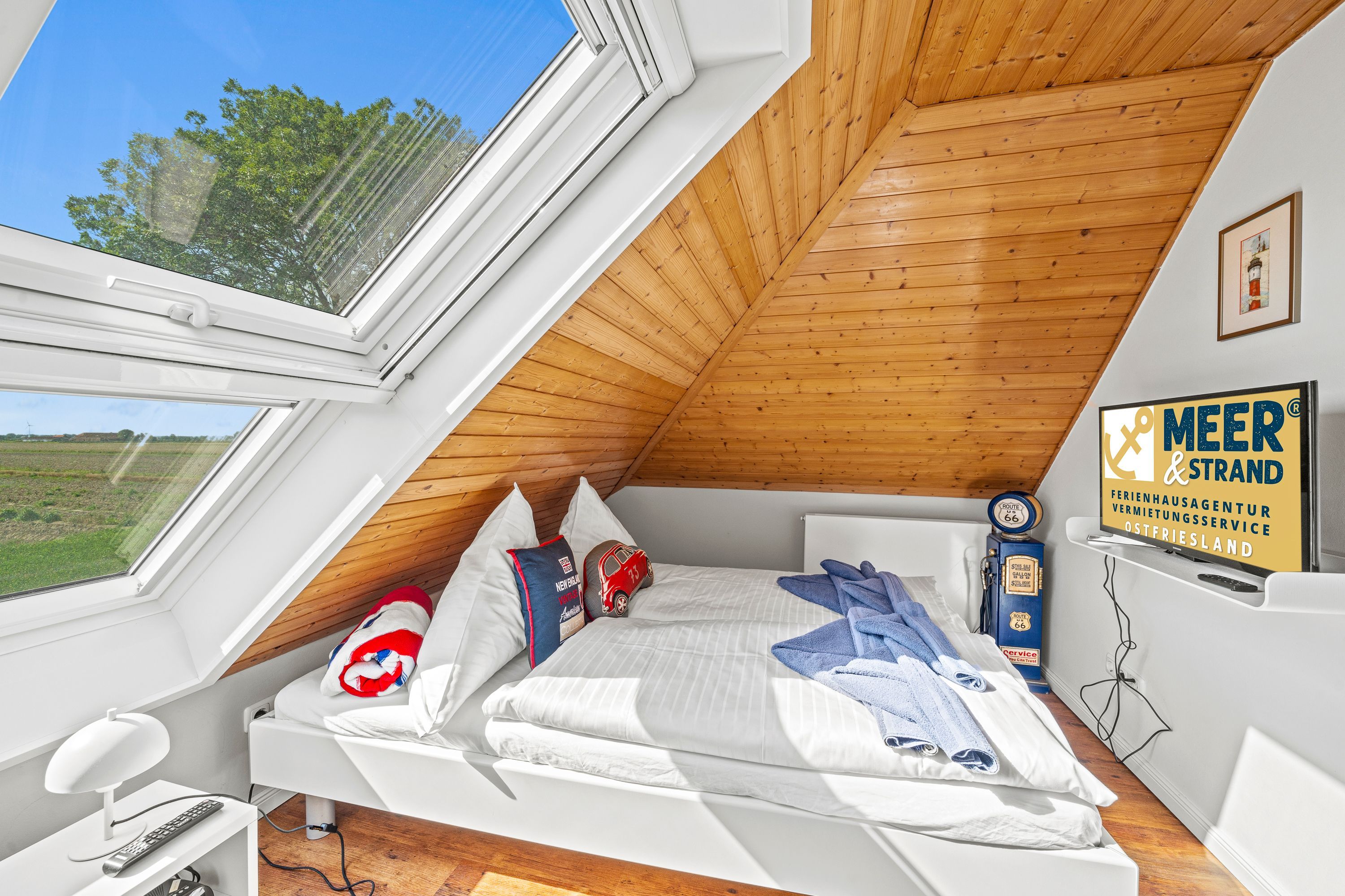 Die Komfort-Doppelhaushälfte ist sehr hochwertig ausgestattet. Im Erdgeschoss befinden sich das gemütliche Wohnzimmer mit Kaminofen, der offene Küchenbereich mit vollausgestatteter Einbauküche, ein Schlafzimmer mit Doppelbett und Babyreisebett sowie ein Duschbad. Im Dachgeschoss befinden sich ein zweites Duschbad mit Waschmaschine, zwei Schlafzimmer mit Doppelbetten und eine gemütliche Leseecke. Im Wohnzimmer und in allen Schlafzimmern gibt es Radios mit Bluetooth. Das komplette EG ist mit Fußbodenheizung und elektrischen Rollladen ausgestattet. Alle Fenster und Türen verfügen über Insektenschutzgitter. Beide Bäder verfügen über bodengleiche Duschen. Zusätzlich gibt es ein Gartenhaus und zwei Parkplätze am Haus. Wir heißen Sie herzlich willkommen in Ostfriesland. Charmant und optimal geeignet für bis zu 4 Gäste auf einer Wohnfläche von 80 m².