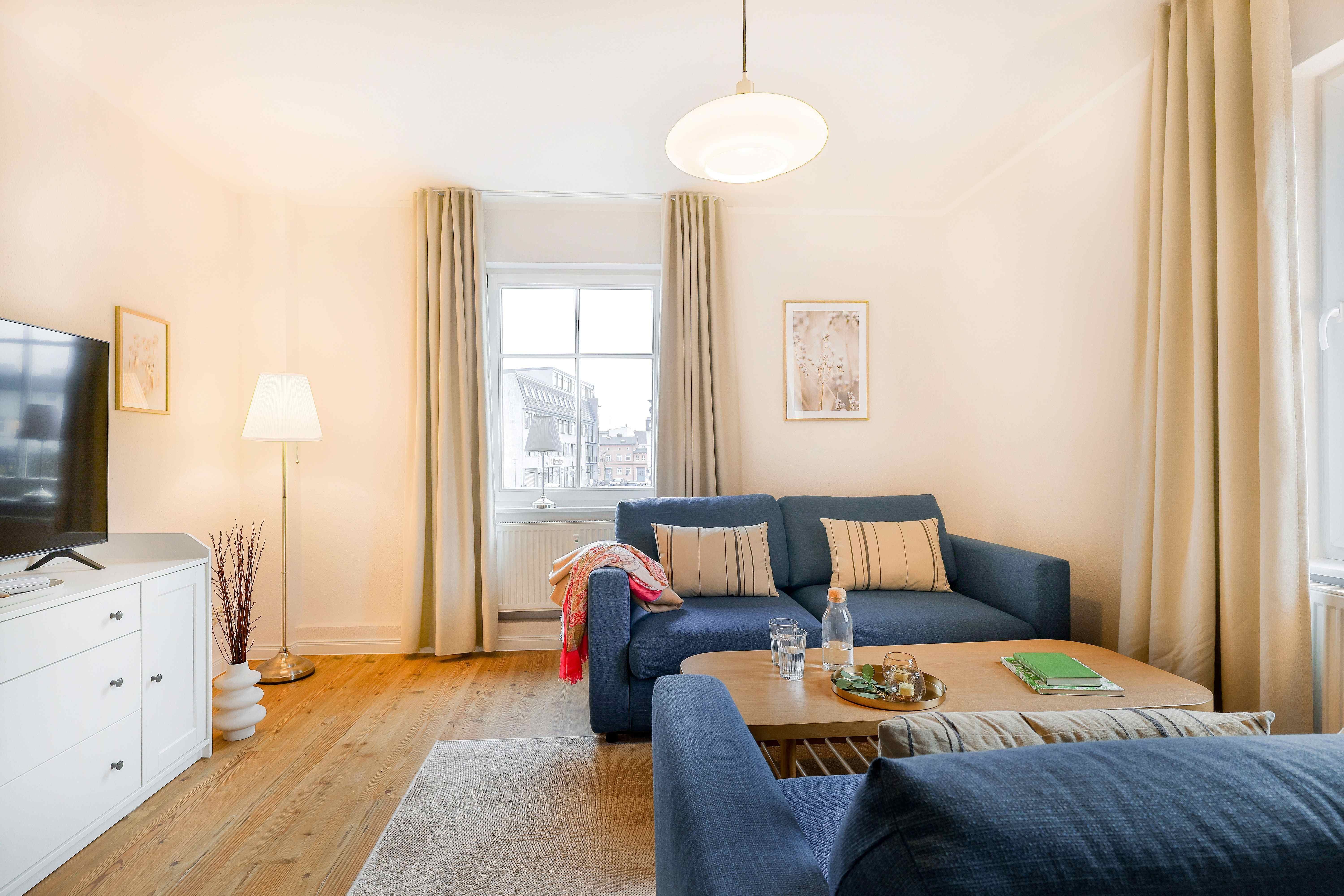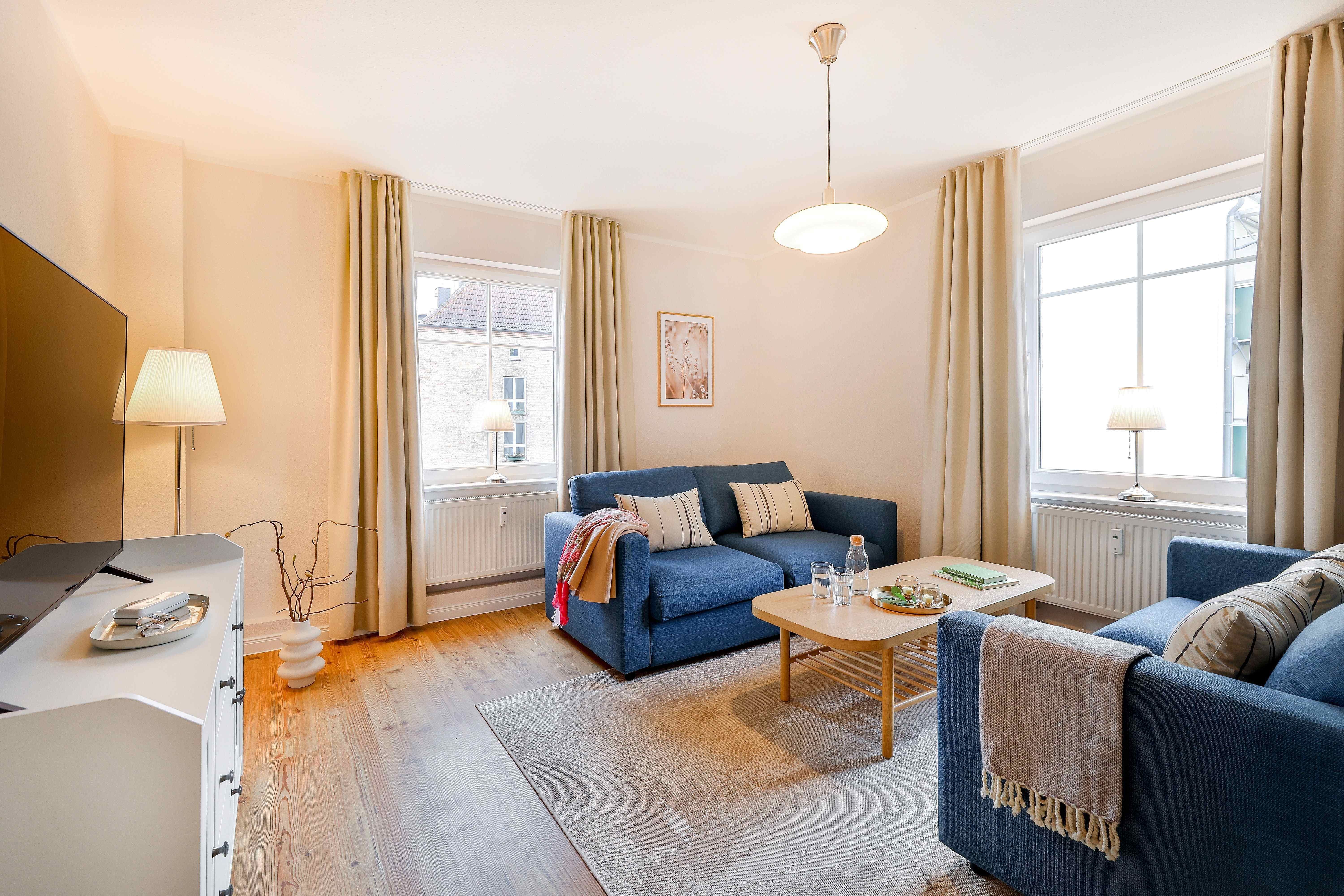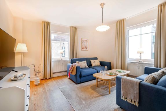 Diese Apartements von Stralsund Homes sind sehr ruhig im Herzen Stralsunds im ehemaligen Bürgermeisterviertel gelegen und von viel Grün umgeben. Das Gebäude ist komplett saniert und verfügt über ein innenliegendes Treppenhaus. Einkaufsmöglichkeiten (Supermarkt) und Bushaltestelle sind 2 Gehminuten entfernt. Bis in das Zentrum (Markt) benötigt man 5 Gehminuten.