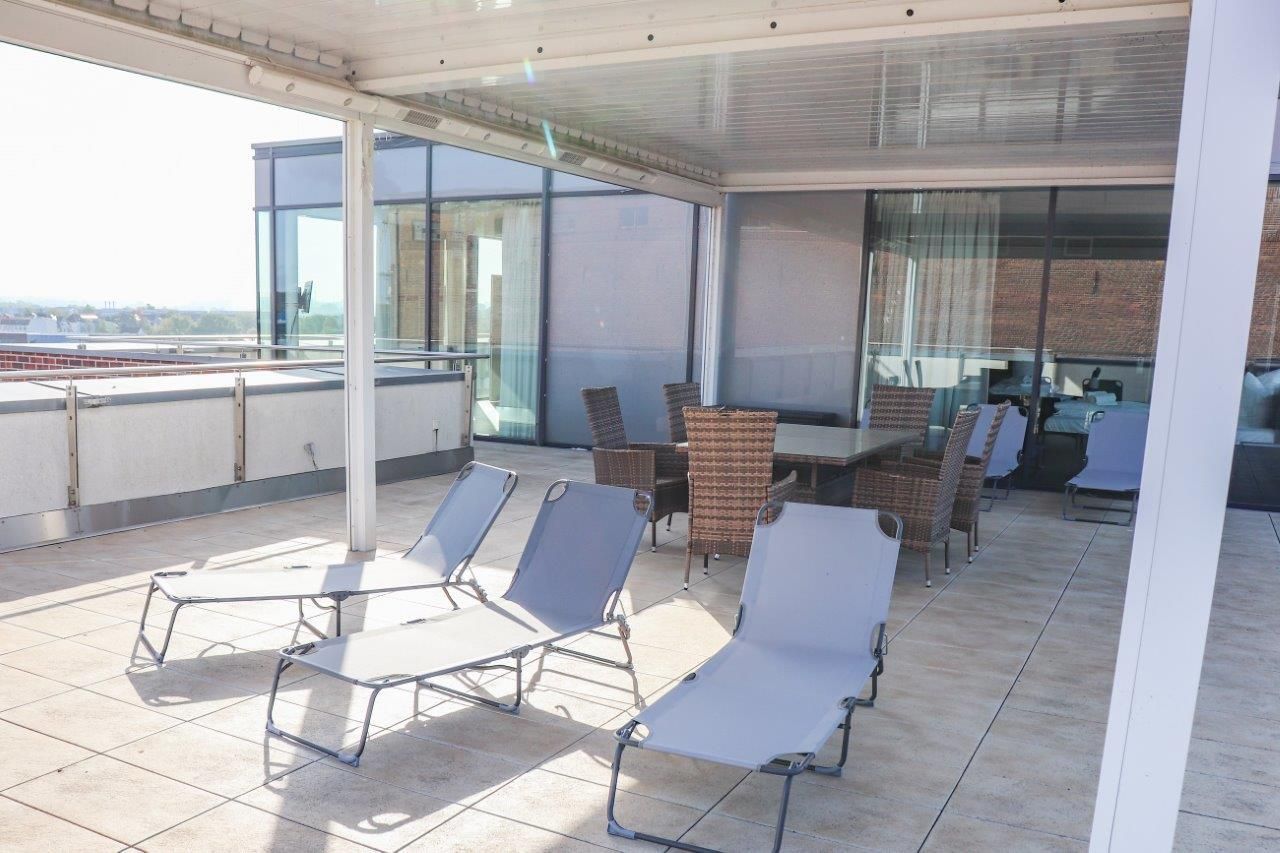 - große Dachterrasse 360 Grad begehbar, teilweise überdacht mit 6 Stühlen und Esstisch, 6 Sonnenliegen