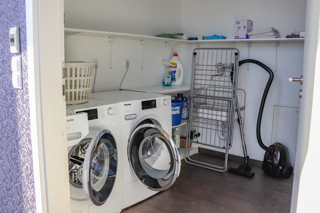 Küchenausstattung: Side-by-Side Kühlschrank mit Gefrierfach, Geschirrspüler, Backofen, Kaffeemaschine, Wasserkocher, Toaster, Geschirr, Besteck, Töpfe, Pfannen uvm.