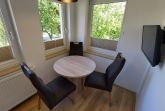 Ihr Ferienunterkunft verfügt über ein Schlafzimmer, Wohnzimmer, Pantryküche und ein Badezimmer. Das Schlafzimmer bietet ein Doppelbett von zwei Einzelbetten a 0,80m x 1,90m. Ein weiteres Einzelbett (0,80m x 1,90m) steht im Wohnbereich zur Verfügung. Ihre mitgebrachte Kleidung können Sie in den Kleiderschrank legen. Nehmen Sie an dem Esstisch mit vier Stühlen Platz. Die Küche ist mit Herd, Kaffeemaschine, Kühlschrank, Toaster und Wasserkocher ausgestattet. Im Wohnzimmer erwartet Sie ein Sat.-TV. Das Badezimmer begrüßt Sie mit einer Dusche, Toilette und einem Waschbecken. Bettwäsche und Handtücher sind im Mietpreis enthalten. Es besteht Zentralheizung. Nutzen Sie gerne die gemeinschaftliche Münzwaschmaschine oder den Münztrockner.