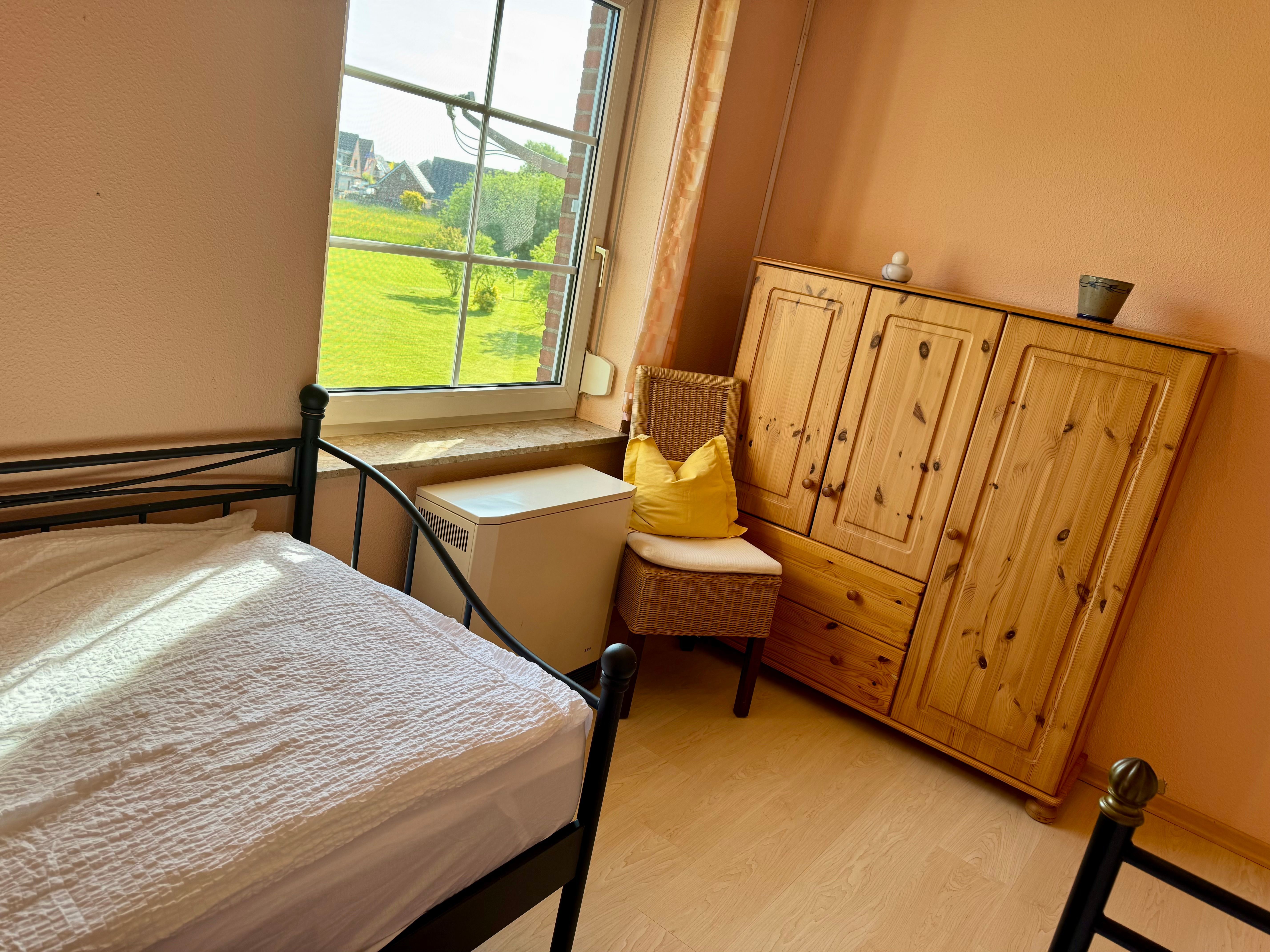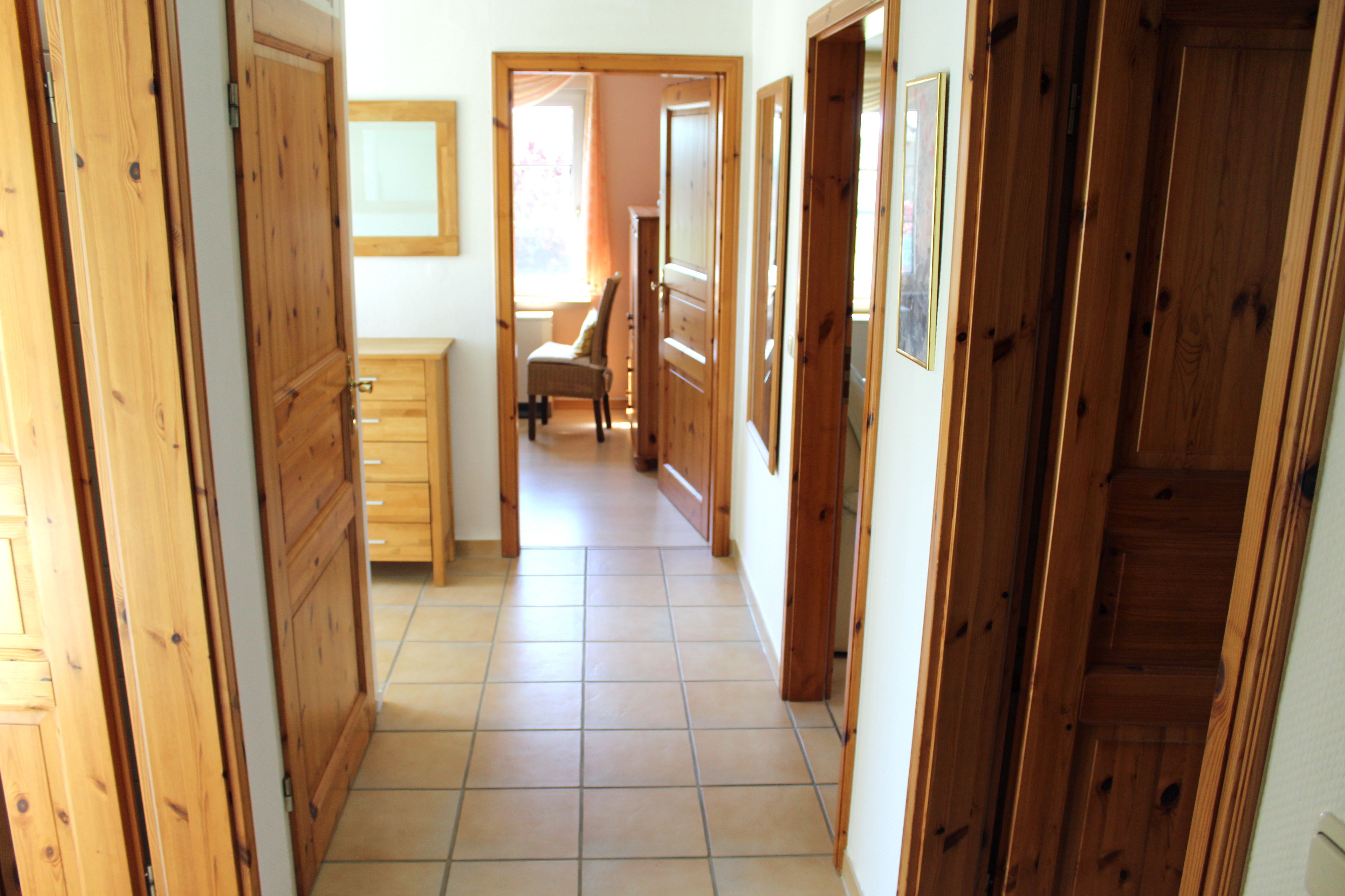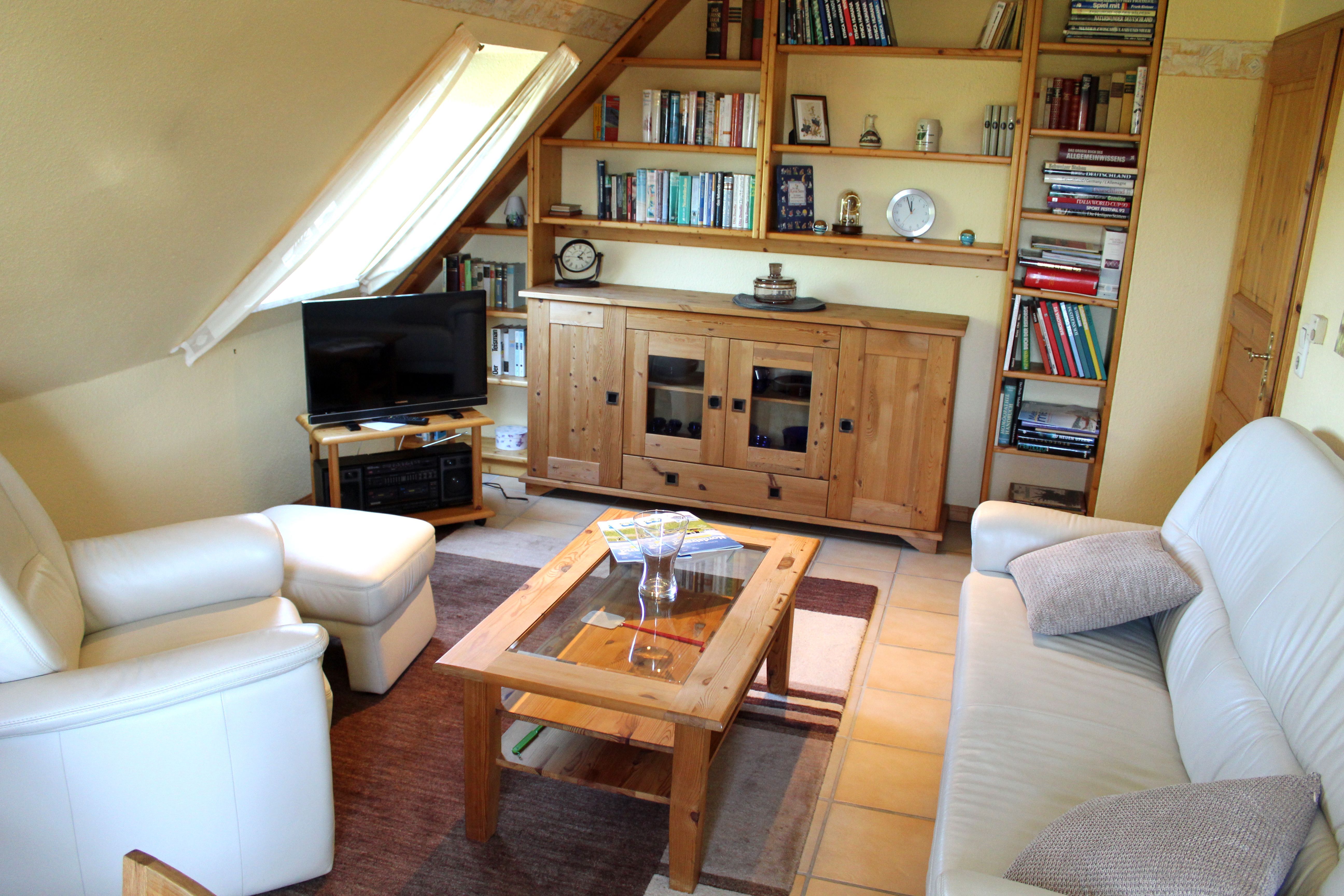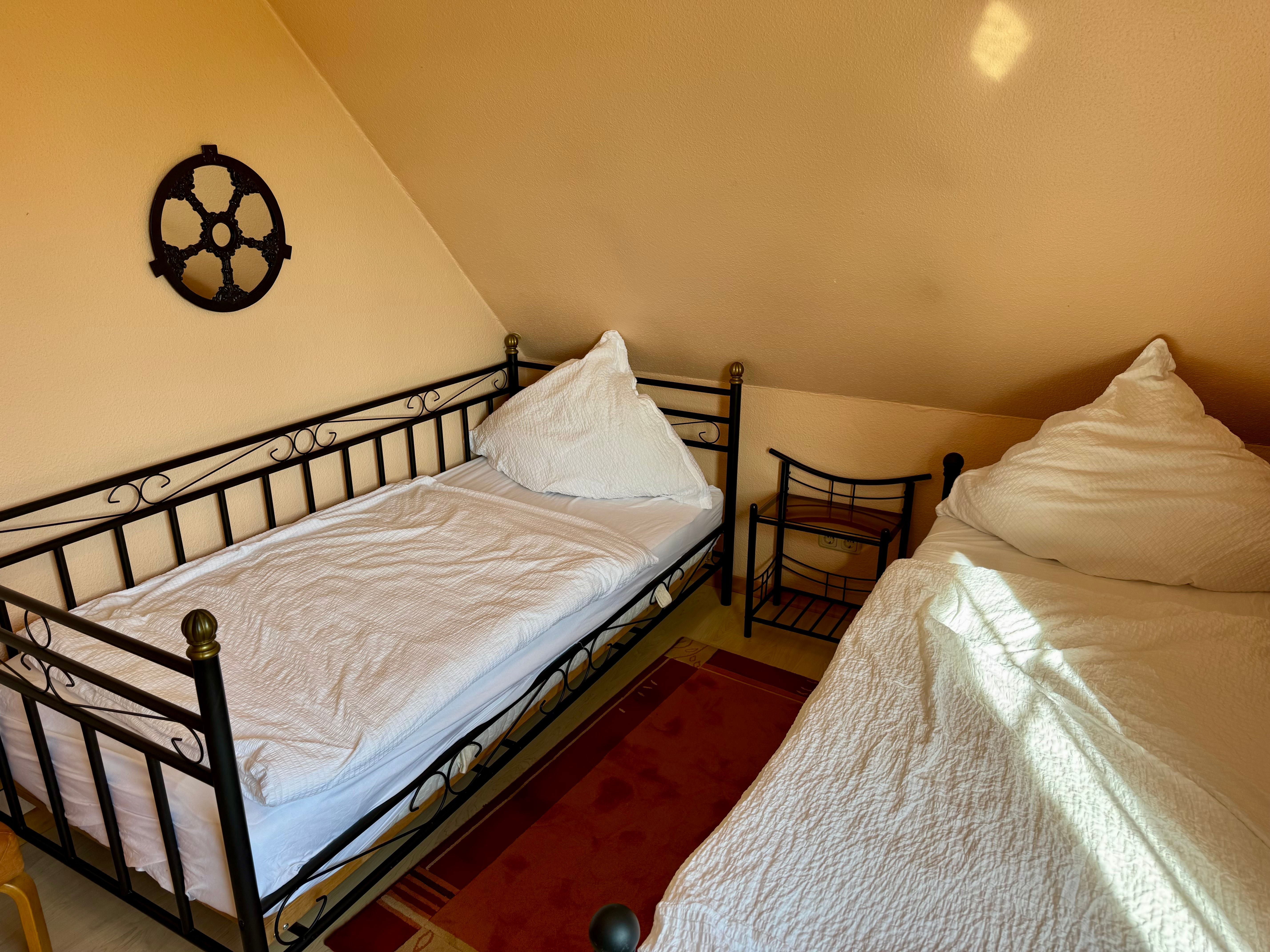 Im ersten Stock befindet sich eine weitere Wohnung, die zur Gesamtmiete des Hauses gehört. Dort gibt es zwei Schlafzimmer, eines mit Doppelbett (180x200cm) und eines mit zwei Einzelbetten (90x200cm). Ein gemütliches Wohnzimmer, eine Küche und ein Duschbad runden das Obergeschoss ab.