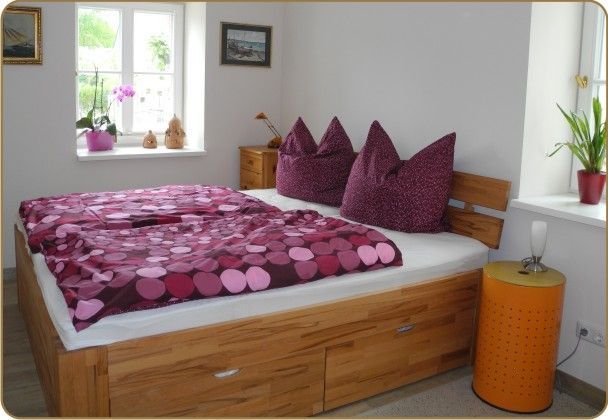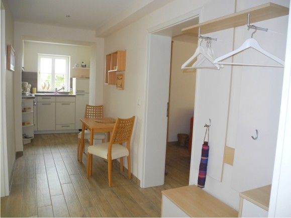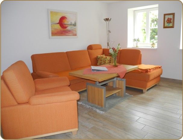 Die Ferienwohnung ist ebenerdig (barrierefrei), komplett mit Fußbodenheizung ausgestattet, hat ein Schlafzimmer, ein Wohnzimmer, ein modernes  Bad, eine offene Küche mit Sitzplätzen und einen Flur.  Ein sehr bequemes Bett mit hochwertigen Matratzen u. Federböden in 1,80 m Breite sorgt für guten Schlaf. Mit einer ausziehbaren  Doppelcouch im Wohnzimmer stehen Ihnen  2 weitere Schlafmöglichkeiten zur Verfügung. Für Kleinkinder können Sie ein Kinderbett (Reisekinderbett mit Matratze) dazu buchen. Bitte denken Sie daran, das Bettzeug dafür selbst mitzubringen. Wenn Sie einen Kinderstuhl benötigen, teilen Sie uns das bitte mit. Diesen können wir für Sie ausleihen.