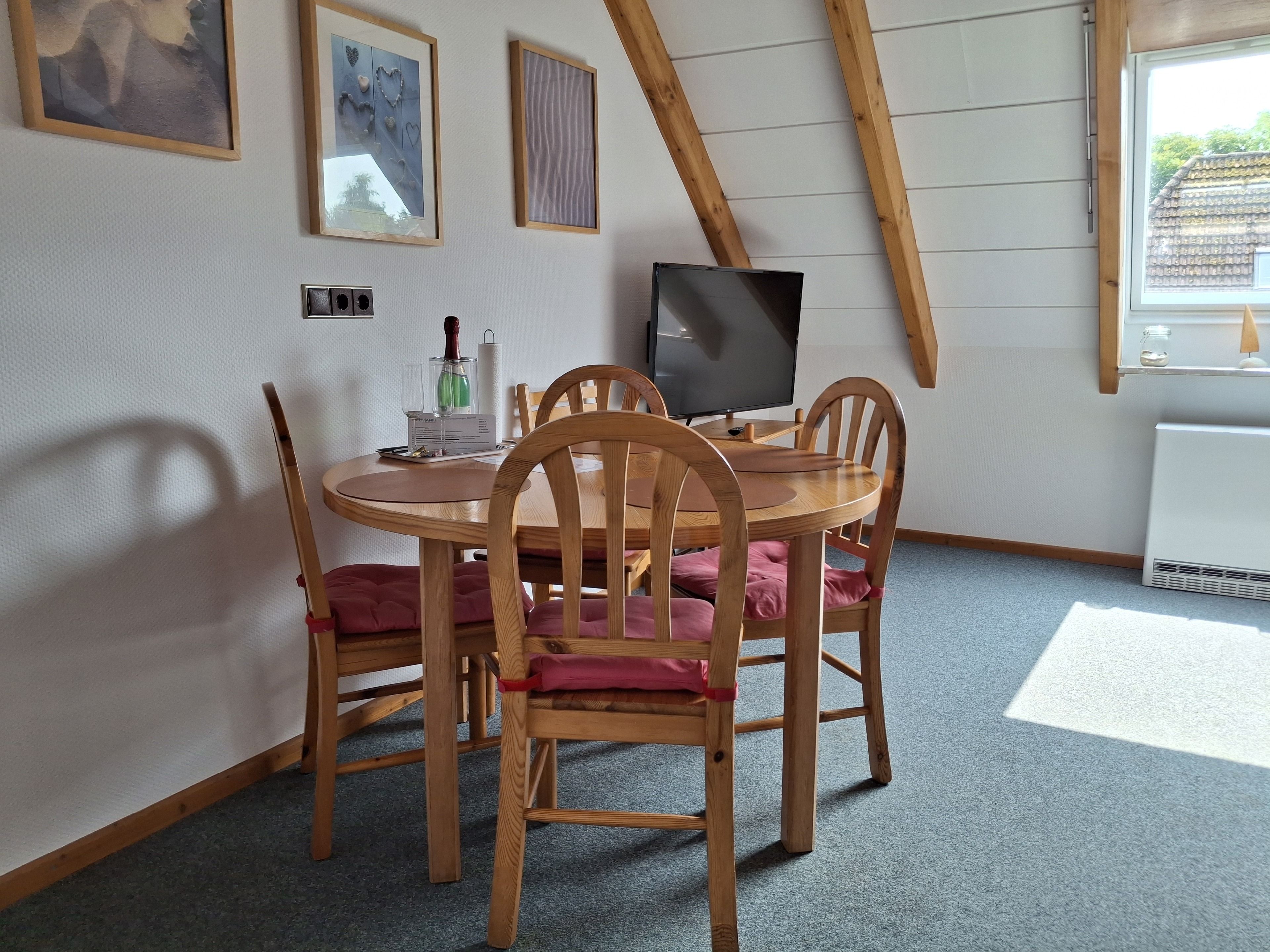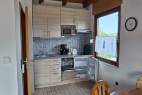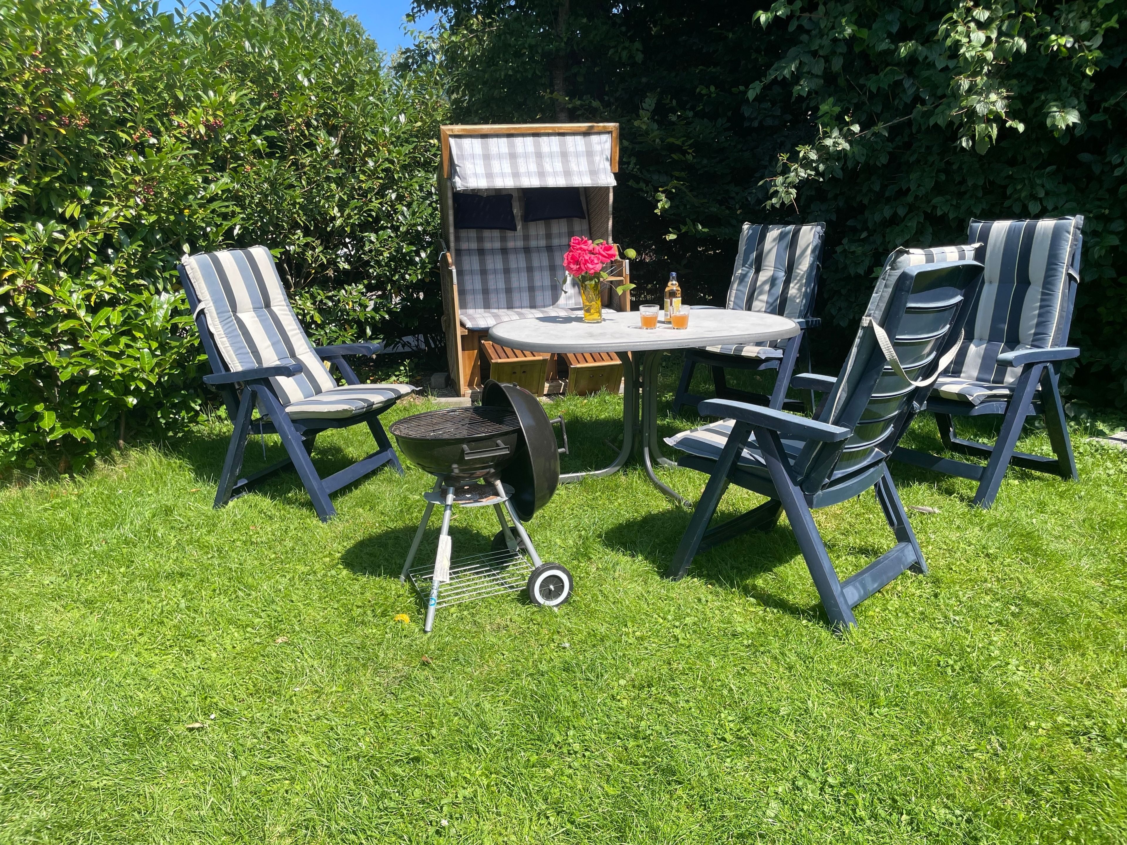 Diese Ferienwohnung befindet sich im 1. Geschoss ohne Balkon. Zu der Wohnung gehört eine separate Sitzecke im Garten. Diese ist ausgestattet mit Strandkorb, Gartenmöbeln, Sitzauflagen, Sonnenschirm und Grill.