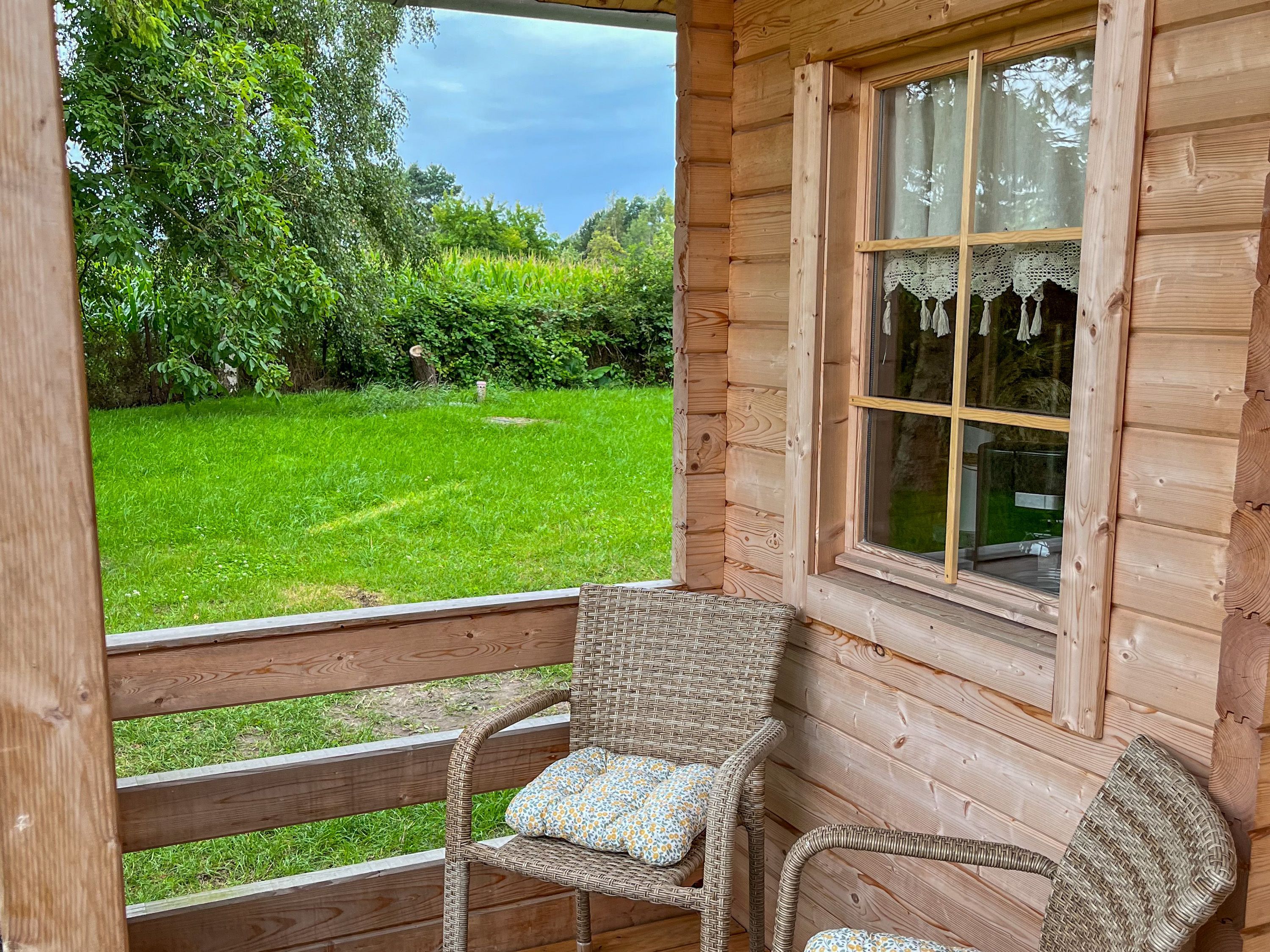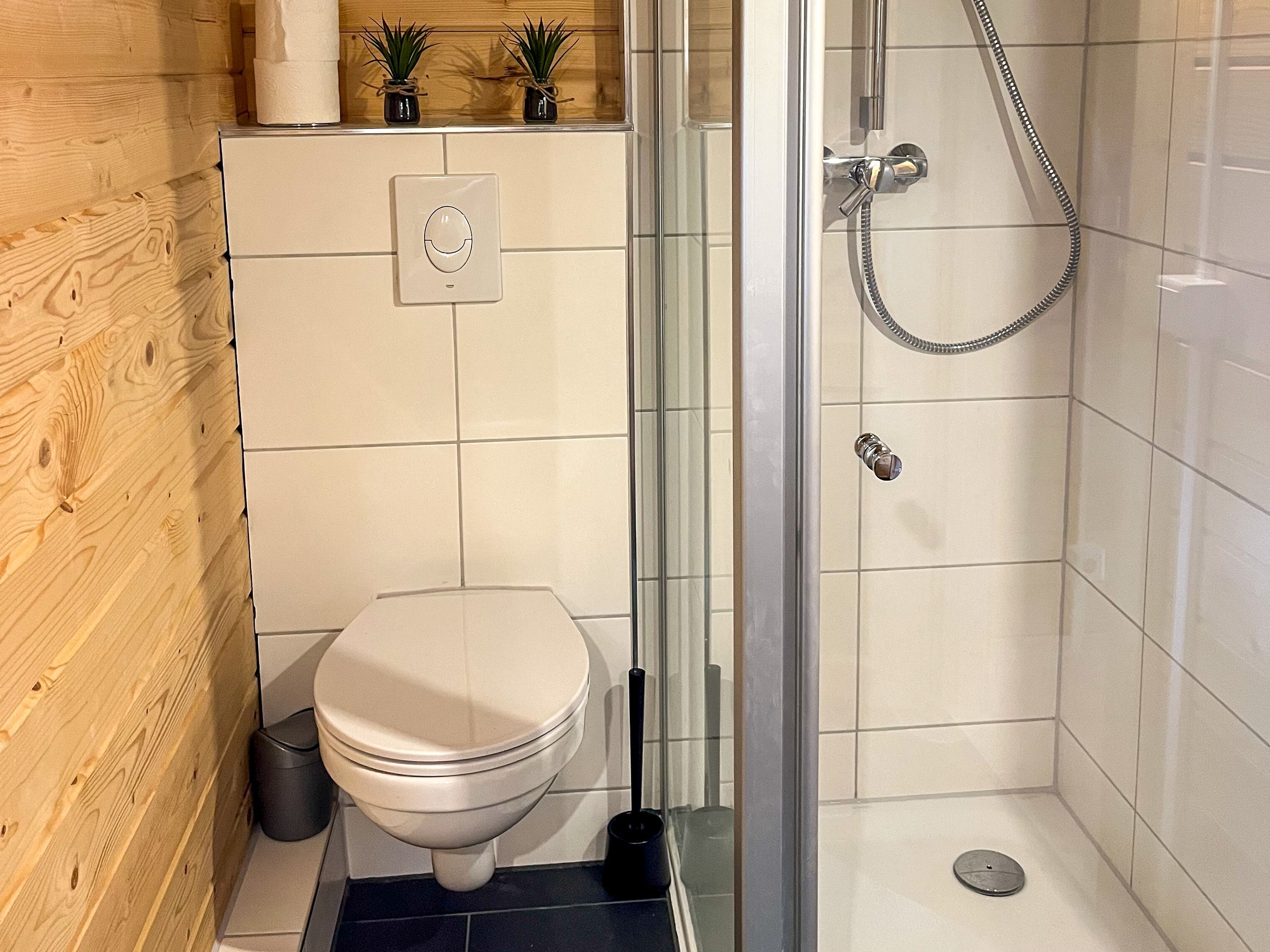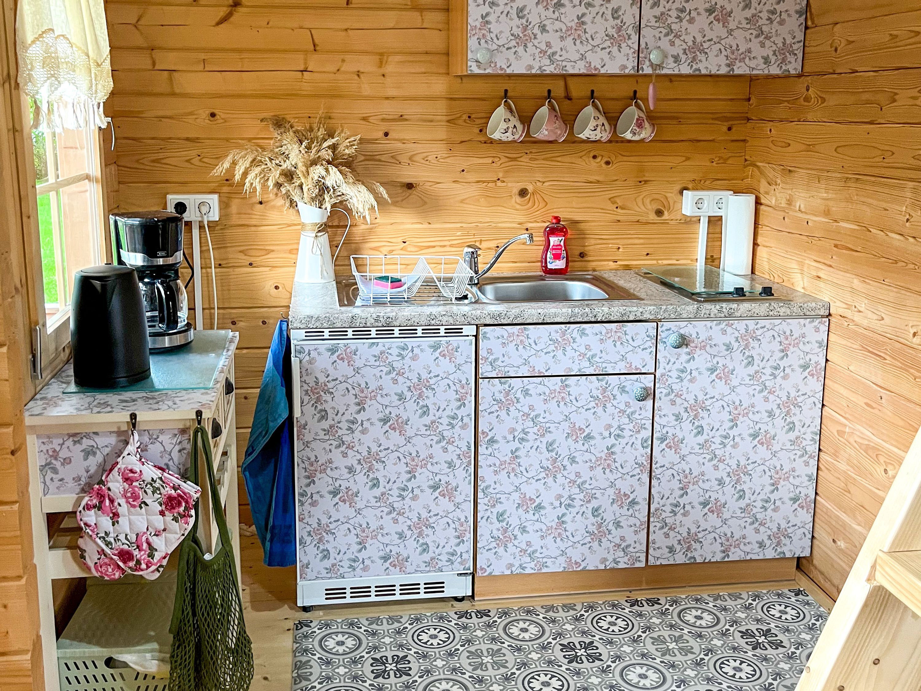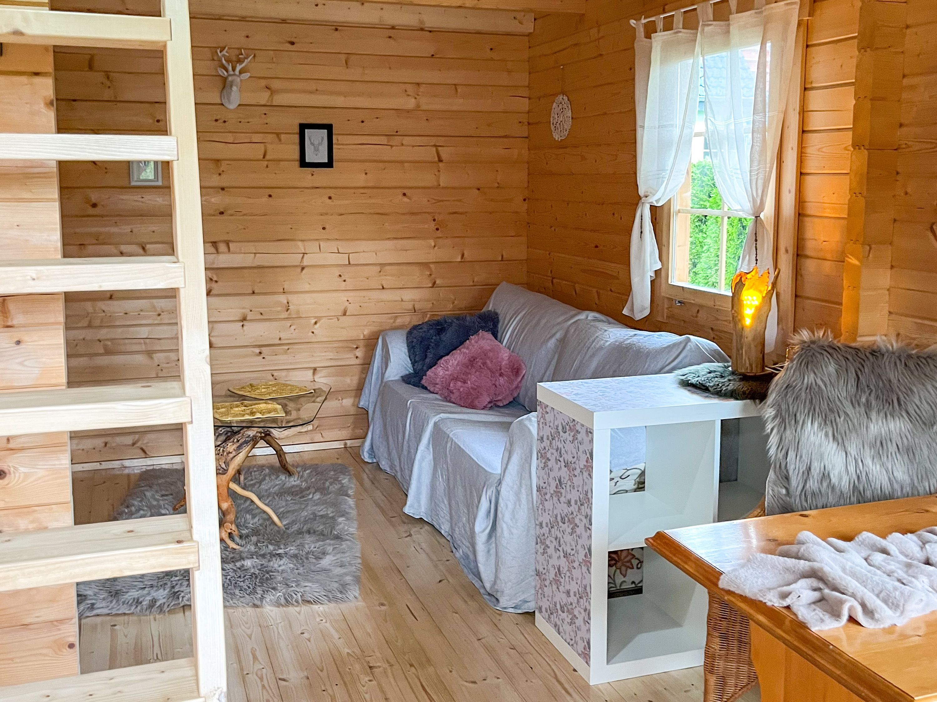 Das Tiny Häuschen Land-Idyll in Bartelshagen 2 bietet auf 35 m² alles, was man für einen gemütlichen Sommerurlaub braucht - kompakt, durchdacht und liebevoll eingerichtet. Es ist ideal für alle, die offen wohnen, die Nähe zur Natur genießen und es unkompliziert mögen. Der Wohnraum ist als offener Bereich gestaltet und vereint auf charmante Weise Schlaf-, Wohn- und Kochbereich. Hier findest du ein bequemes Schlafsofa (140x200), das tagsüber als Sofa dient und sich abends in einen gemütlichen Schlafplatz verwandeln lässt. Ein Fernseher und ein kleiner Esstisch schaffen eine angenehme Wohnatmosphäre auf kleinem Raum. Die offene Pantry-Küche ist mit allem ausgestattet, was du zum Kochen brauchst - kompakt, aber funktional. Das Bad verfügt über eine ebenerdige Dusche, ein Waschbecken und ein WC. Über eine Leiter erreichst du den Schlafboden unter dem Dach, auf dem ein Doppelbett (140x200) auf dich wartet. Der Bereich ist niedrig, aber kuschelig - ideal zum Zurückziehen, Lesen oder Schlafen mit Blick in die Dachbalken. Draußen wartet eine eigene Terrasse mit Sitzgelegenheit und Grill auf dich. Der Garten rund ums Tiny House kann mitgenutzt werden und bietet Raum für entspannte Stunden im Grünen, Frühstück in der Morgensonne oder einen Abend unterm Sternenhimmel. Auch ein Hund darf gern mitreisen und vielleicht findet er auf dem gemeinsam genutzten Grundstück sogar einen Spielkameraden aus der benachbarten Ferienwohnung im Mehrfamilienhaus.