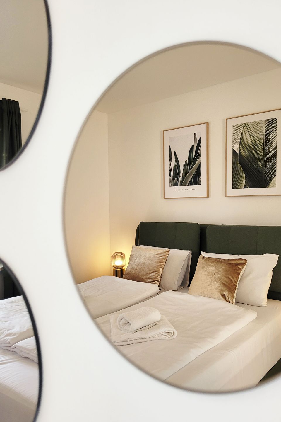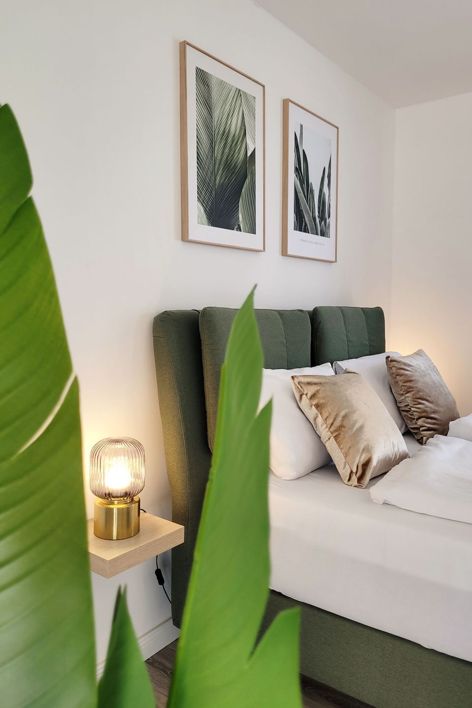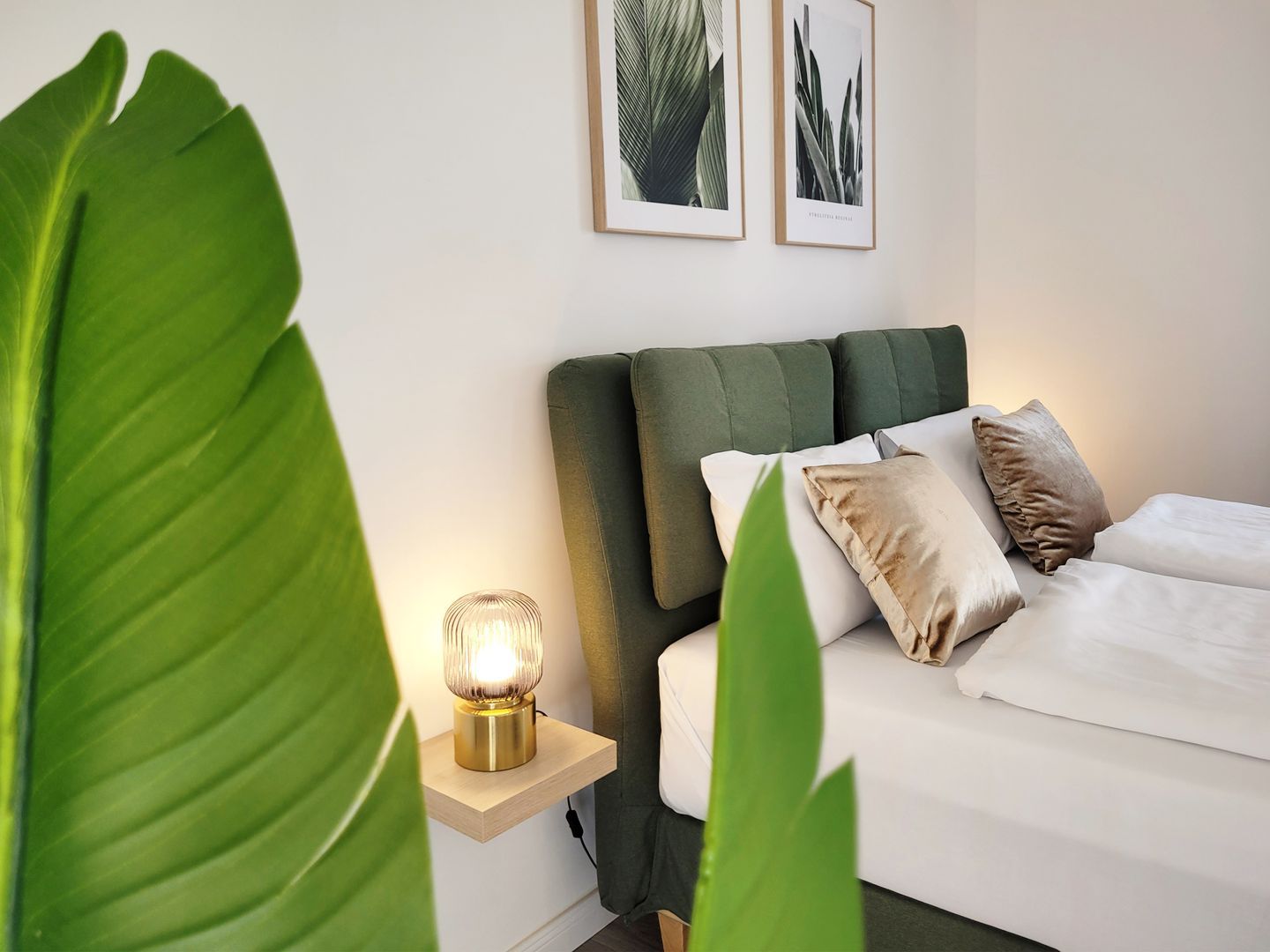 Dieses stilvoll gestaltete Apartment für zwei Personen bietet eine frische, einladende Atmosphäre und lädt dich ein, das Hafenleben hautnah zu erleben. Das helle Apartment verfügt über ein großzügiges und elegantes Boxspringbett, das für erholsame Nächte sorgt. Die geschmackvolle Einrichtung vereint moderne Elemente mit einem Hauch maritimer Romantik und schafft damit eine besonders gemütliche und einladende Stimmung.