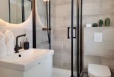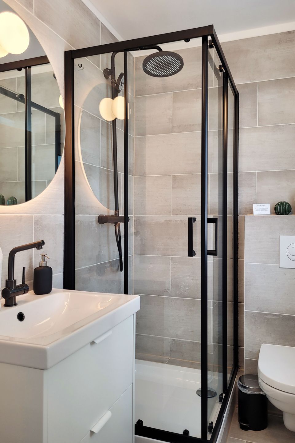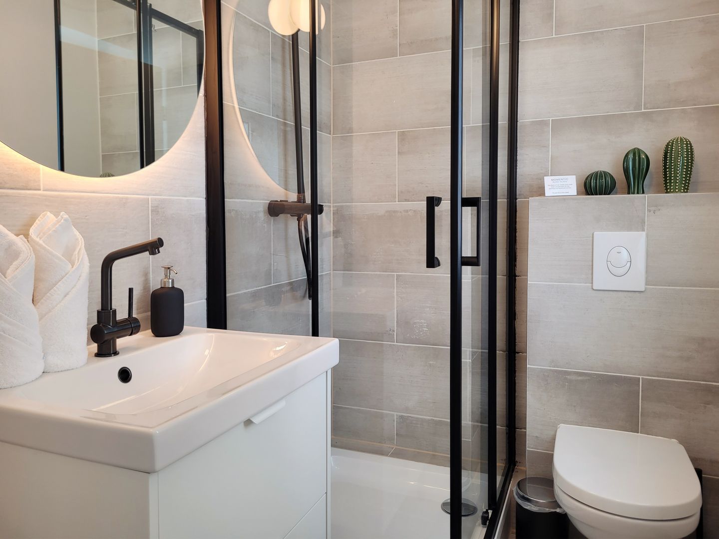 Das stilvolle Badezimmer mit Dusche ist eine wahre Oase der Entspannung. Dank des modernen Designs und hochwertiger Armaturen wirst du dich sofort wohlfühlen.