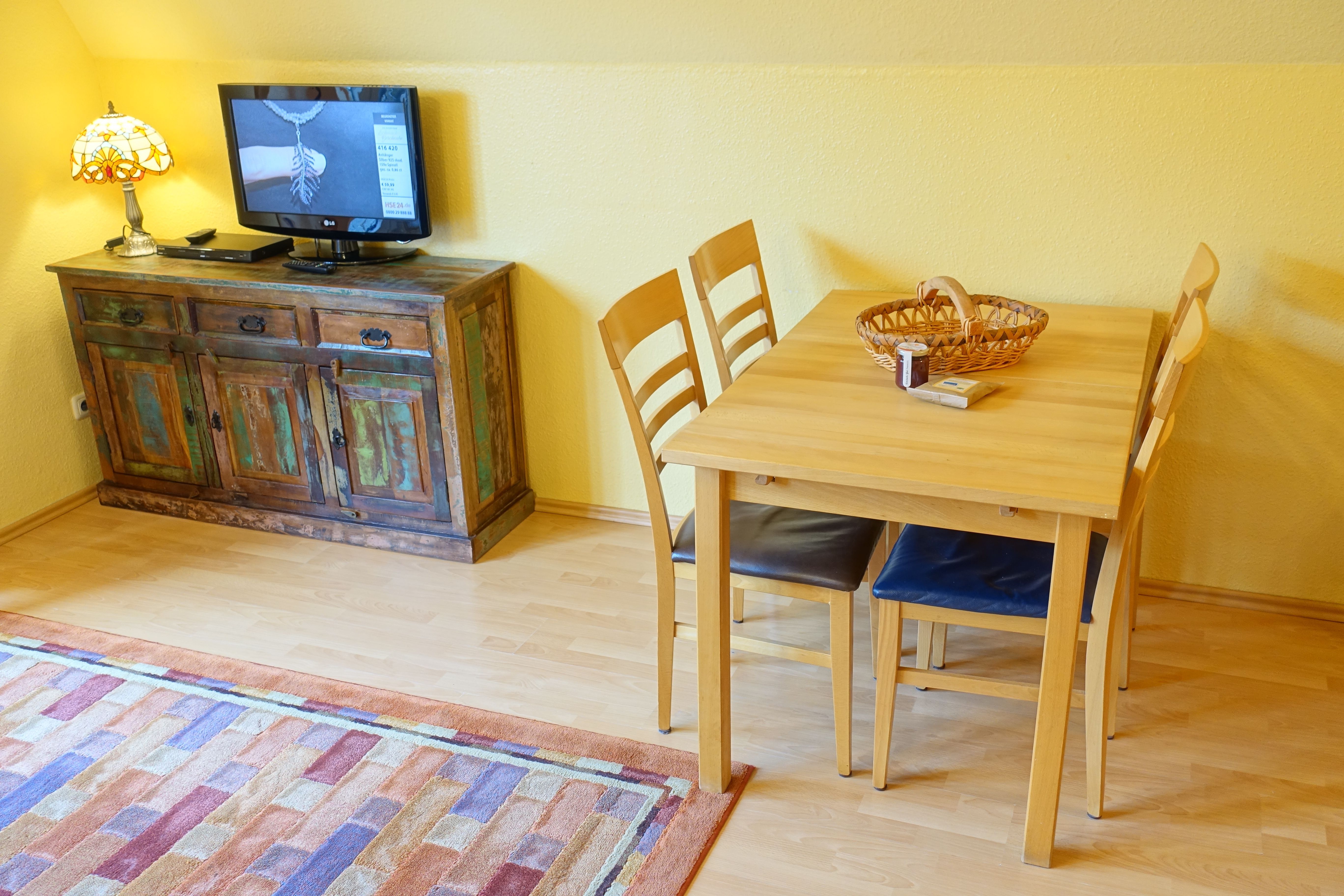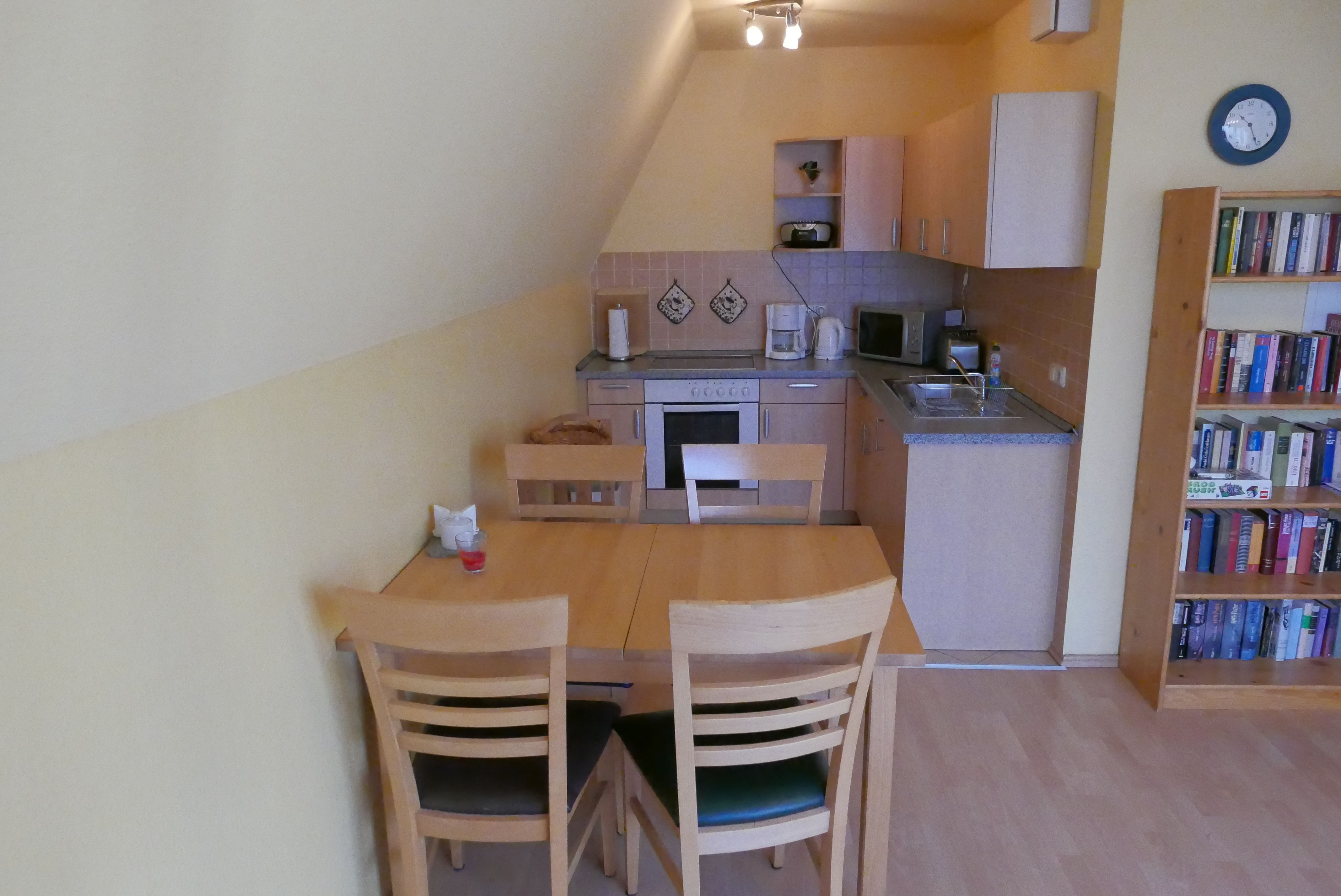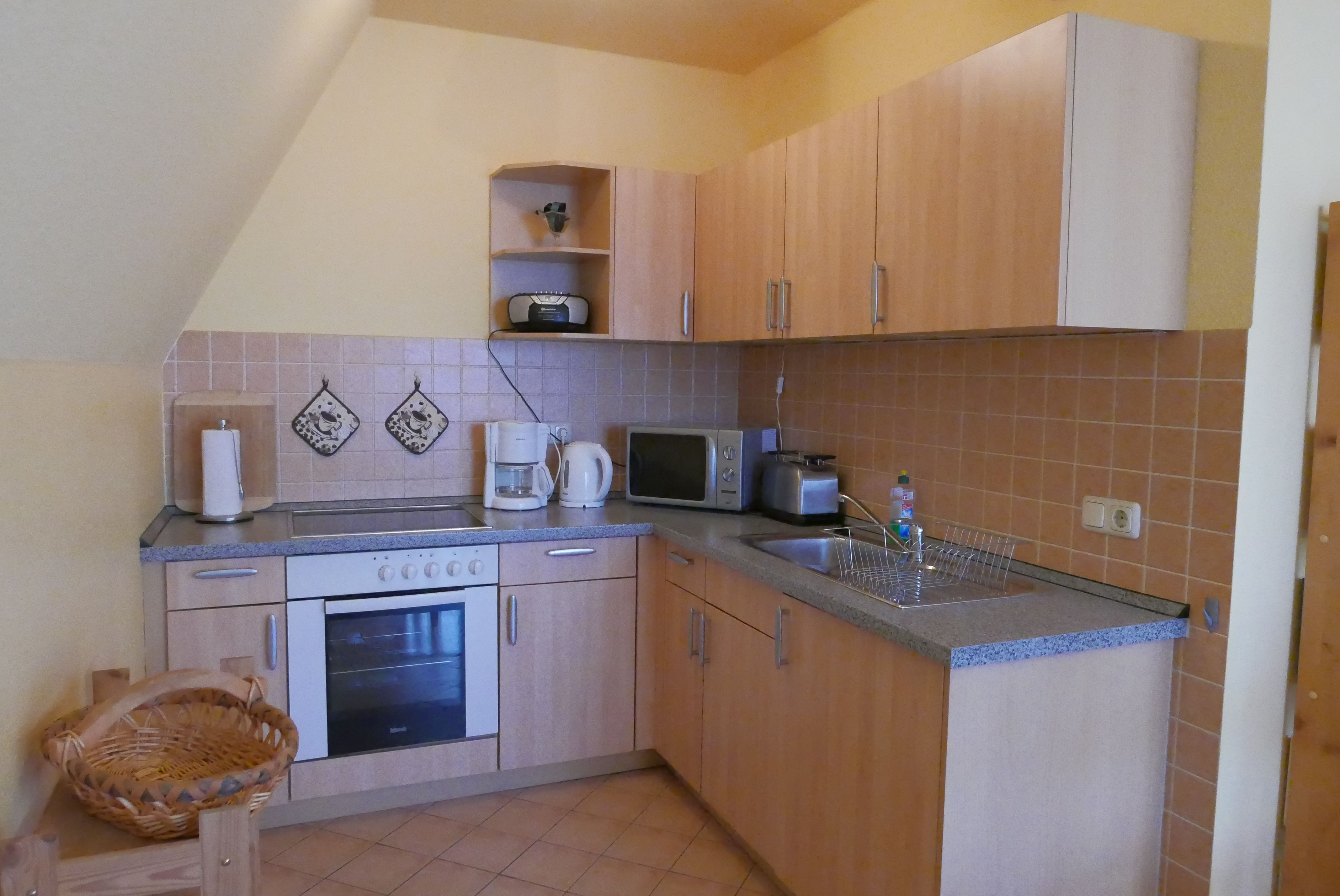 Schöne, geräumige Ferienwohnung mit herrlicher Terrasse und zwei Schlafzimmern (eines ist davon ein offener Schlafraum). Die Küche bietet eine gute Ausstattung mit Elektroherd, Backofen, Kühlschrank und Mikrowelle. Selbstredend sind alle erforderlichen Kochutensilien und das Geschirr vorhanden.
