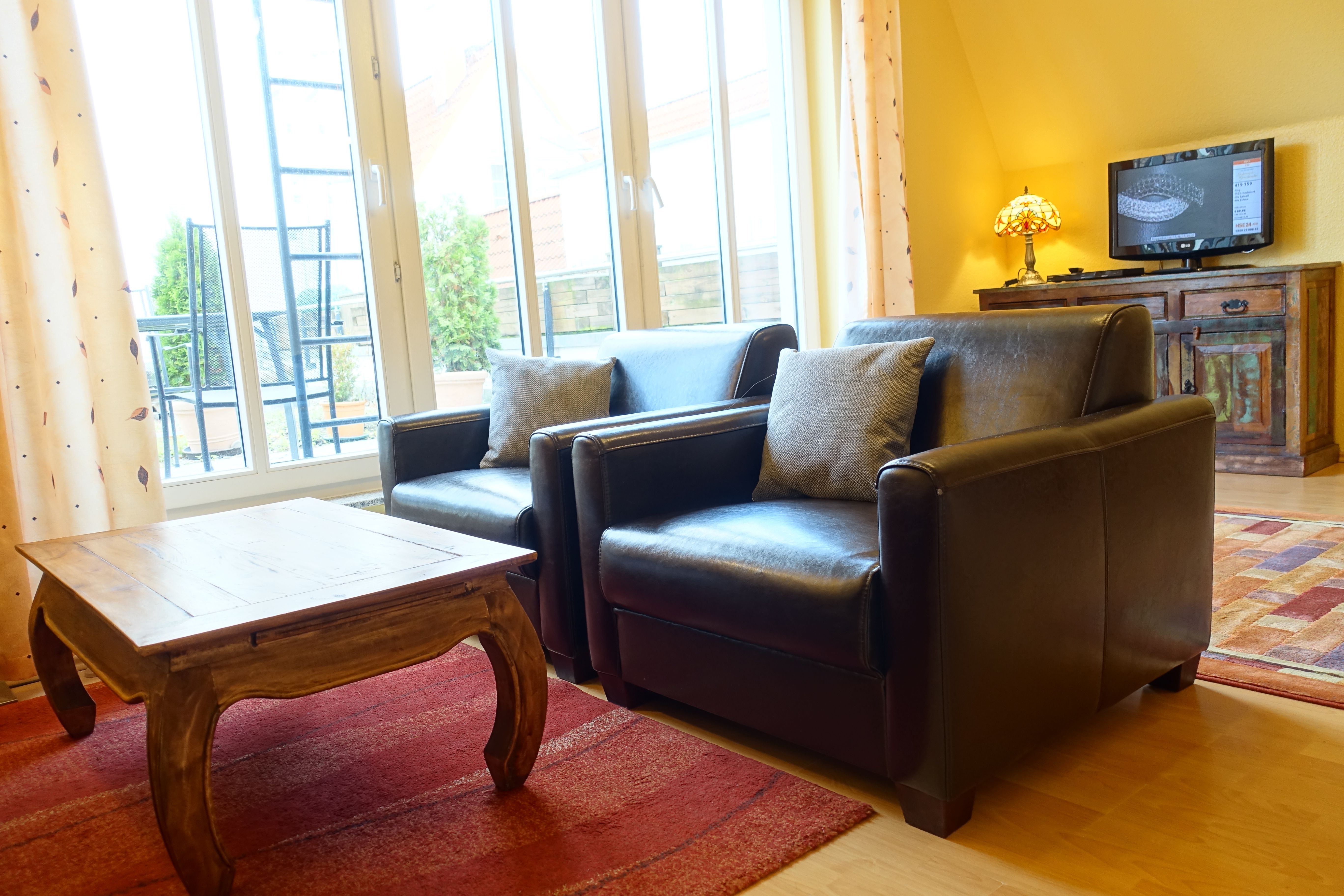 Die Ferienwohnung geht über 2 Ebenen und liegt in der Alexandrinenstraße. Auf der großen und ruhigen Terrasse kann man herrlich entspannen. Zum Leuchtturm und dem schönen Ostseestrand läuft man nur 300 Meter.