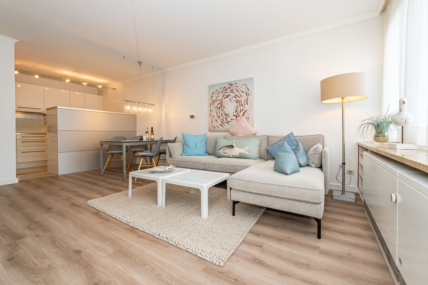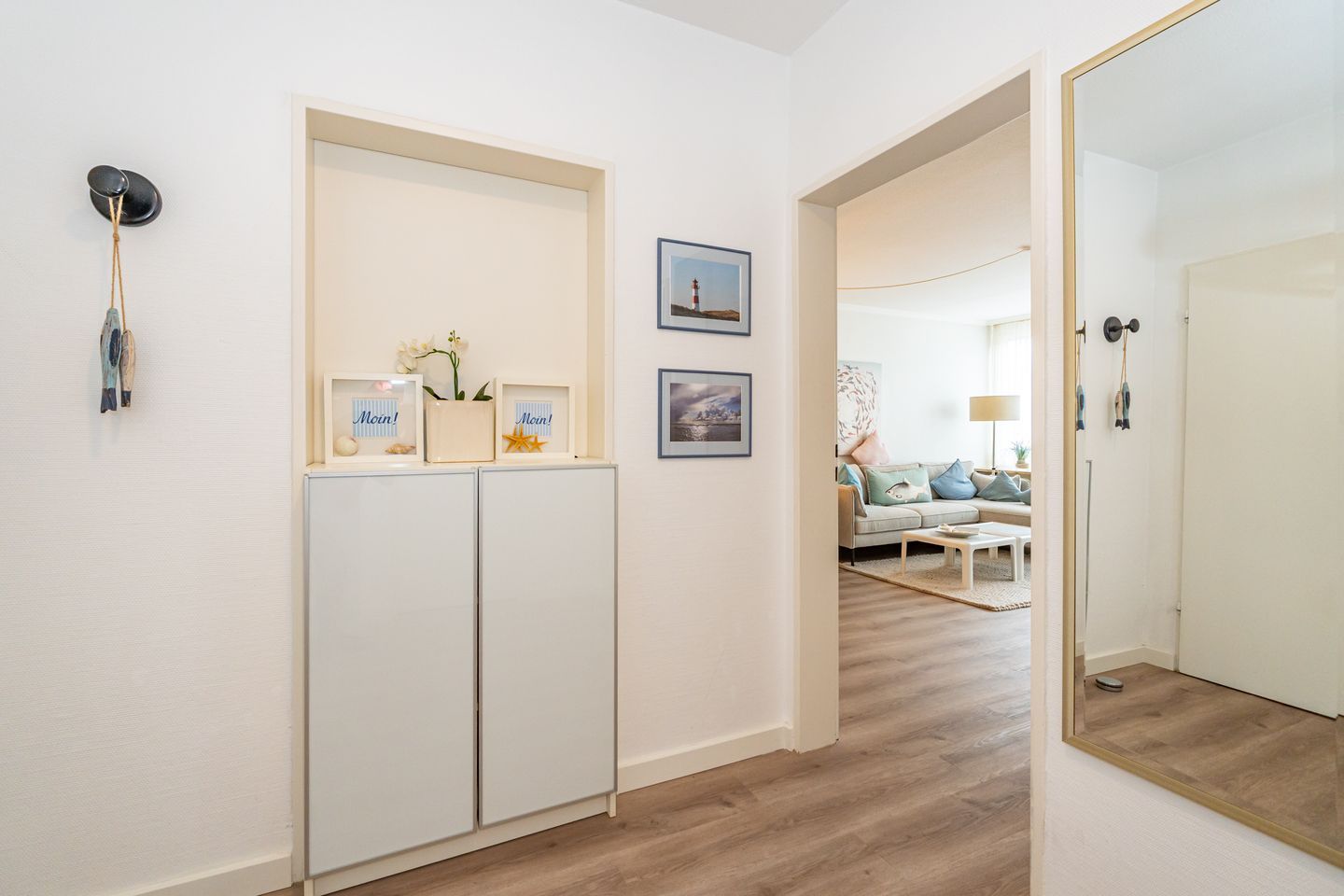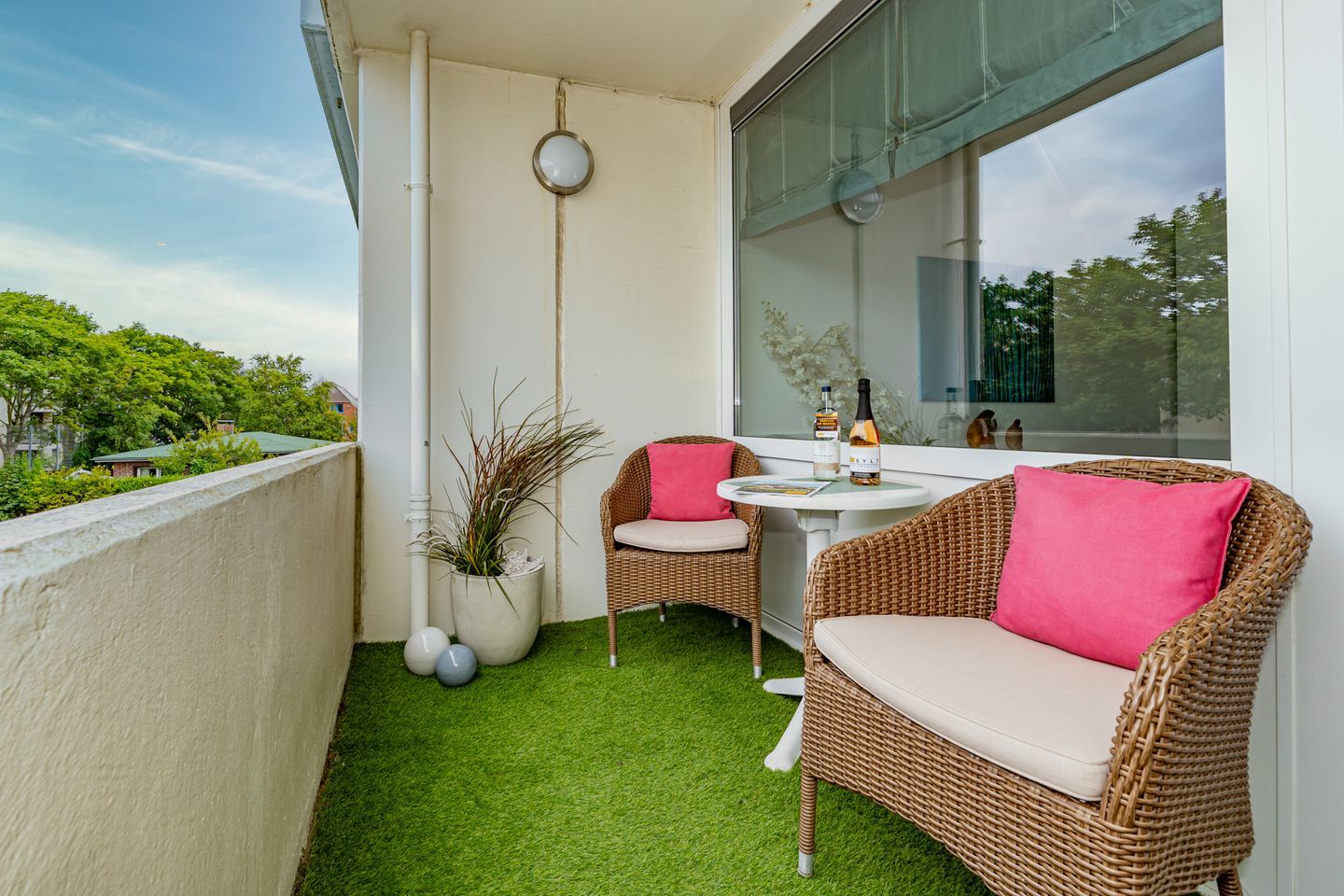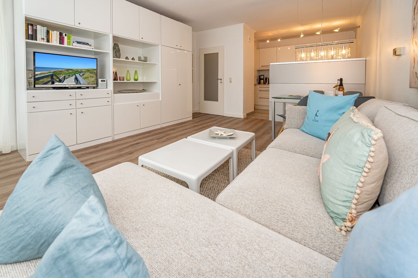 Diese Ferienwohnung bietet Platz für bis zu 2 Personen und befindet sich im ersten Stock eines ruhigen Gebäudes in der Deckerstraße, nur 700 Meter vom lebendigen Stadtzentrum entfernt. Besonders hervorzuheben ist der helle und freundliche Wohnbereich, der mit einem Fernseher und einer HiFi-Anlage ausgestattet ist. Die offene Küche ist ausgestattet mit einem Geschirrspüler, Gefrierfach, Backofen, Kaffeefiltermaschine sowie eine Nespressomaschine. Das Badezimmer ist ausgestattet mit Dusche, WC und Waschtisch. Das Schlafzimmer welches mit Kleiderschrank und komfortablem Boxspring (160 cm x 200 cm) ausgestattet ist verspricht erholsame Nächte auf Sylt. Vom Wohnbereich haben Sie Zutritt zum Balkon der über zwei Stühle und einen Tisch verfügt. Ein PKW Stellplatz gehört zur Ferienwohnung. Haustiere sind nicht gestattet.