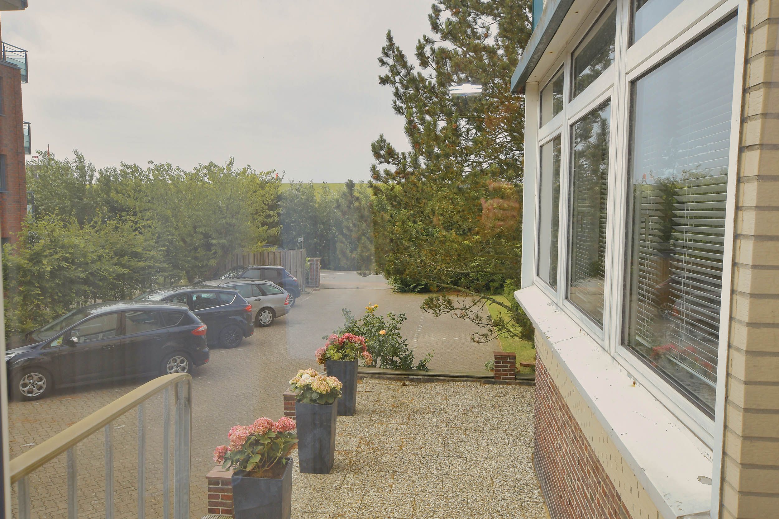 Appartement im Hochparterre mit zwei Schlafzimmern und Terrasse.