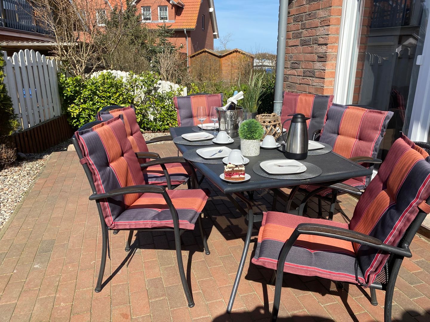 Auf der angrenzenden Terrasse mit Gartenmöbeln und Grill können Sie entspannte Stunden verbringen und die Seele baumeln lassen. Das Grundstück ist eingezäunt und somit können Sie Ihren vierbeinigen Liebling sorgenfrei laufen lassen.