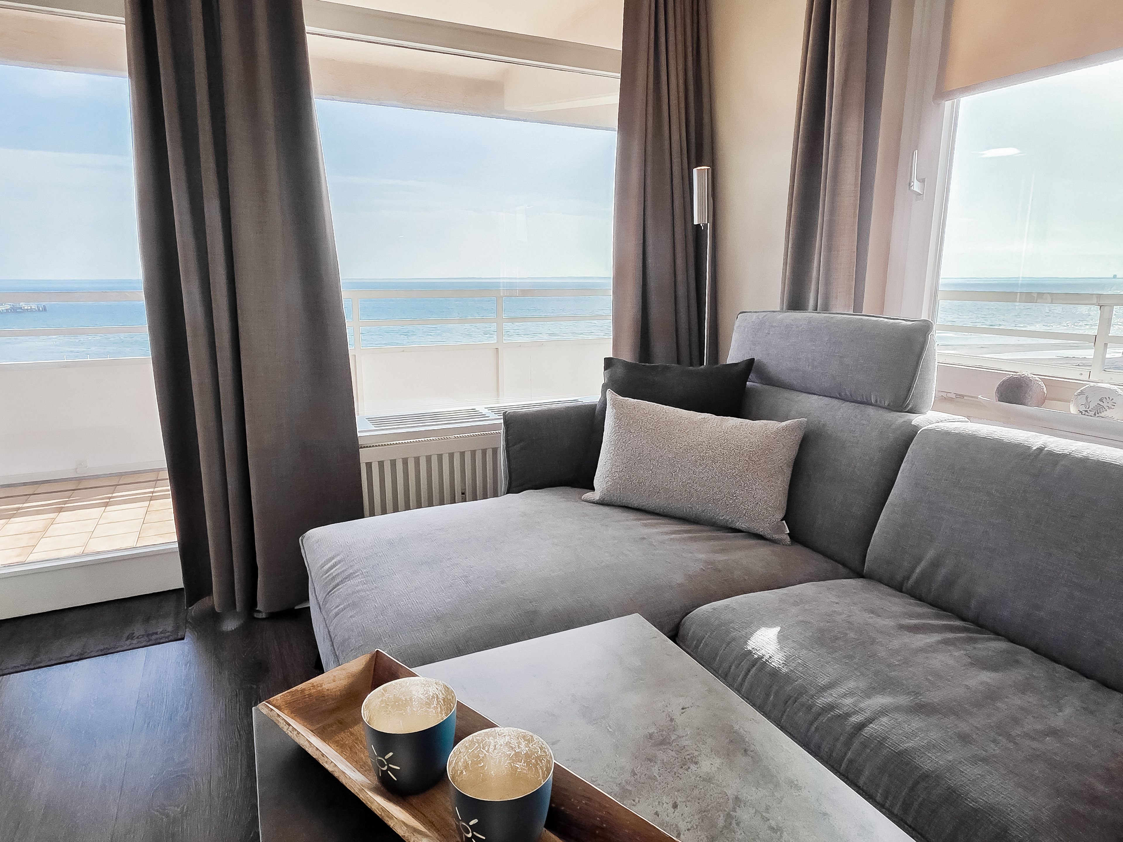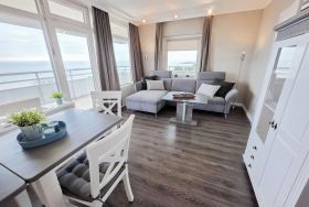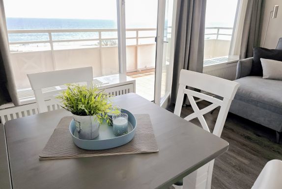 Diese wunderschöne Ferienwohnung in der 7. Etage verfügt über drei Zimmer, Meerblick aus jedem Zimmer und einem rundumlaufenden Eckbalkon (ca. 35 m²).