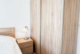 Das Schlafzimmer ist ebenfalls neu möbliert mit bequemen Doppelbett, Nachttischen und Kleiderschrank.