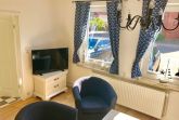 Das gemütliche Wohnzimmer ist mit einer Couch-Ecke, Flachbild-TV, Radio ausgestattet sowie direkten Zugang zur sonnigen Terrasse.
