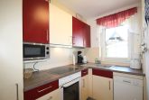 Die angrenzende Küche mit Spülmaschine, Herd mit Backofen und Cerankochfeld, Kühlschrank mit Gefrierfach und allen üblichen Geräten.
