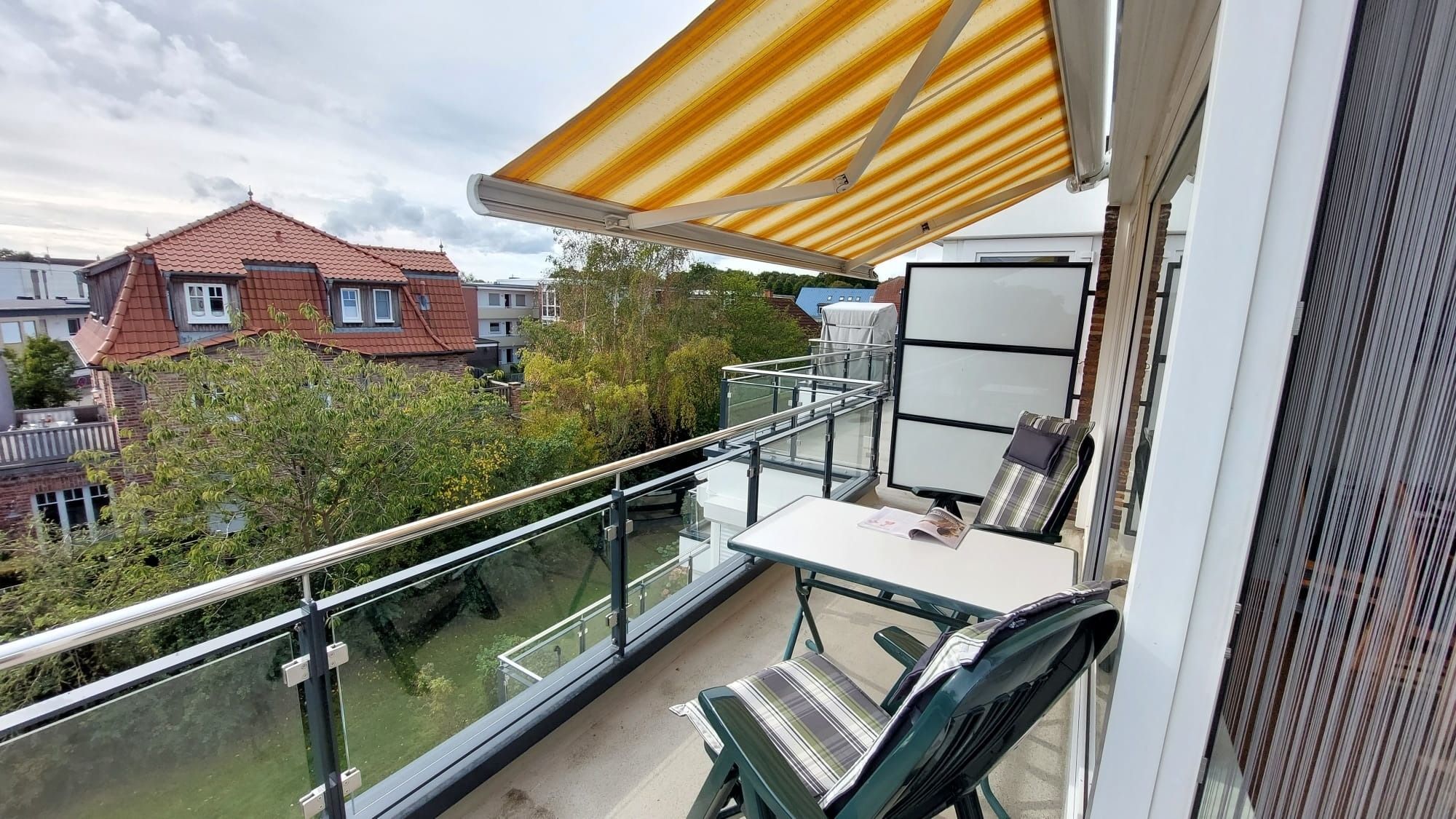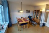 Der geräumige Wohnbereich hat eine Sitzecke, Sideboard mit TV + Musikanlage sowie Essplatz & Zugang zum sonnigen, möblierten 10 m² großen Süd-West-Balkon mit Markise. Zur Entspannung steht Ihnen im Wohnzimmer eine Tassimo-Kaffeemaschine zur Zubereitung von Cappuccino, Latte Macchiato & Espresso zur Verfügung.