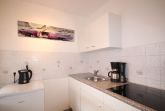 Die moderne Küche ist mit Ceran-Kochfeld, Kühlschrank und allen üblichen elektrischen Geräten gut ausgestattet.