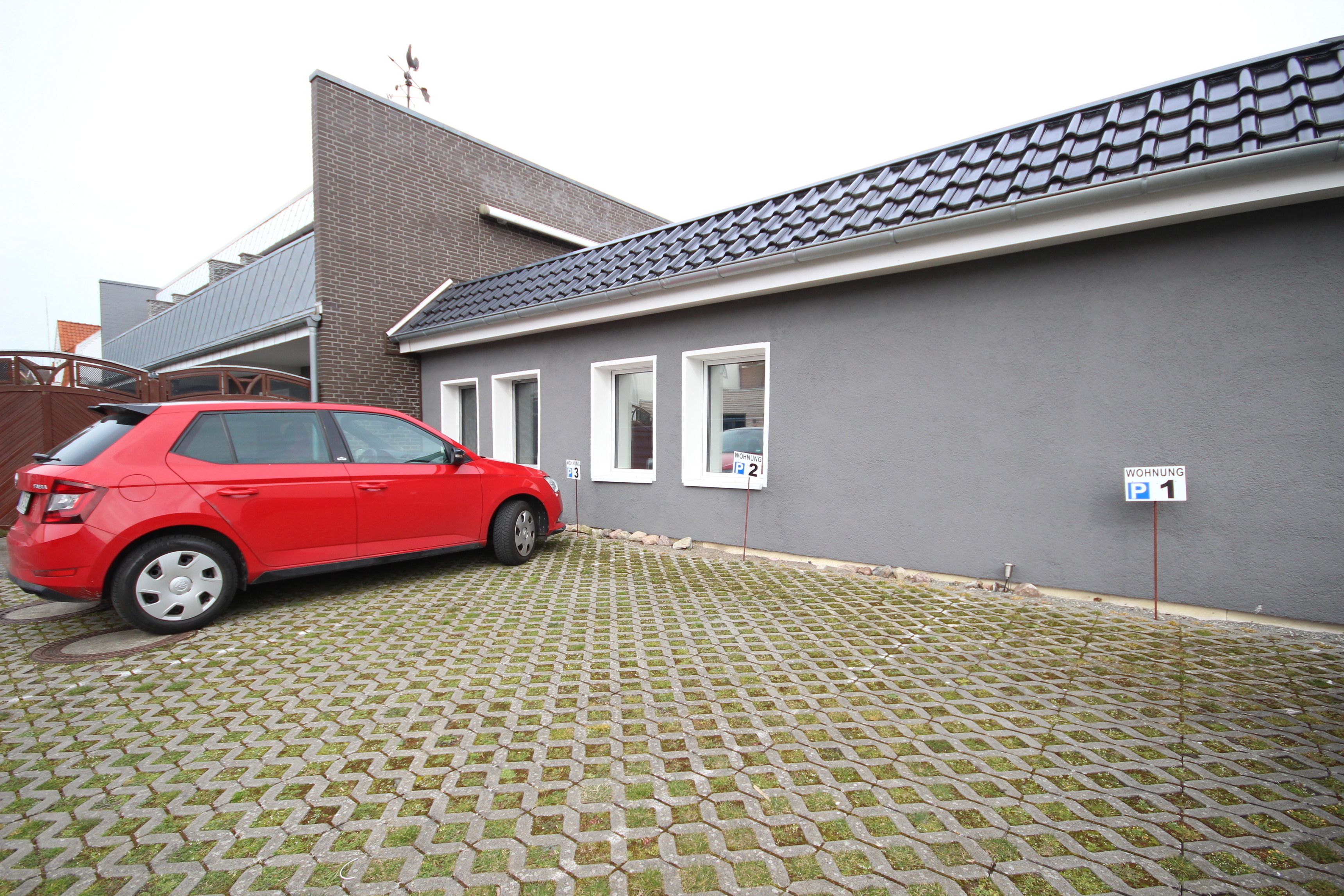 Ein KFZ-Parkplatz ist auf dem Grundstück.