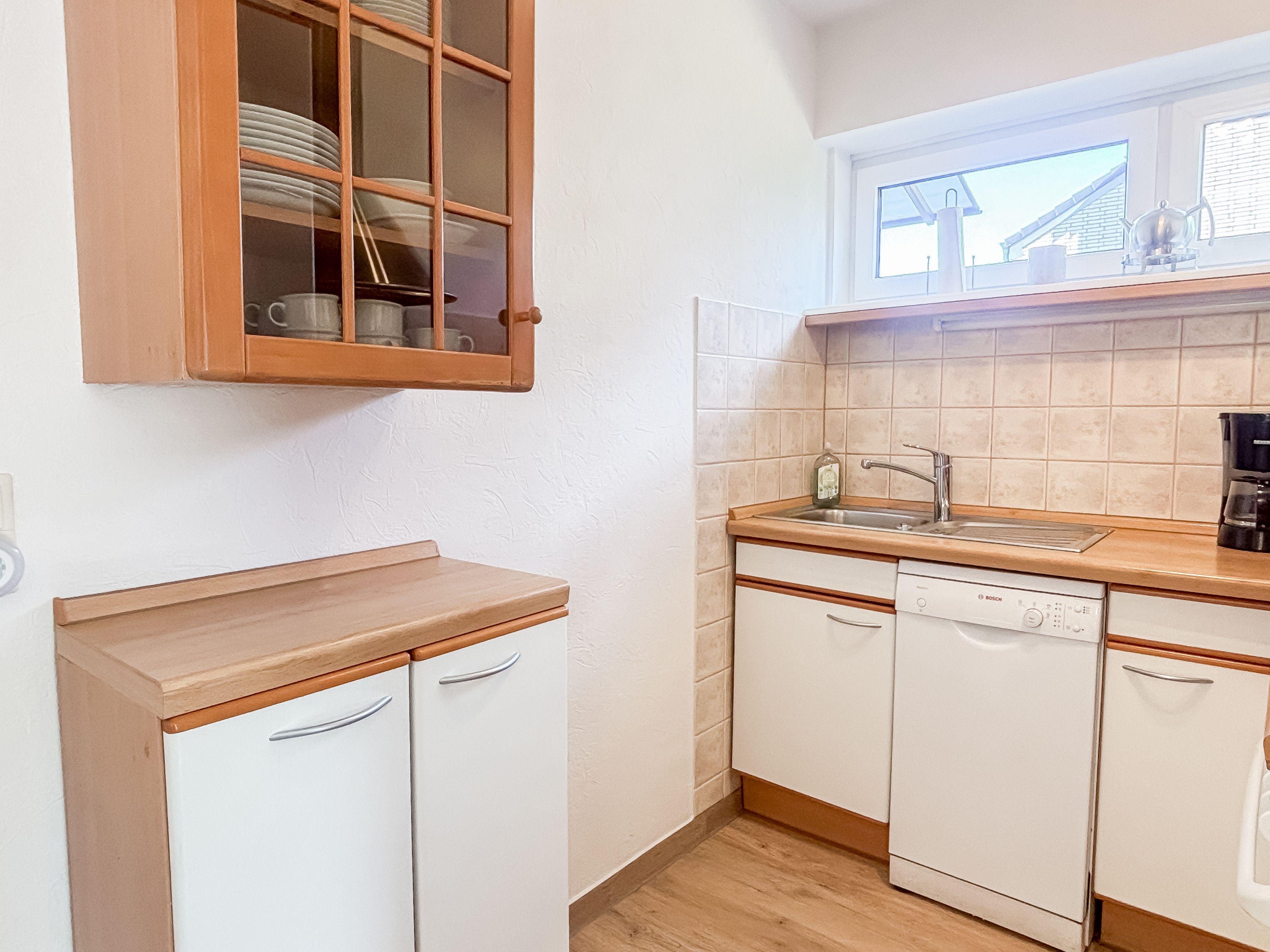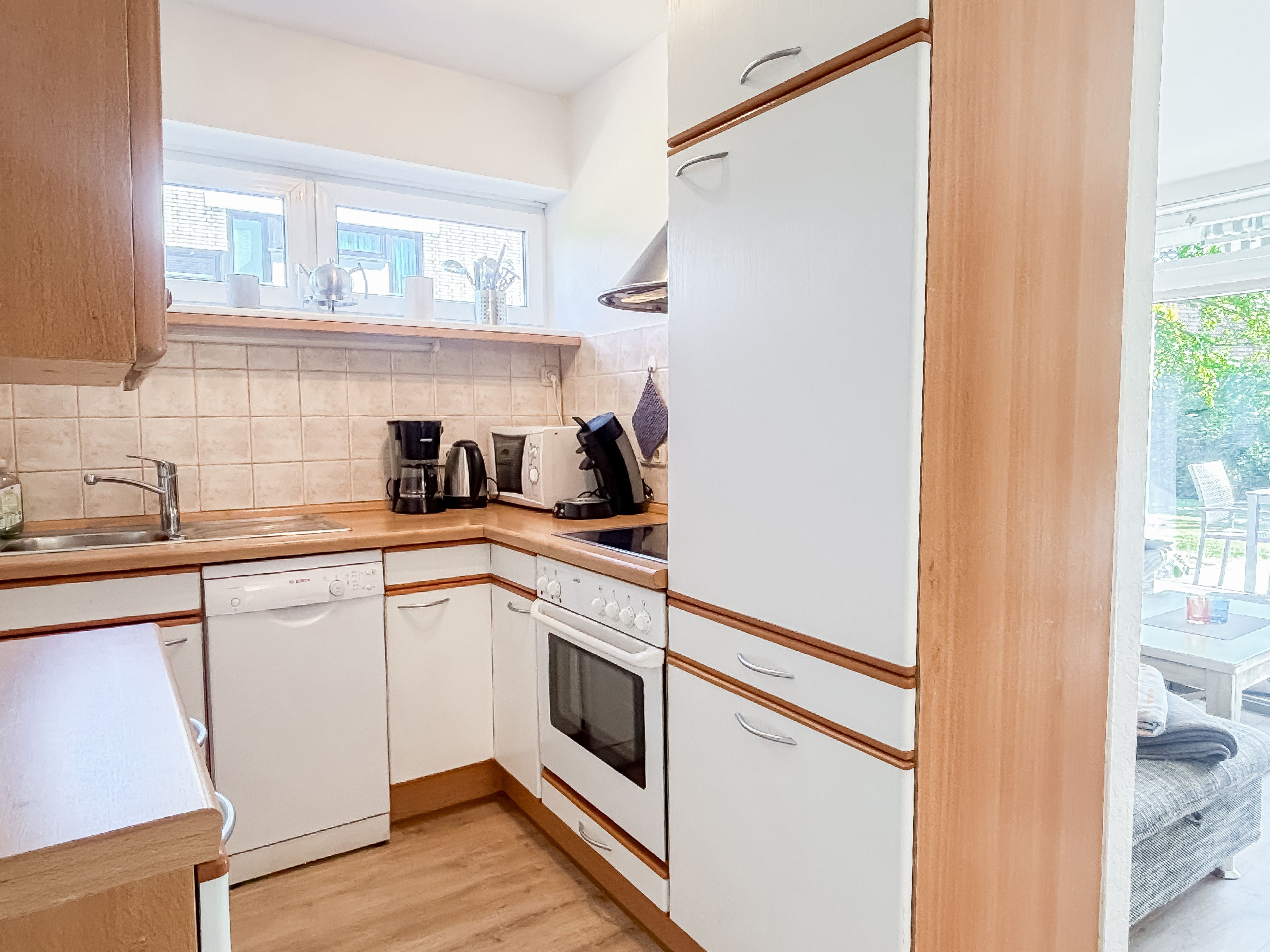 Die Küche ist mit Herd, Backofen, Mikrowelle, Geschirrspüler, Kühlschrank mit Gefrierfach sowie allen üblichen Küchengeräten sehr gut eingerichtet.
