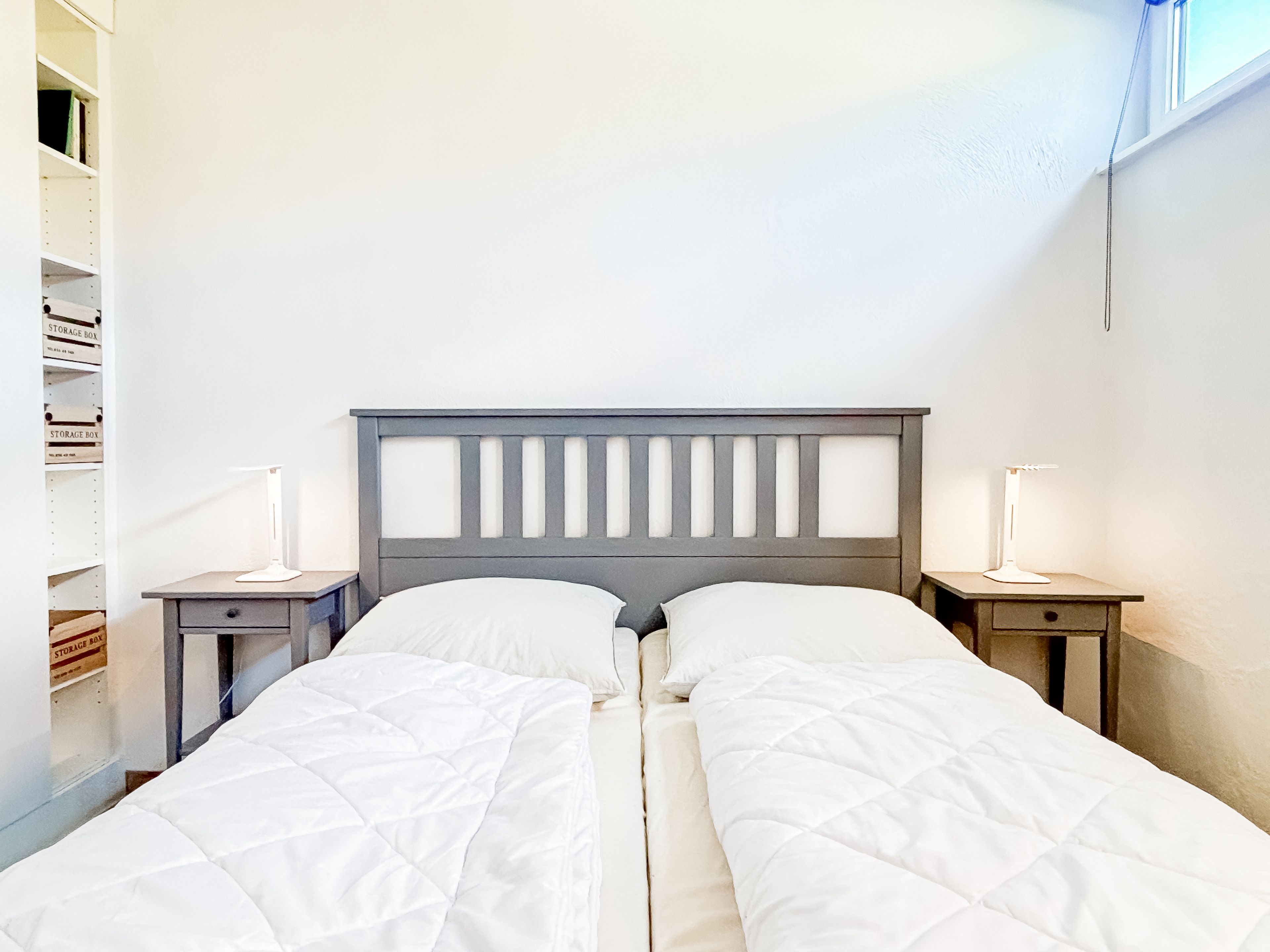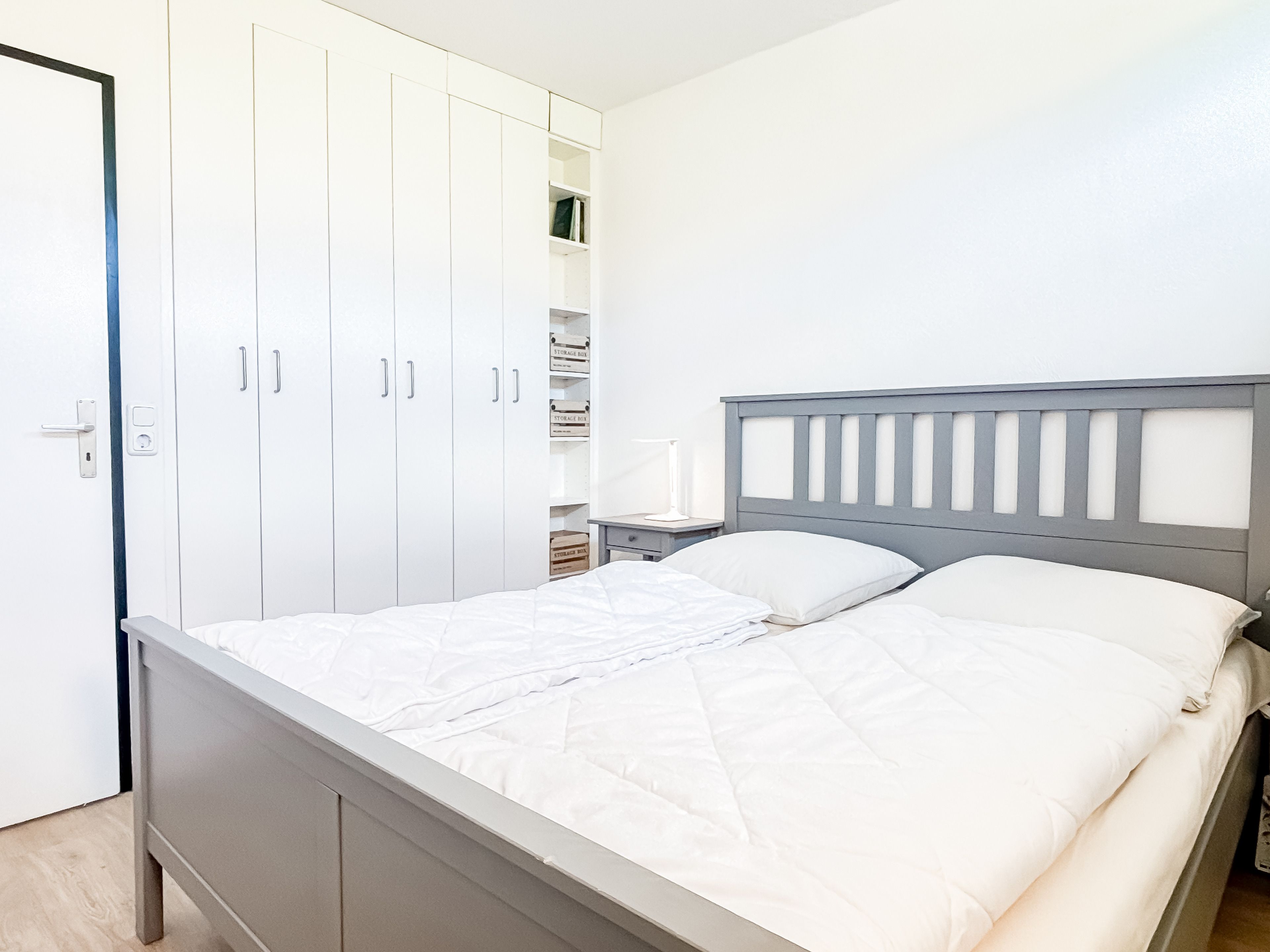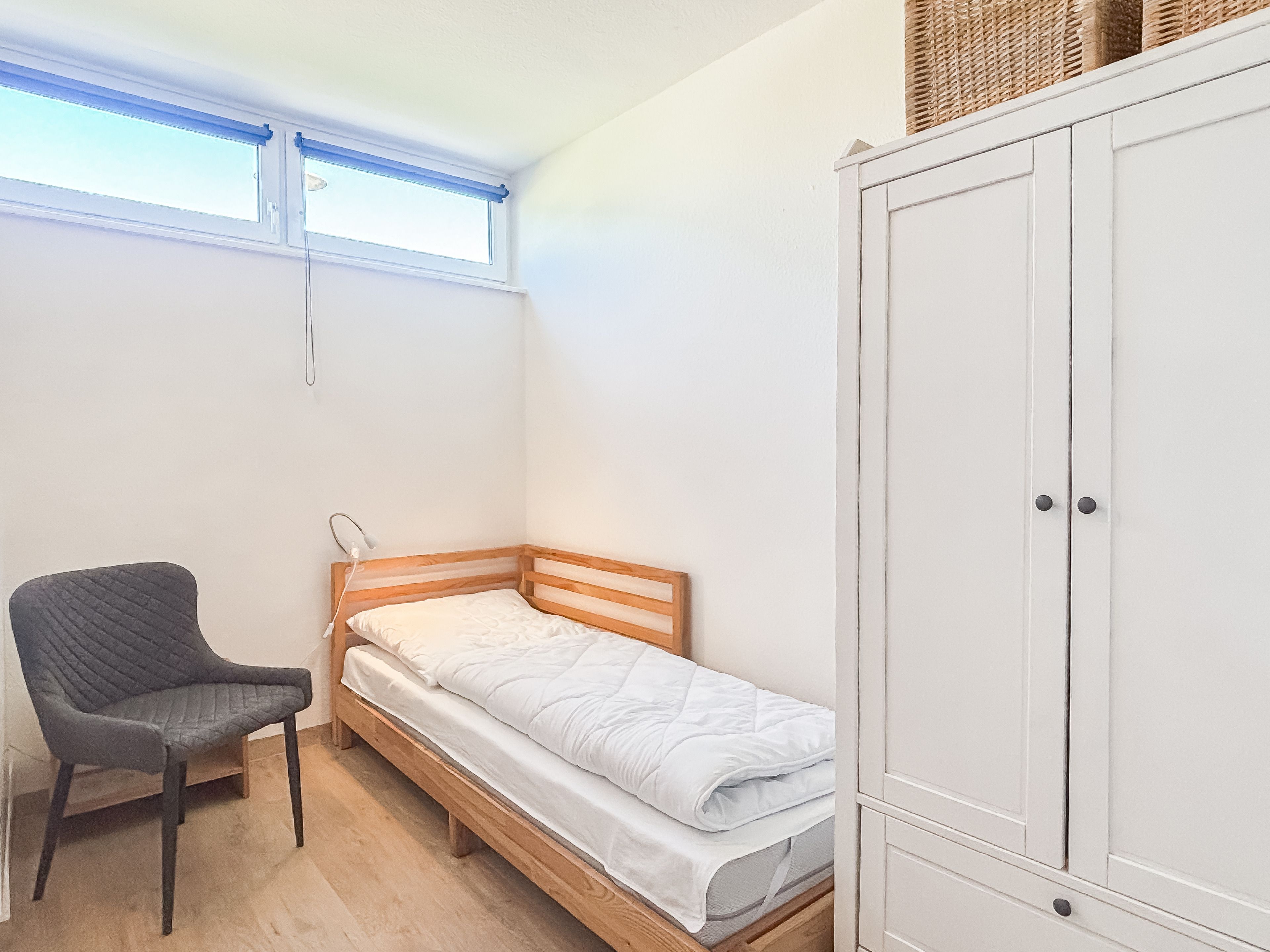 Das 2. Schlafzimmer verfügt über ein Bett, das sich bei Bedarf auf 1,60 m ausziehen lässt & einen kleinen Kleiderschrank.