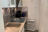 Die Einbauküche ist mit 4-Platten-Induktionsherd, Mikrowelle, Kühlschrank mit Gefrierfach und den üblichen Küchengeräten gut ausgestattet.