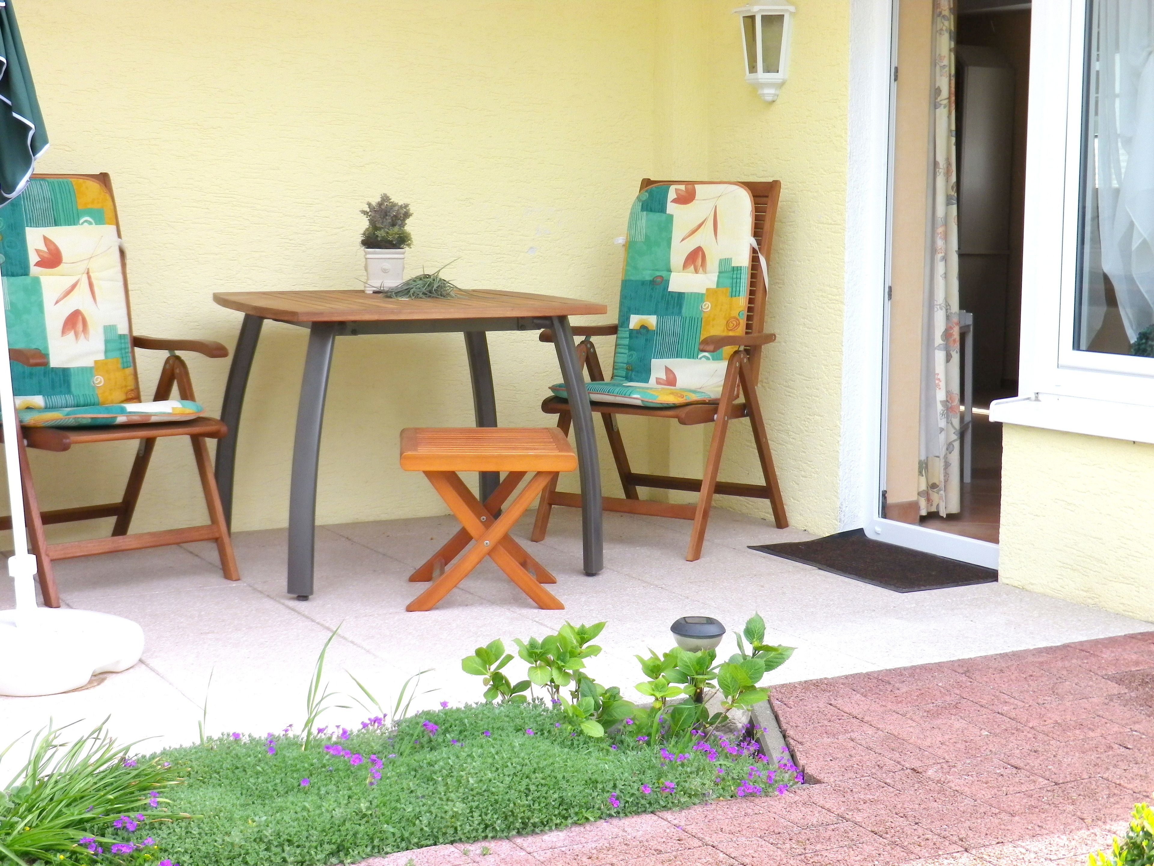 Das gemütlich eingerichtete Wohnzimmer verfügt über ein Ecksofa, einen Essplatz für 2 Personen, CD-Radio sowie einen SAT-TV. Hier haben Sie Zugang zur sonnigen und möblierten Terrasse, auf der Sie Ihre Urlaubstage genießen können.