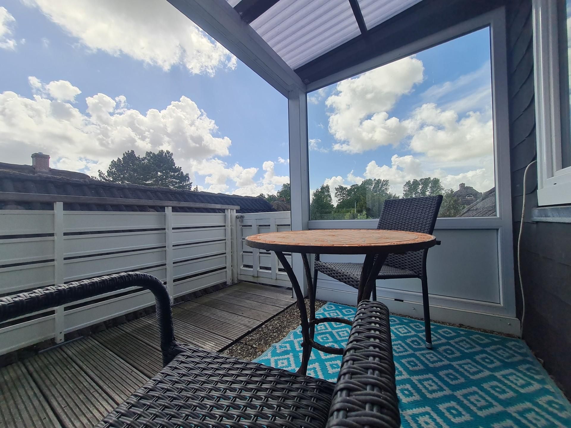 sowie der überdachte, teilverglaste, möblierte Süd-Westbalkon