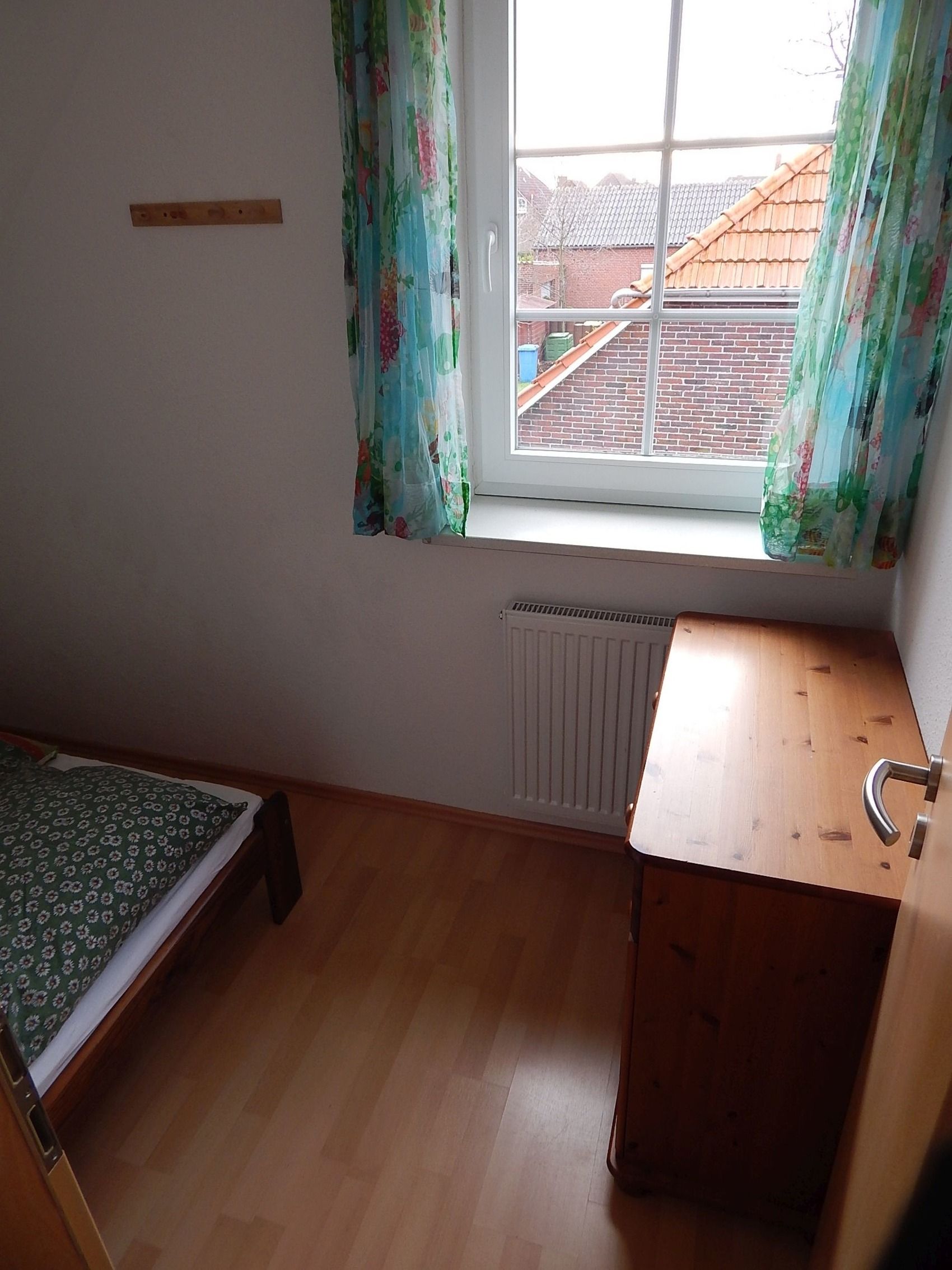 Insgesamt verfügt die Ferienwohnung auf ca. 70m2 über 1 Schlafzimmer mit Doppelbett (180cm x 200cm) und 2 kleine Schlafzimmer mit je einem Bett (90cm x 200cm), eine separate Küche und zwei Bäder. Im Garten gibt es einen Holzschuppen, in dem Sie Ihre Fahrräder abstellen können, und eine Schaukel mit Rutsche.