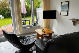 Das Nichtraucherappartement ist ruhig gelegen und ebenerdig, verfügt über eine eigene Terrasse und einen Gemeinschaftsgarten, das Doppelbett hat die Maße 180x200 cm, es besteht eine Grillmöglichkeit. Die Diekseepromenade ist in unmittelbarer Nähe.