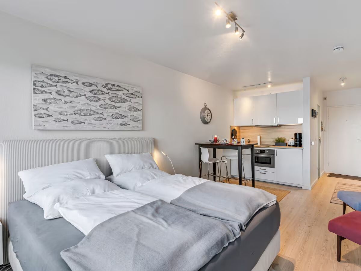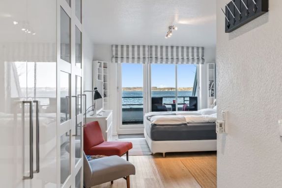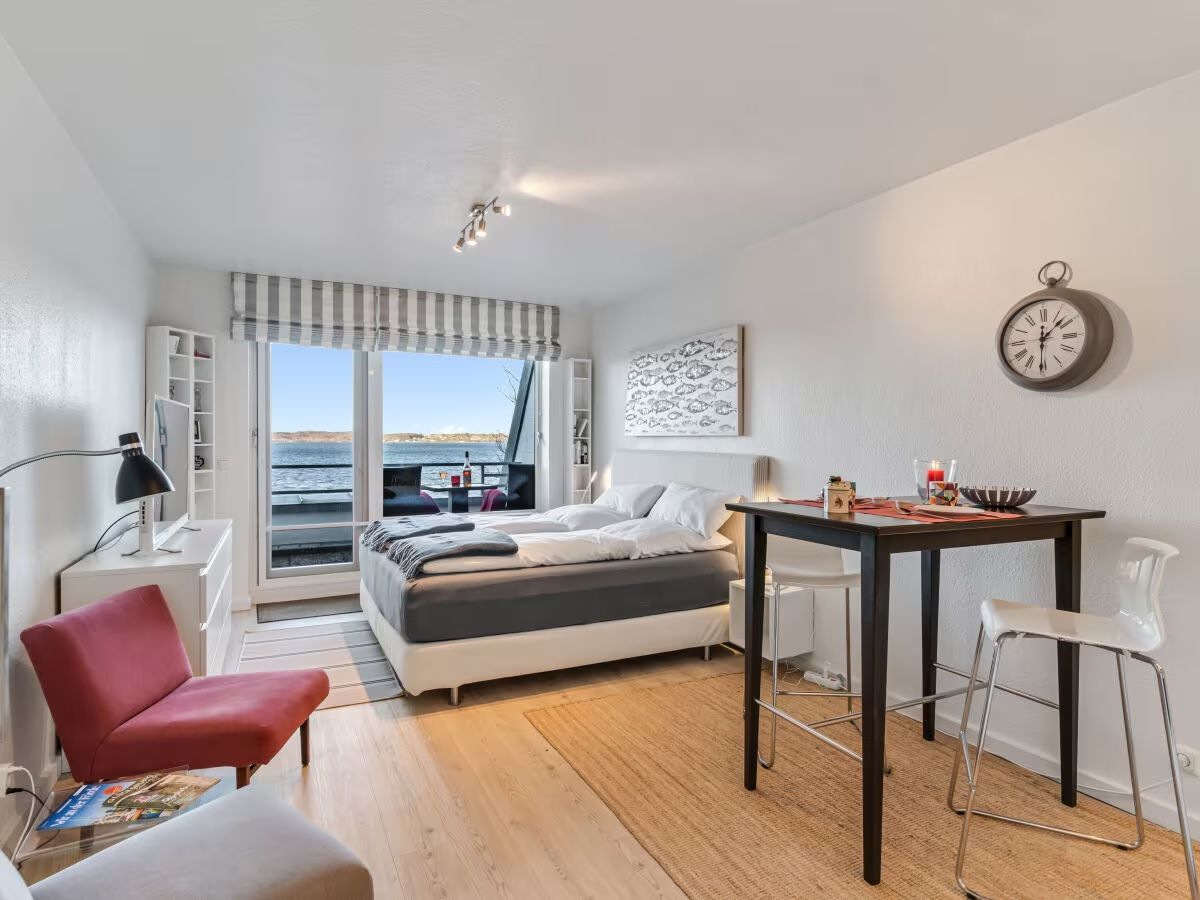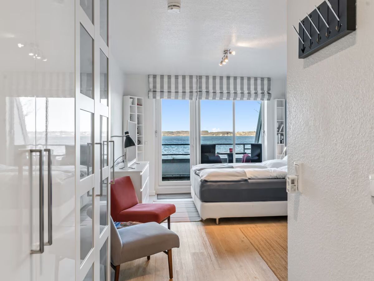 Ferienwohnung für 2 Personen, direkt am Strand Sandwig in Glücksburg, mit Blick auf die Ostsee, nicht einsehbarerBalkon zum Wasser, in der 3. Etage einer ruhigen Wohnanlage gelegen. Eigener Parkplatz, WLAN vorhanden. Gemütliches Frühstücken im Wohnzimmer, auf dem Balkon oder im großen Boxspringbett (180x200), mit Panoramablick auf die Ostsee bis hin nach Dänemark? 2 Frühstücktabletts ermöglichen auch dies und durch die, auch zum Kochen, gut ausgestattete Küchenzeile ist Selbstversorgung nicht nur zum Frühstück möglich. Direkter Zugang zur Strandpromenade mit abschließbarer Pforte. Fußläufig erreichbar ist in wenigen Minuten die Hanseatische Yachtschule-DHH und auch die Fördeland-Therme mit Schwimmbad und Sauna.