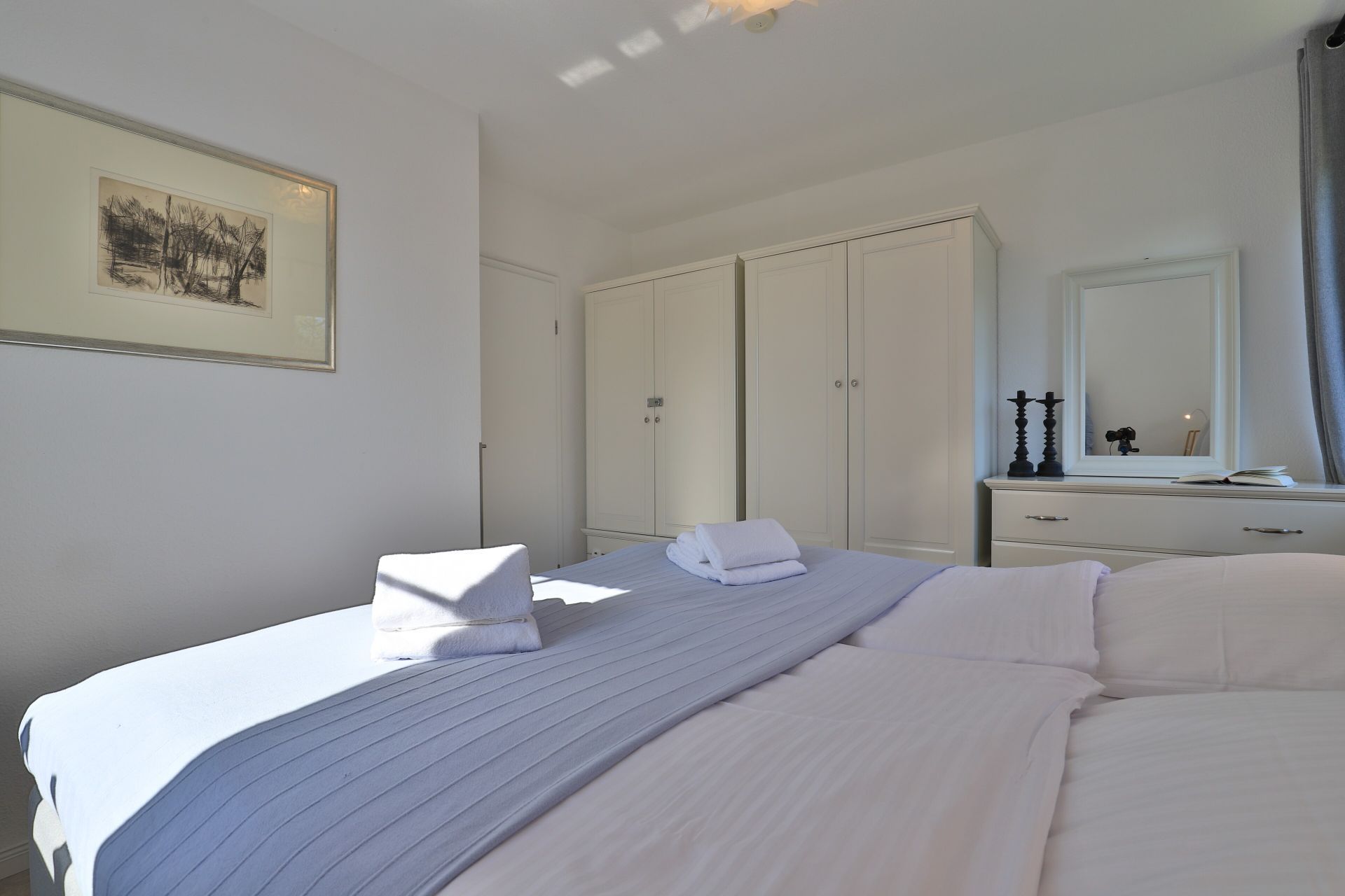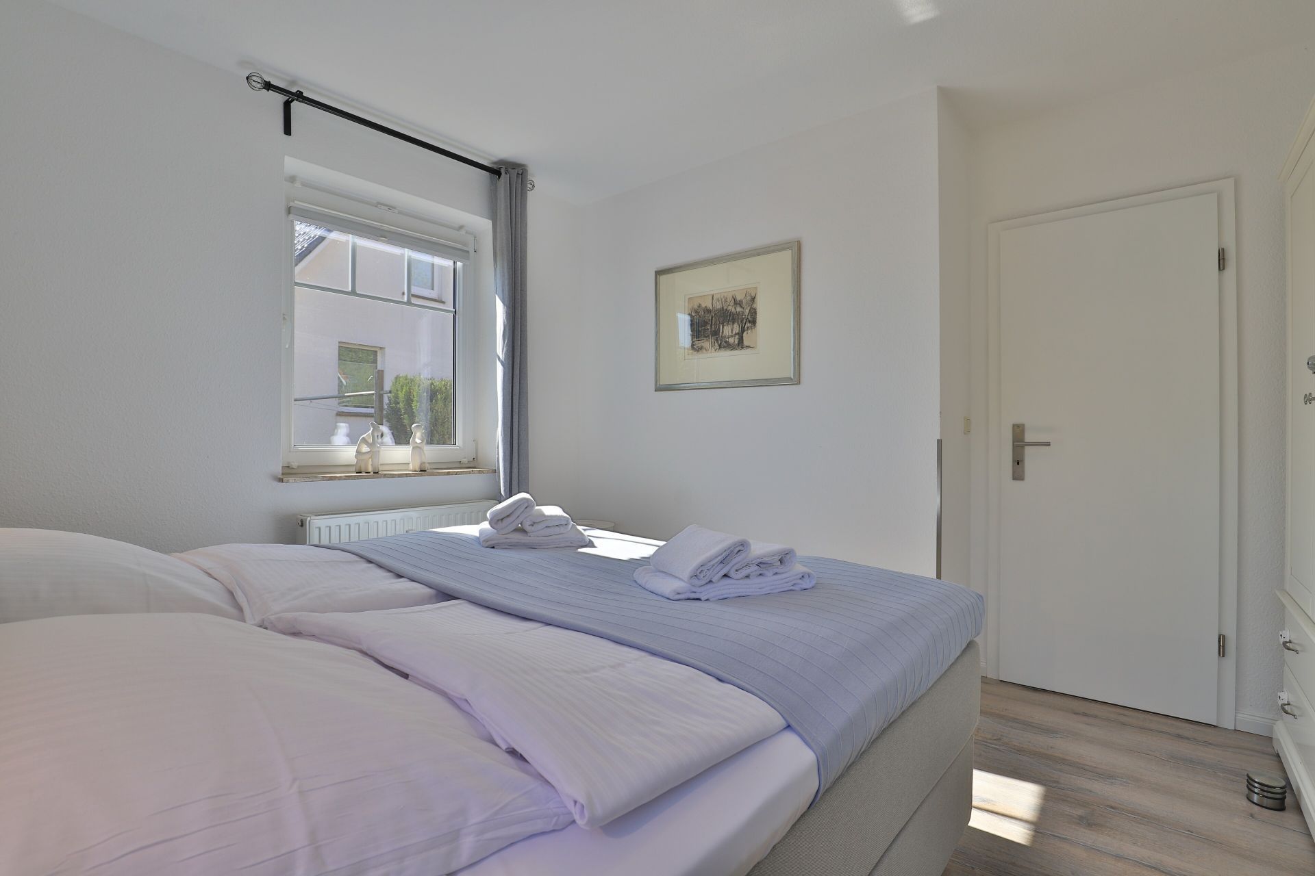 Die 2-Zimmer-Ferienwohnung befindet sich in einer ruhig gelegenen Appartementanlage mit insgesamt 8 Wohneinheiten. Sie bewohnen eine 60qm große Wohnung im Erdgeschoss des Hauses mit wohnungseigener Terrasse und Gartennutzung. Separate Küche und separates Schlafzimmer. Modernes Tageslicht Duschbad. WLAN, Nutzung einer Waschmaschine, PKW-Außenstellplatz ohne Gebühr. Den Strand erreichen Sie in 650 Meter. Nichtraucher. Keine Haustiere.