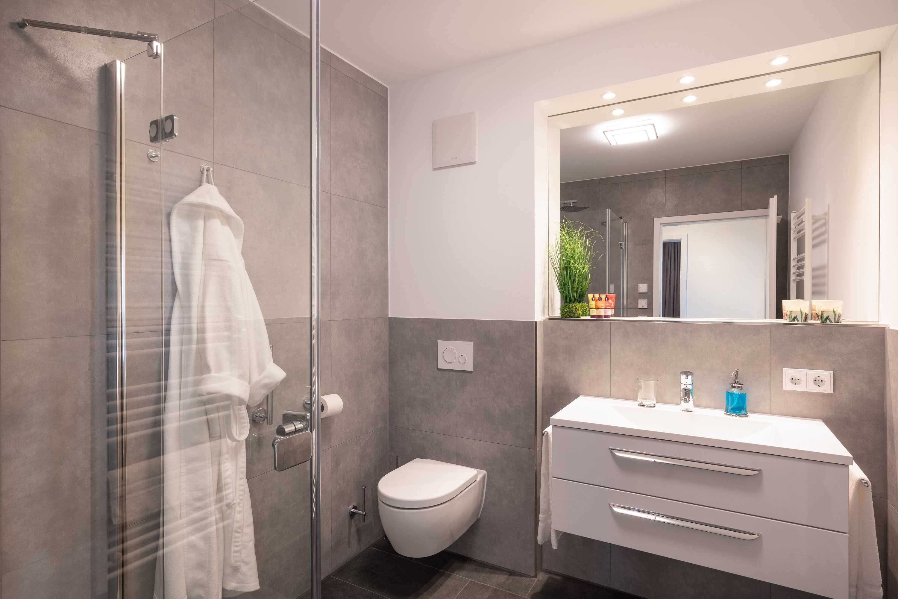 Im Basement der Häuser 1 und 2 befindet sich auf 365 m² ein weiterer Freizeit-, Fitness- und Wellnessbereich mit mehreren Saunen, Fitness-, Massage- und Aufenthaltsraum, Spielzimmer für Kleinkinder, Billard und Kicker, der Ihnen kostenlos zur Verfügung steht und die Interessen jeden Alters berücksichtigt.
