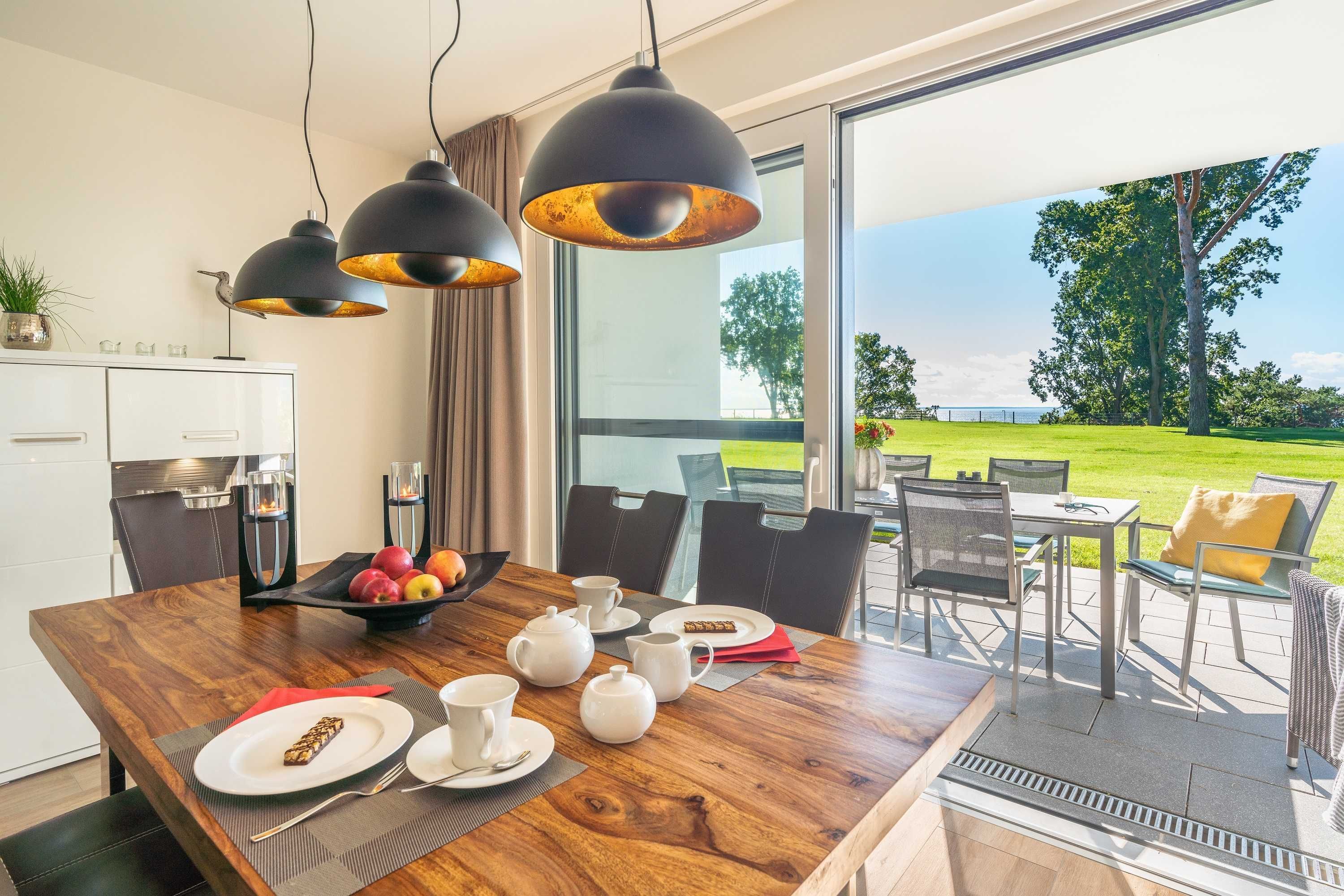 Alle Terrassenwohnungen und Appartements sind hochwertig und modern ausgestattet. Breite Rasenflächen mit angelegten Gehwegen umgeben unsere Ferienhäuser auf einer weitflächigen Außenanlage. Separierte Terrassen laden mit Sitzgelegenheiten an der Steilküste zum Verweilen ein.
