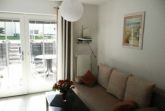 Das Wohnzimmer verfügt über einen Full-HD-TV, eine Hifi-Anlage, eine Schlafcouch und eine Einbauküche.