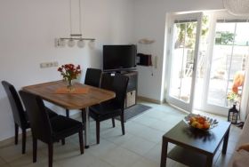 Das Ehebett im separaten Schlafzimmer ist seniorengerecht und kann bei Bedarf auseinander gestellt werden. Über einen zweiten, stufenfreien Zugang kann die FeWo bequem erreicht werden. In der hauseigenen Garage können eigene Fahrräder abgestellt werden.