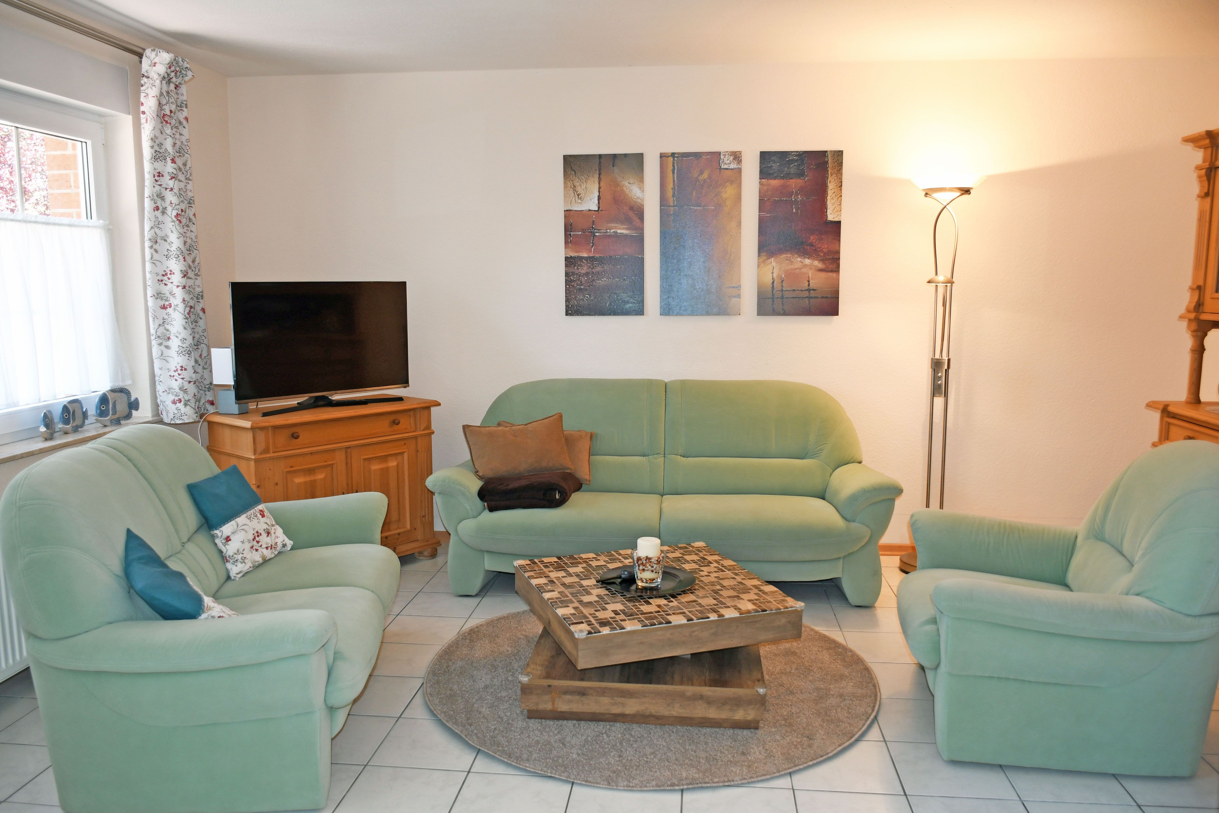 Die Ferienwohnung verfügt über ein großes Wohnzimmer mit Küchenzeile, zwei Schlafzimmer mit Insektenschutz sowie ein Badezimmer mit Dusche/WC und eine schöne Sonnenterrasse mit Strandkorb, die zum Frühstück im Sonnenschein oder zum Grillen oder einfach zum Entspannen einlädt. Ein kostenfreier WLAN-Anschluss steht Ihnen zur Verfügung! Weitere Angaben finden Sie bei der Detailbeschreibung der Wohnung. Gegen Aufpreis sind bei Ihrer Anreise die Betten bereits mit Bettwäsche bezogen und frische Handtücher liegen bereit. Bitte dann ggf. mitbuchen.